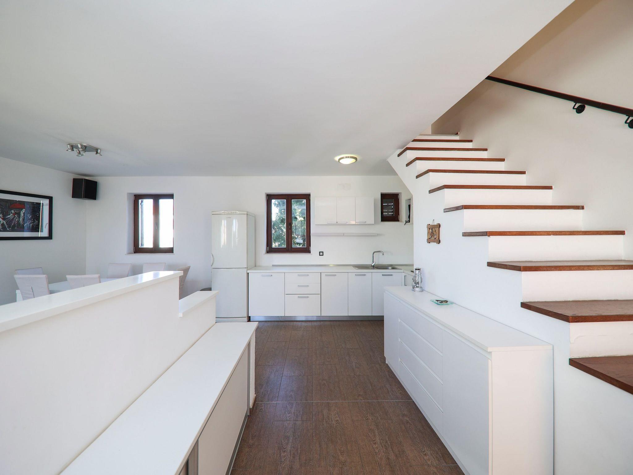 The living room opens onto the private sunny terrace, where you can make yourselves comfortable around the traditional stone grill and enjoy leisurely meals under a blue sky, or simply sunbathe in absolute privacy.