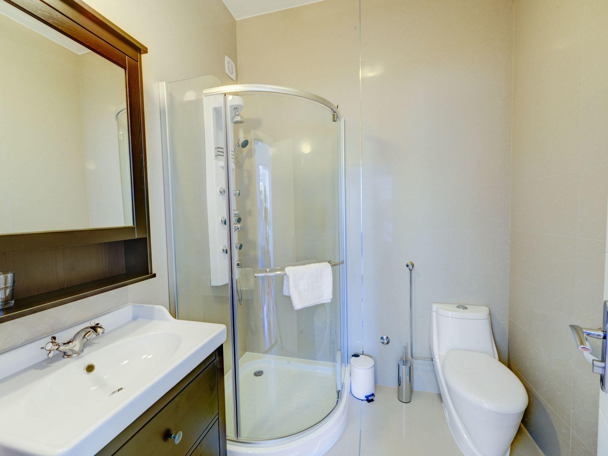 The exterior of this apartment is just as inviting, featuring a roofed balcony that's perfect for enjoying the scenic views with a table and chairs ready for your morning coffee or evening unwind. Additionally, a terrace and a shared garden offer more spaces to relax or socialize. The outdoor pool, and jacuzzi is a highlight, promising relaxation and rejuvenation during your stay.