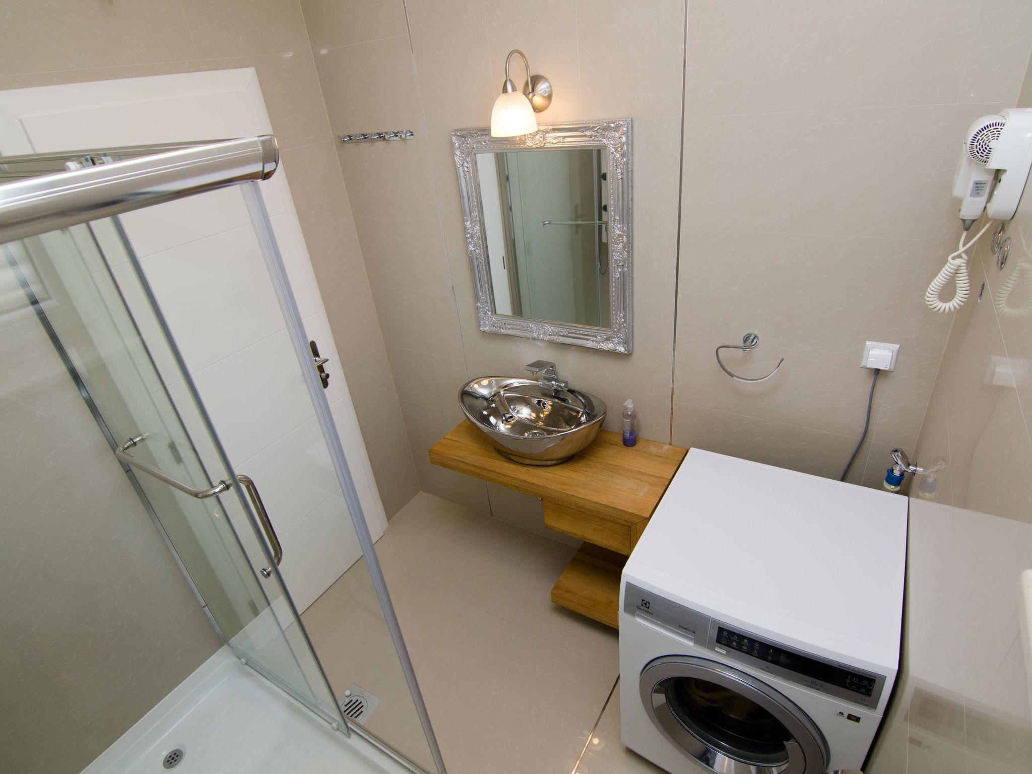 Step inside to a space where every detail caters to your comfort. The living room, bathed in natural light, features a comfortable sofa bed. The dining area provides a congenial space for meals, while the fully-equipped kitchen, inclusive of a dishwasher, invites culinary explorations. The private quarters comprise a cozy bedroom adorned with a queen-size double bed, alongside a modern bathroom equipped with a shower and toilet.