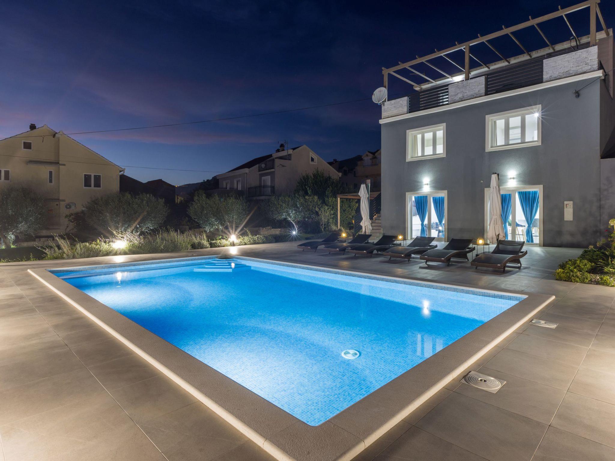 The allure of Villa Perkov extends to its expansive outdoor area, where the refreshing embrace of a large swimming pool awaits. Imagine unwinding in the shimmering waters or lounging under the warm Croatian sun on the poolside with a refreshing drink in hand. As the day gives way to the cooler evening, the outdoor barbecue area becomes the heart of Villa Perkov, inviting you to enjoy grilled delicacies and share laughter under a starlit sky, creating memories that will last a lifetime.
