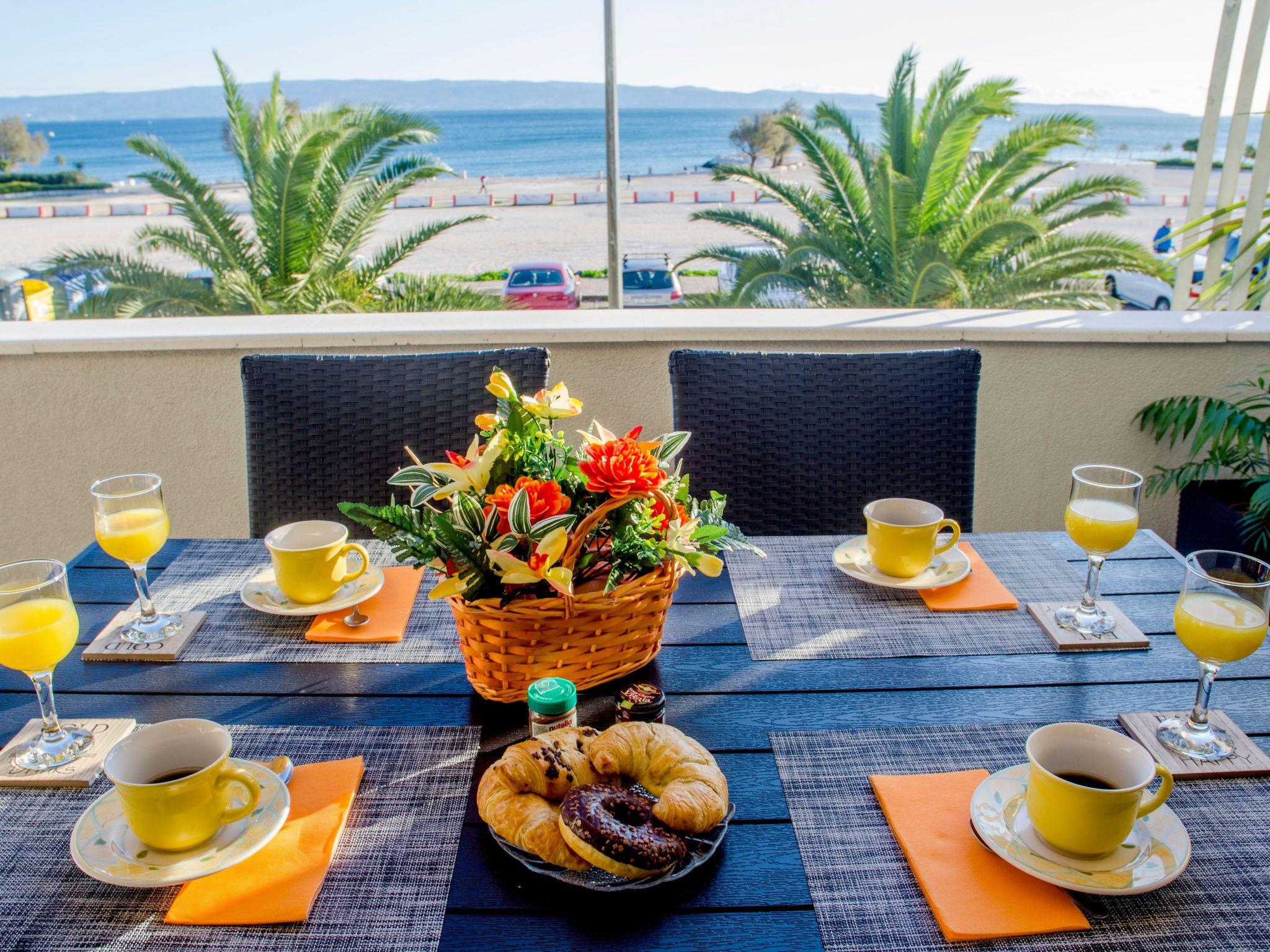 The apartment is for four persons max. It is on the first floor in a building with an elevator. It offers a kitchen and a living room from which you can go out on a big balcony (with abeautiful view of the sea and the islands of Brac and Šolta), one bedroom and a bathroom with a rainshower for complete relaxation at the end of the day, and with small toilet.