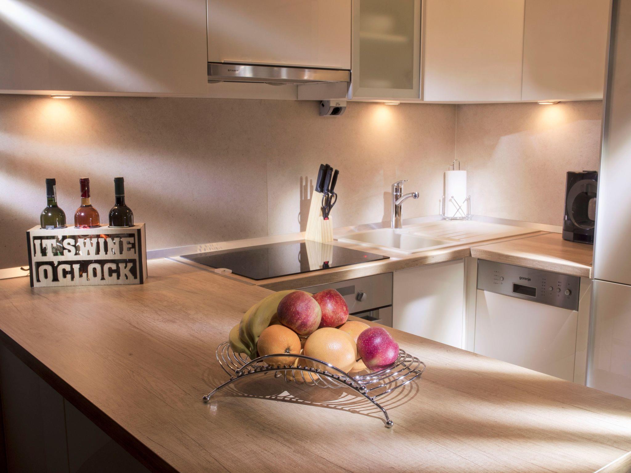 It is fully equipped so that it feels like home. Everything you need is there: a dishwasher, a ceramic electric hob, an oven, a microwave, a fridge, an iron, a hair-dryer, all the household articles, a safe, a smart LCD TV, and, of course, free WI-FI Internet.