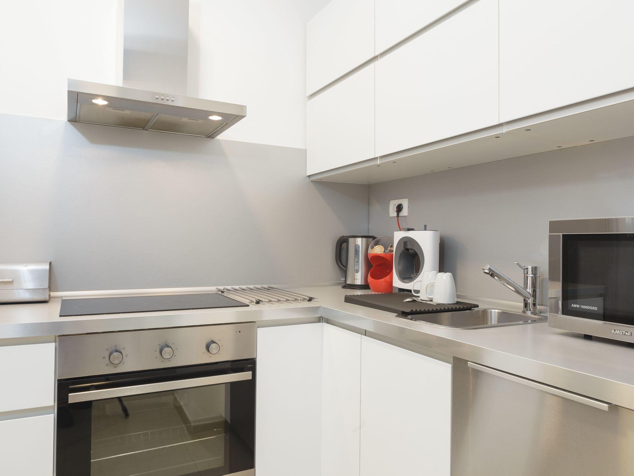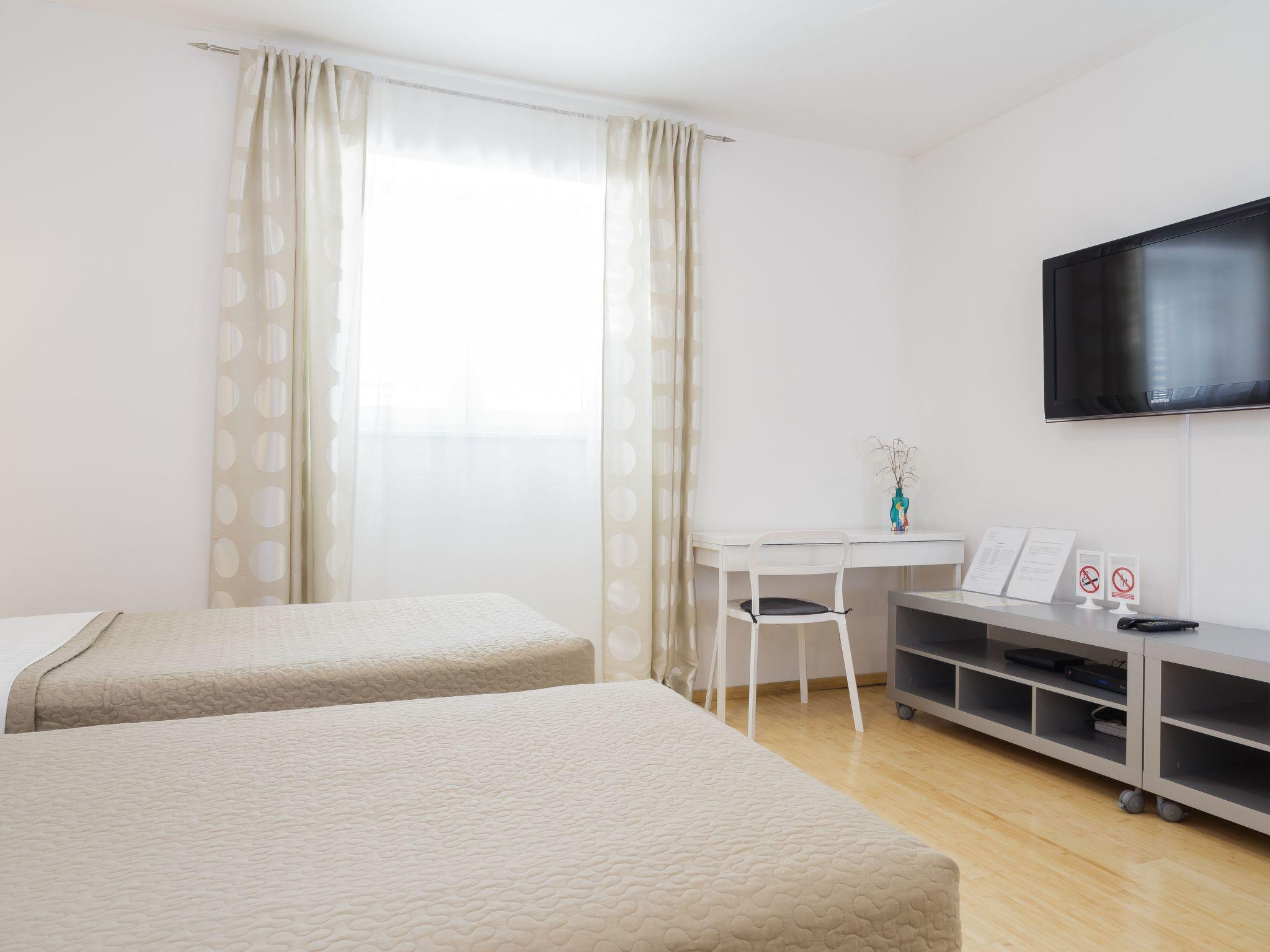 The fully air-conditioned holiday apartment with a separate entrance is on the ground floor and can accommodate four people. It has two bedrooms each with two single beds measuring 90 x 200cm, a flatscreen TV with cable channels, bedside tables and wardrobes. The living and dining room with an open kitchen provides a relaxing sofa, a big flatscreen TV with Smart TV and cable TV, and a dining table with four chairs. The modern kitchen unit is fully-equipped with a stove, oven, fridge-freezer, extractor fan, microwave, toaster, mixer, kettle, coffee machine and dishwasher. The bathroom consists of a spacious shower, a washbasin and toilet. There is a safe for your valuables and free wireless Internet access is available.
