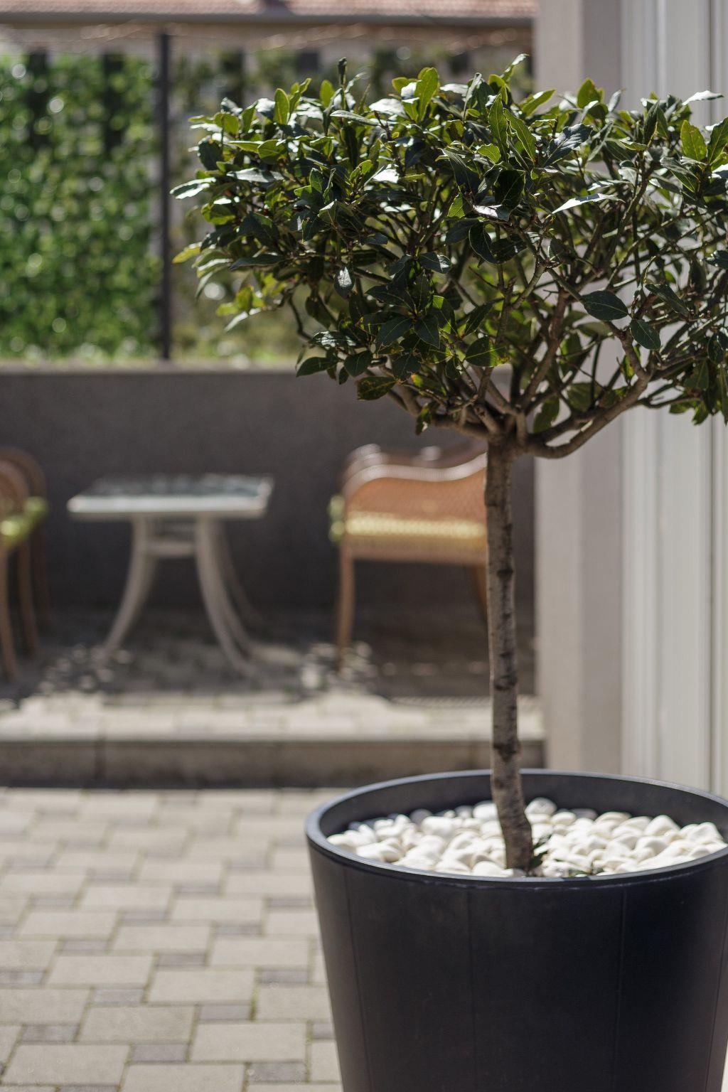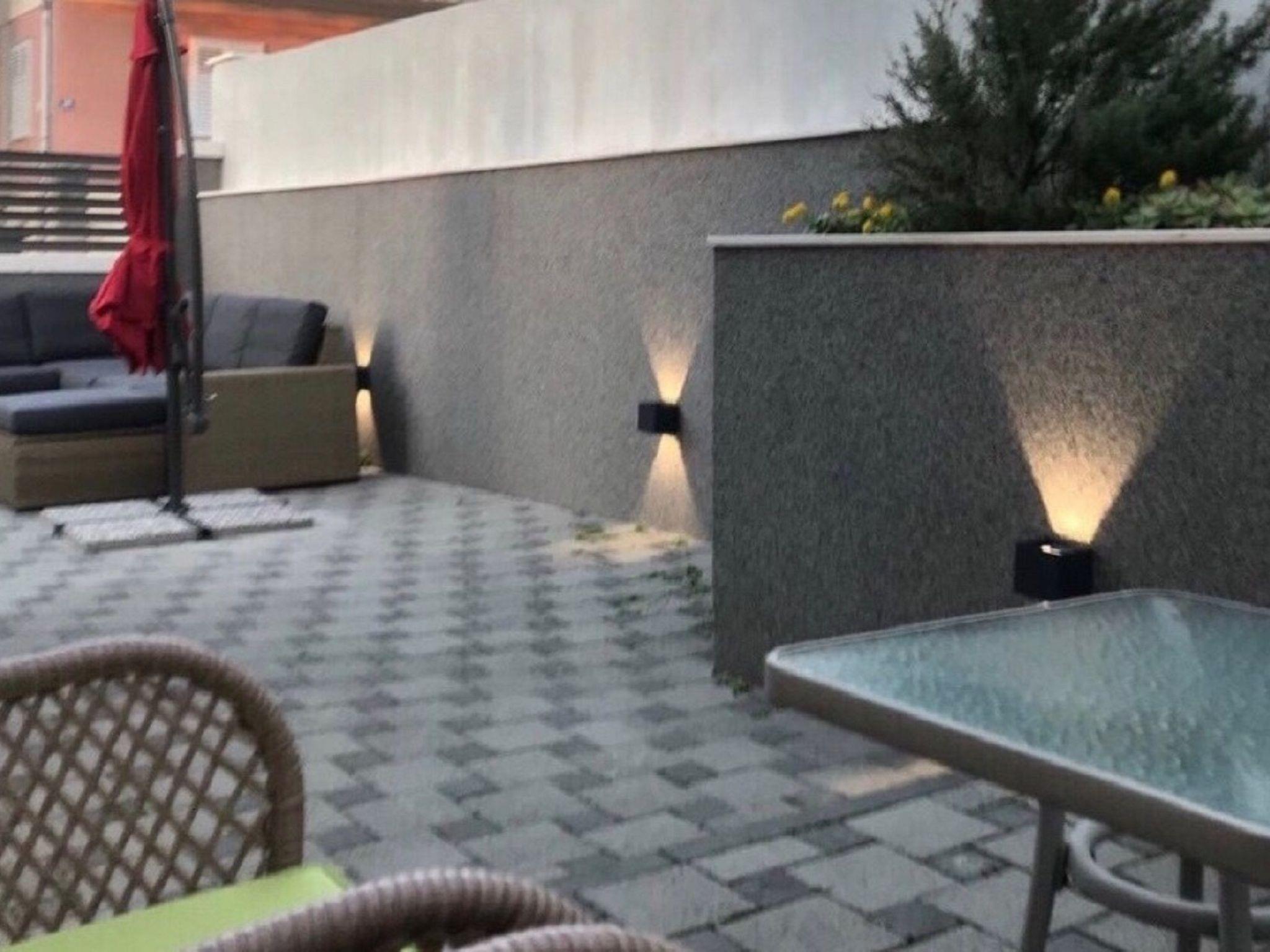 Big glass doors open directly onto the veranda with a table, chairs and a parasol. The garden is adorned with laurel, rosemary and lavender, which exude a wonderful Mediterranean fragrance. The outdoor area is discreetly illuminated at night. There is a parking space in front of the house.