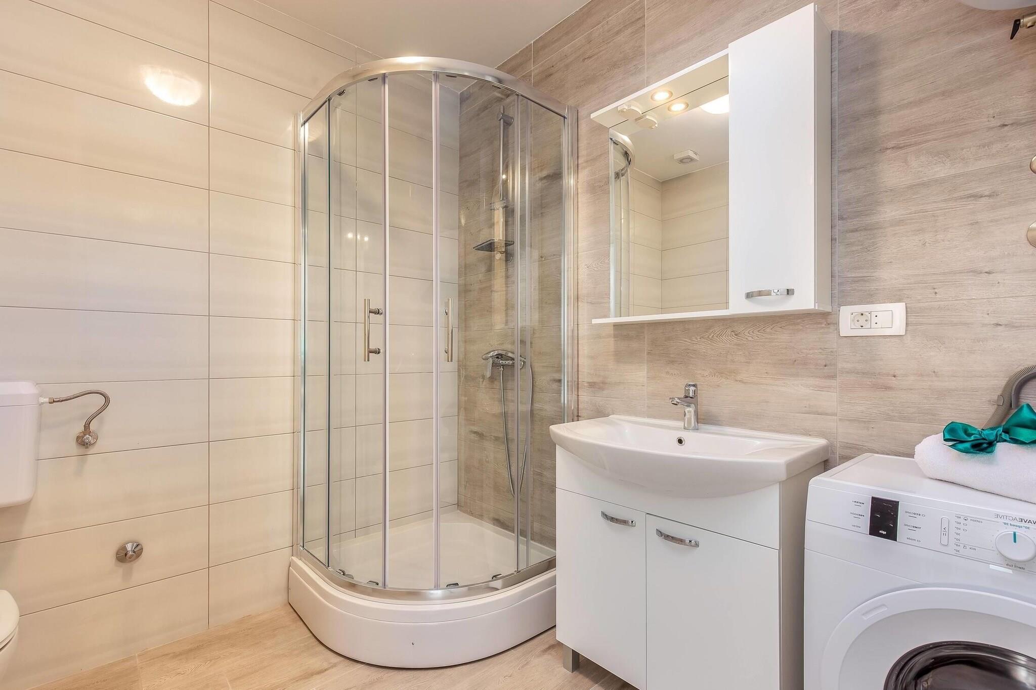 Denne villa lejlighed med swimmingpool til brug og fantastisk havudsigt er beliggende i stedet Dramalj. Din bolig tilbyder komplet komfort, udstyret køkken med spiseplads og stue, soveværelser og badeværelser, balkon, aircondition, gratis wifi. Lejligheden ligger 90 meter væk fra stranden. Dramalj er en lille turistby forbundet med Crikvenica med lang vej omgivet af middelhavs vegetation kaldet Lungo mare. Ramalj og Crikvenica med deres lange tradition for turisme er perler af Crikvenica Riviera på grund af mild Middelhavet klima, smukke sandede, sten og sten strande og rige historiske og kulturelle arv. Udover vandsport for dem, der søger en aktiv ferie, er der forskellige aktiviteter: cykling, bjergbestigning, fiskeri, dykning, tennis og golf. Nationalpark Risnjak med sine naturlige skønheder samt Gorski Kotar, regionen med bjerge og søer kan nås inden for en times kørsel.