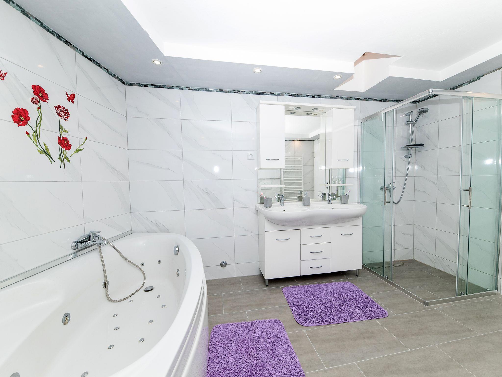 Hof (300m2, Sitzbereich), Parkplatz (Anzahl der Parkplätze: 5, Entfernung vom Objekt: im Hof), Pool: gemeinsam, Dimensionen: 7.5m x 3m x 1.4m, Wassertyp: Süßwasser, Heizung: Ja, Grill: gemeinsam, WiFi Internet, Wäschewaschen, Föhn, Bügeleisen, Bügelbrett