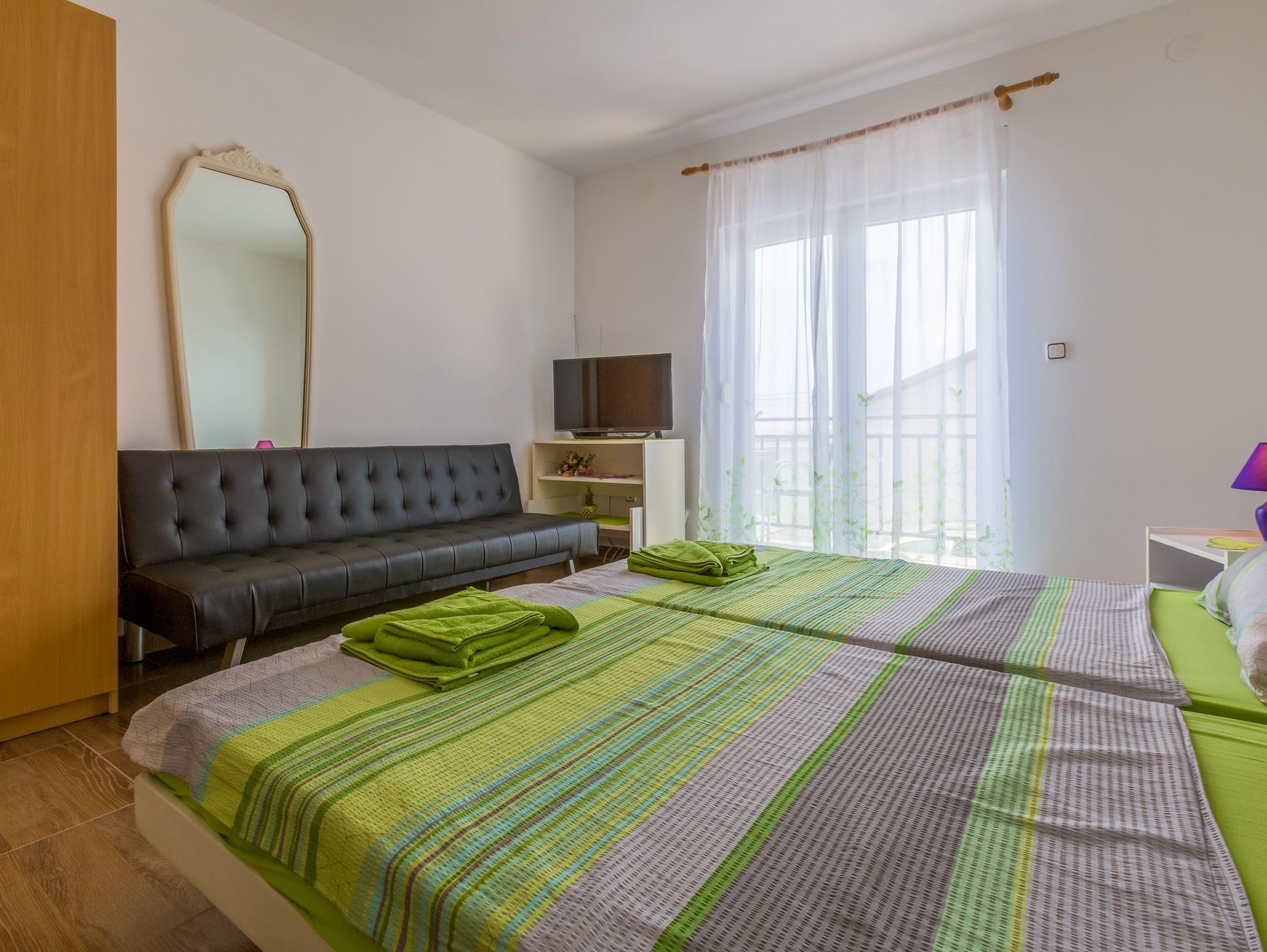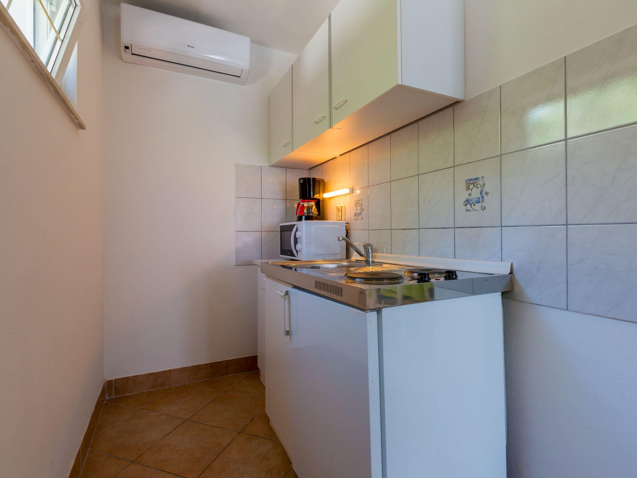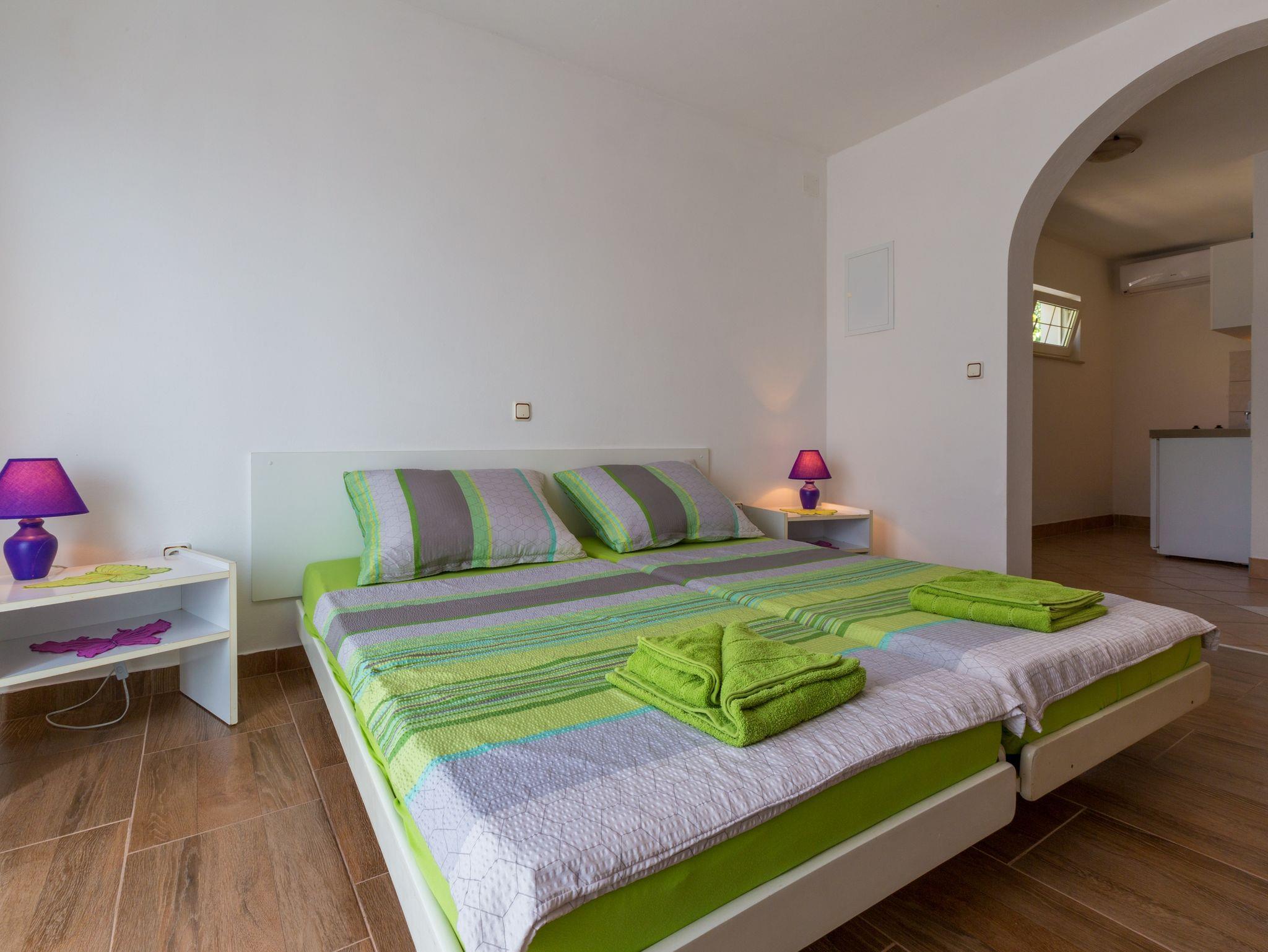 Studio bietet Platz für 2 Gäste. Die Betten sind in Schlafzimmern, die es 1 gibt, innerhalb einer Gesamtfläche von 30m2, angeordnet. Die Gäste haben einen eigenen Balkon zur Verfügung, auf der sie in warmen Sommernächten genießen können. Das Studio-Apartment bietet Meerblick. Es ist erlaubt, Speisen auf dem Gemeinschafts-Grill vorzubereiten. Während ihres Aufenthalts können Gäste das gemeinsam zur Nutzung stehende Schwimmbad benutzen. IM PREIS INBEGRIFFEN: Kurtaxe, Endreinigung, Pool, Parkplatz, Internet, Kinderbett. VERBINDLICHE ZUSÄTZLICHE KOSTEN: Aufzahlung für Kurzaufenthalte (prozentualer Zuschlag pro Nächtigungsanzahl: 30% - 1, 20% - 2, 10% - 3). UNVERBINDLICHE ZUSÄTZLICHE KOSTEN: Klimatisierung (7,00 € pro Nacht). Die Verfügbarkeit zusätzlicher Dienstleistungen in Ihrem reservierten Termin und die Preise derselben (falls nicht aufgeführt) müssen im Voraus überprüft werden. Zusätzliche Dienstleistungen die in der Zahlungsaufforderung nicht aufgeführt sind werden direkt beim Vermieter bezahlt, angenommen der Gast nutzt auch diese.