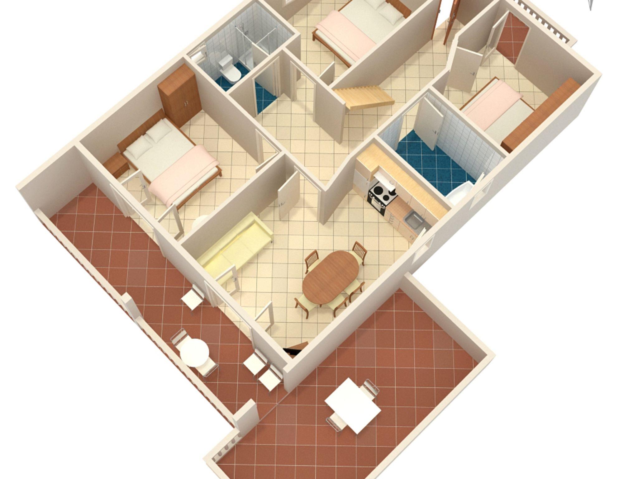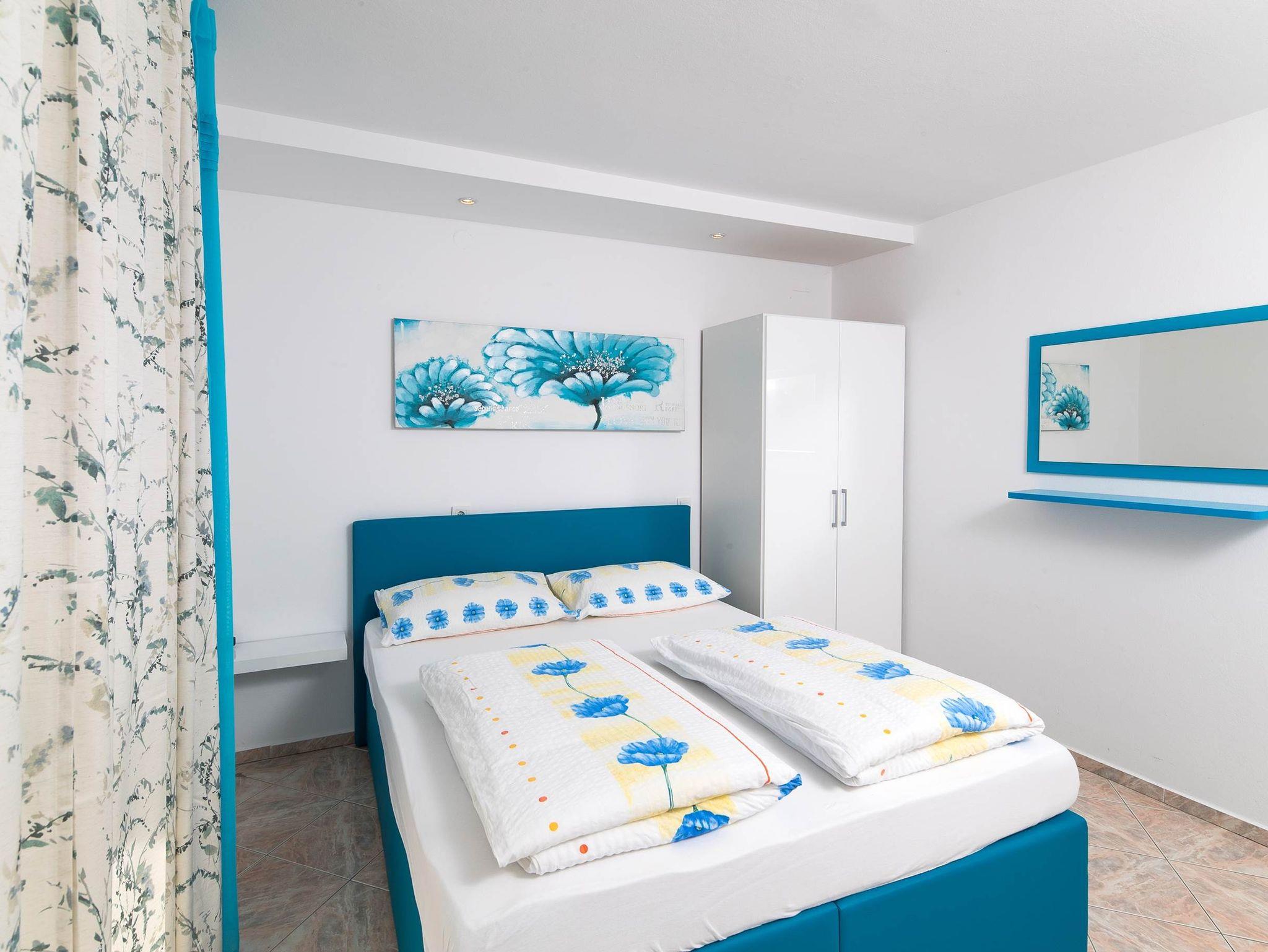 Ferienwohnung bietet Platz für 6 Gäste. Die Betten sind in Schlafzimmern, die es 3 gibt, innerhalb einer Gesamtfläche von 69m2, angeordnet. Die Gäste haben eine eigene Terrasse zur Verfügung, auf der sie in warmen Sommernächten genießen können. Das Apartment bietet Meerblick. Es ist erlaubt, Speisen auf dem Gemeinschafts-Grill vorzubereiten. Während ihres Aufenthalts können Gäste das gemeinsam zur Nutzung stehende Schwimmbad benutzen. IM PREIS INBEGRIFFEN: Kurtaxe, Endreinigung, Klimatisierung, Zentralheizung, Pool, Parkplatz, Internet, Bügeleisen, Bügelbrett, Föhn. VERBINDLICHE ZUSÄTZLICHE KOSTEN: Aufzahlung für Kurzaufenthalte (prozentualer Zuschlag pro Nächtigungsanzahl: 30% - 1, 20% - 2, 10% - 3). UNVERBINDLICHE ZUSÄTZLICHE KOSTEN: Wäschewaschen (5,00 € Waschen). Die Verfügbarkeit zusätzlicher Dienstleistungen in Ihrem reservierten Termin und die Preise derselben (falls nicht aufgeführt) müssen im Voraus überprüft werden. Zusätzliche Dienstleistungen die in der Zahlungsaufforderung nicht aufgeführt sind werden direkt beim Vermieter bezahlt, angenommen der Gast nutzt auch diese.
