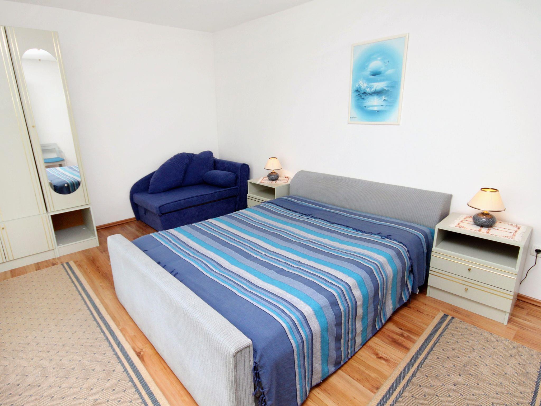 Ferienwohnung bietet Platz für 4 Gäste. Die Betten sind in Schlafzimmern, die es 2 gibt, innerhalb einer Gesamtfläche von 53m2, angeordnet. Die Gäste haben einen eigenen Balkon zur Verfügung, auf der sie in warmen Sommernächten genießen können. Das Apartment bietet Meerblick. Es ist erlaubt, Speisen auf dem Gemeinschafts-Grill vorzubereiten. In der Unterkunftseinheit besteht die Möglichkeit des Mitbringens von Haustieren gegen Aufpreis. IM PREIS INBEGRIFFEN: Kurtaxe, Endreinigung, Parkplatz, Internet, Bügeleisen, Föhn. VERBINDLICHE ZUSÄTZLICHE KOSTEN: Aufzahlung für Kurzaufenthalte (prozentualer Zuschlag pro Nächtigungsanzahl: 30% - 1, 20% - 2, 10% - 3). UNVERBINDLICHE ZUSÄTZLICHE KOSTEN: Klimatisierung (8,00 € pro Nacht), Wäschewaschen (2,00 € Waschen), Haustiere (7,00 € pro Nacht). Die Verfügbarkeit zusätzlicher Dienstleistungen in Ihrem reservierten Termin und die Preise derselben (falls nicht aufgeführt) müssen im Voraus überprüft werden. Zusätzliche Dienstleistungen die in der Zahlungsaufforderung nicht aufgeführt sind werden direkt beim Vermieter bezahlt, angenommen der Gast nutzt auch diese. Ermäßigung auf den Grundpreis: Gratistag 14=13 (bei einem Aufenthalt von 14 Tagen oder mehr erhalten Sie einen Gratistag für den Aufenthalt bis 31.12.26).