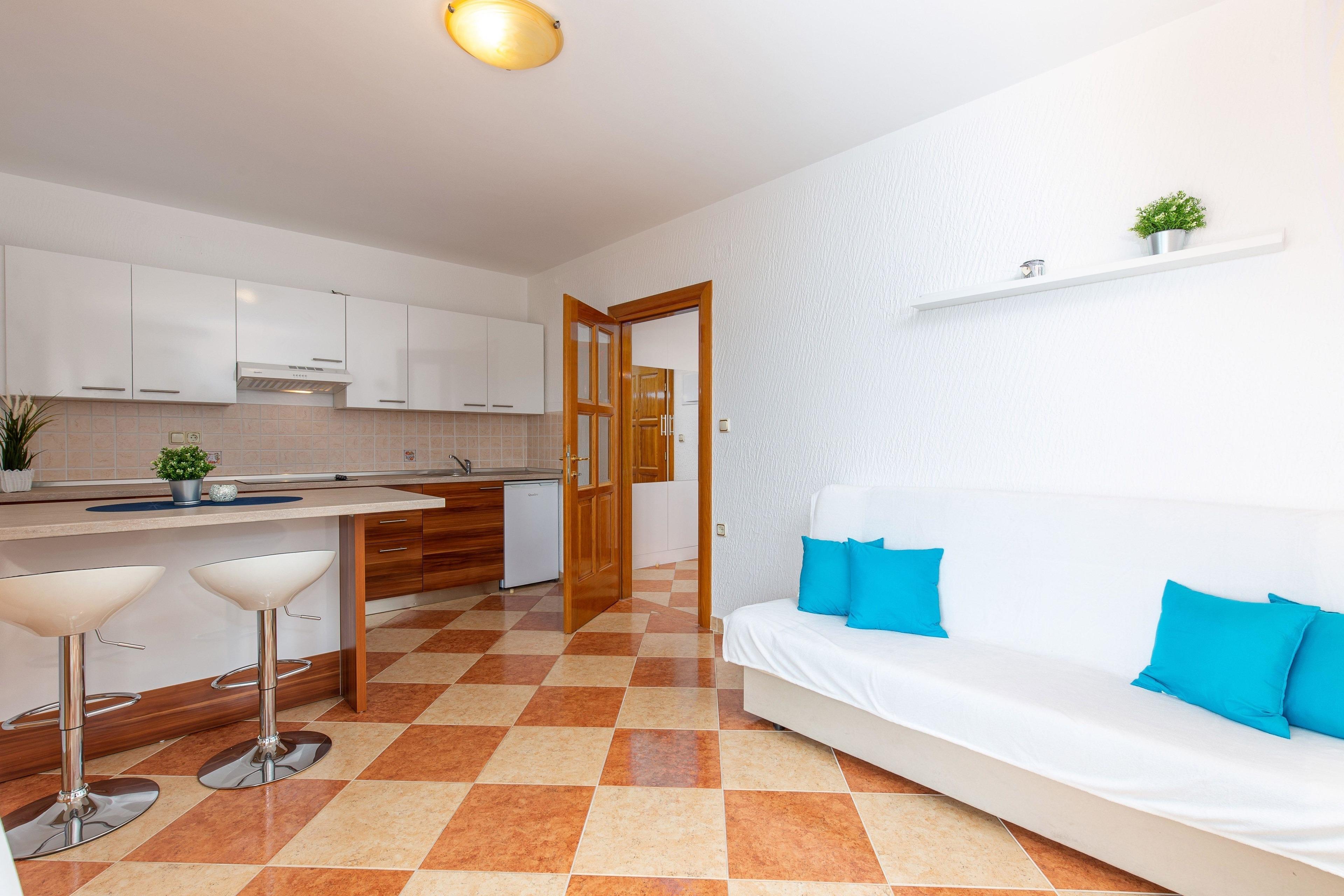 Diese 40m² Wohnung befindet sich im ersten Stock und bietet Platz für bis zu vier Personen. Es hat ein Schlafzimmer mit einem Doppelbett und ein Schlafsofa für zwei Personen im Wohnzimmer, das auch einen Esstisch mit Stühlen und eine gut ausgestattete Küche mit Herd, Kühlschrank mit Gefrierfach, Mikrowelle, Wasserkocher und Kaffeemaschine hat. Das Badezimmer hat eine Dusche, Haartrockner und eine Waschmaschine. Sat-TV und kostenfreier Internetzugang sind ebenfalls vorhanden.