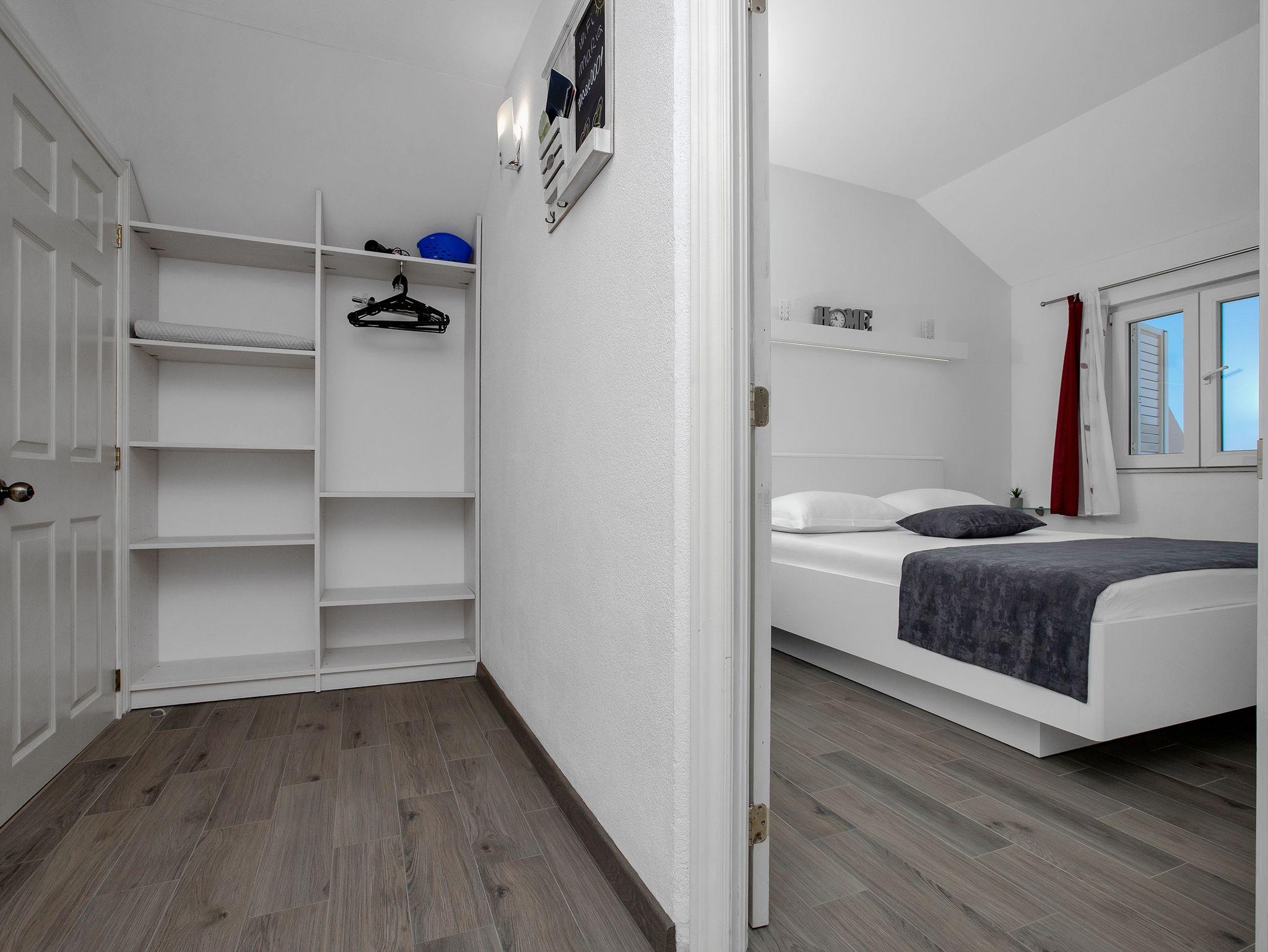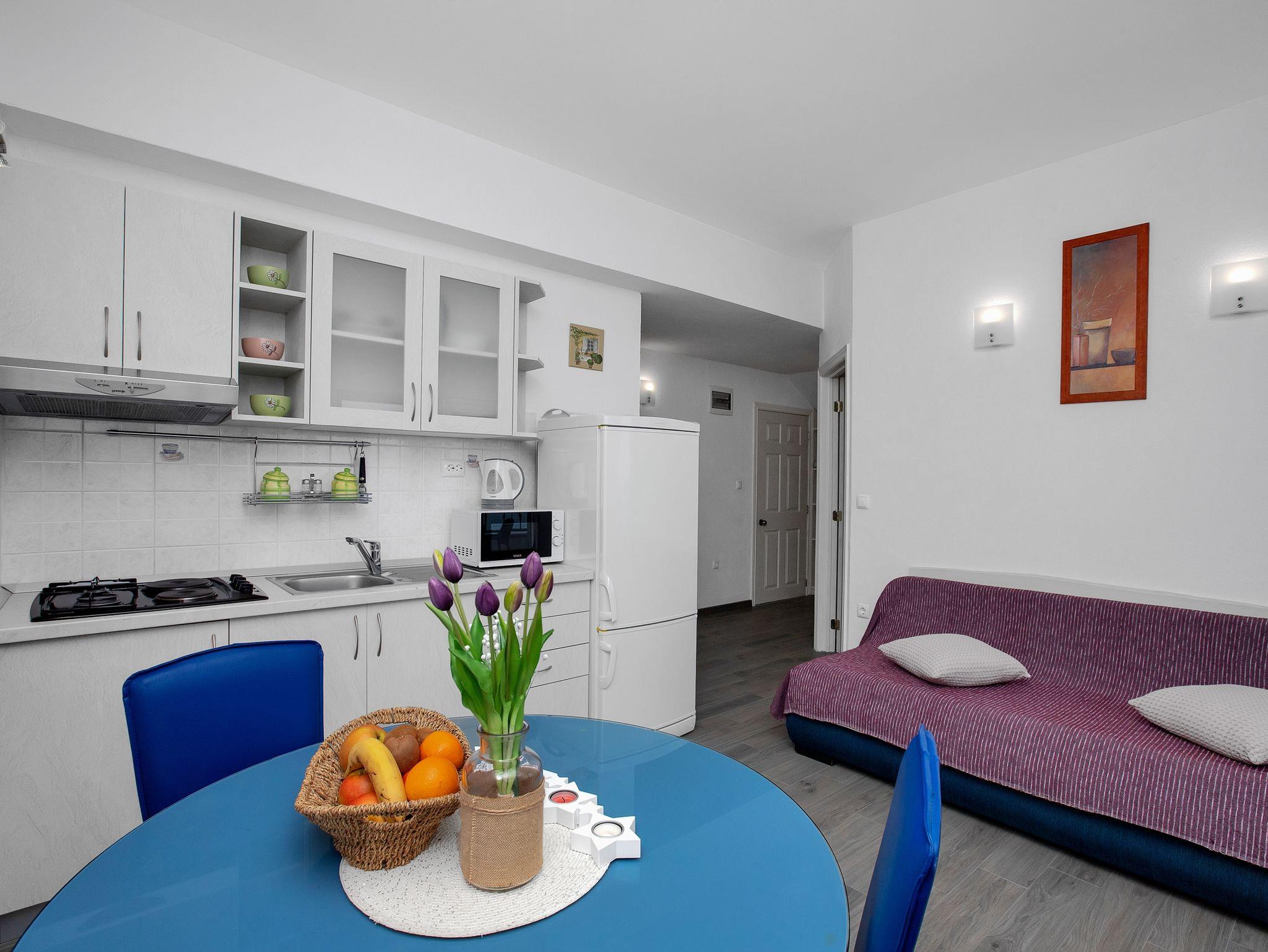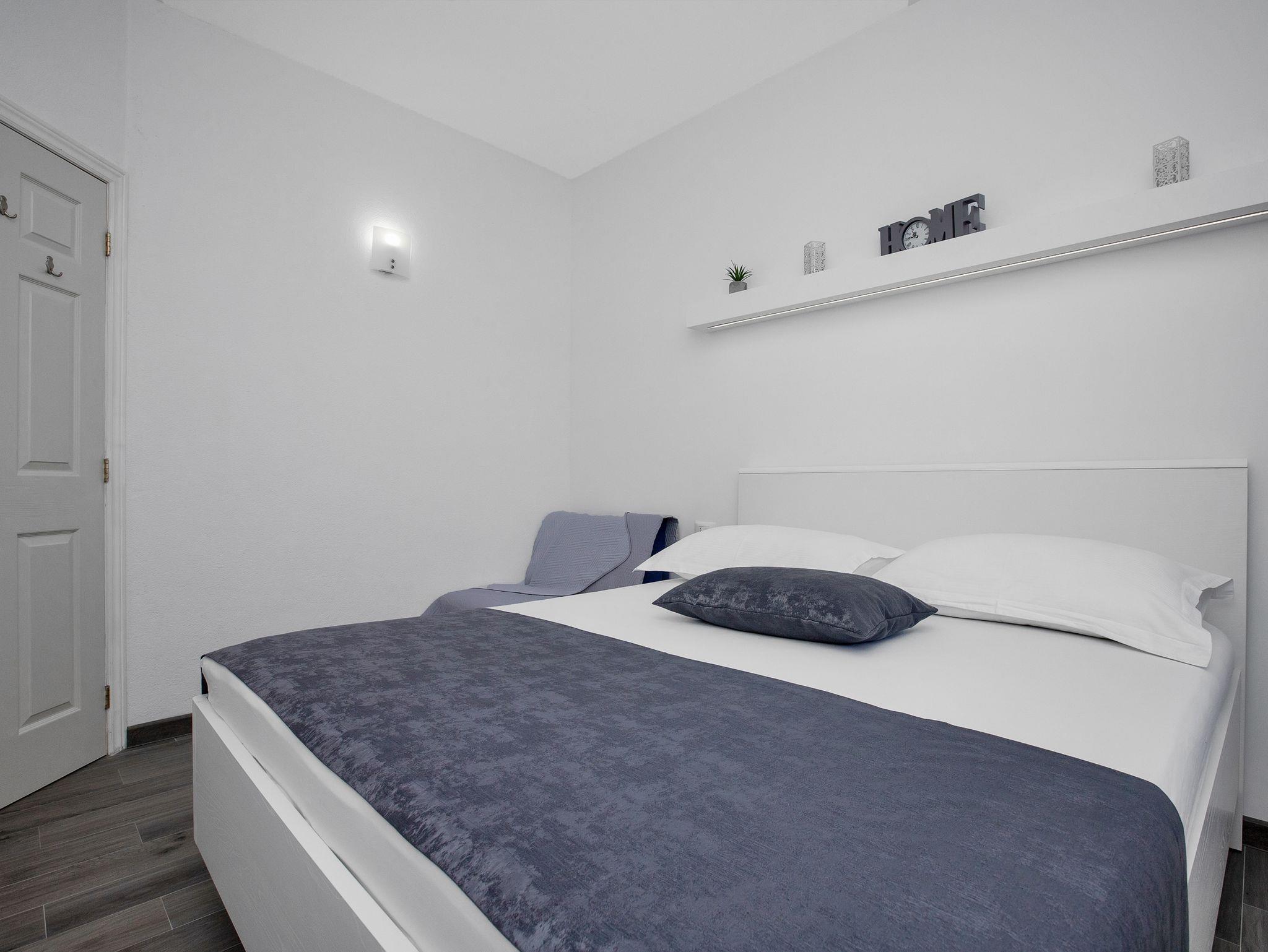 Ferienwohnung bietet Platz für 3 Gäste. Die Betten sind in Schlafzimmern, die es 1 gibt, und in Wohnzimmer, innerhalb einer Gesamtfläche von 33m2, angeordnet. Die Gäste haben eine eigene Terrasse zur Verfügung, auf der sie in warmen Sommernächten genießen können. Das Apartment bietet Meerblick. IM PREIS INBEGRIFFEN: Kurtaxe, Endreinigung, Klimatisierung, Parkplatz, Internet, Bügeleisen, Bügelbrett, Föhn. VERBINDLICHE ZUSÄTZLICHE KOSTEN: Aufzahlung für Kurzaufenthalte (prozentualer Zuschlag pro Nächtigungsanzahl: 30% - 1, 20% - 2, 10% - 3). Die Verfügbarkeit zusätzlicher Dienstleistungen in Ihrem reservierten Termin und die Preise derselben (falls nicht aufgeführt) müssen im Voraus überprüft werden. Zusätzliche Dienstleistungen die in der Zahlungsaufforderung nicht aufgeführt sind werden direkt beim Vermieter bezahlt, angenommen der Gast nutzt auch diese.