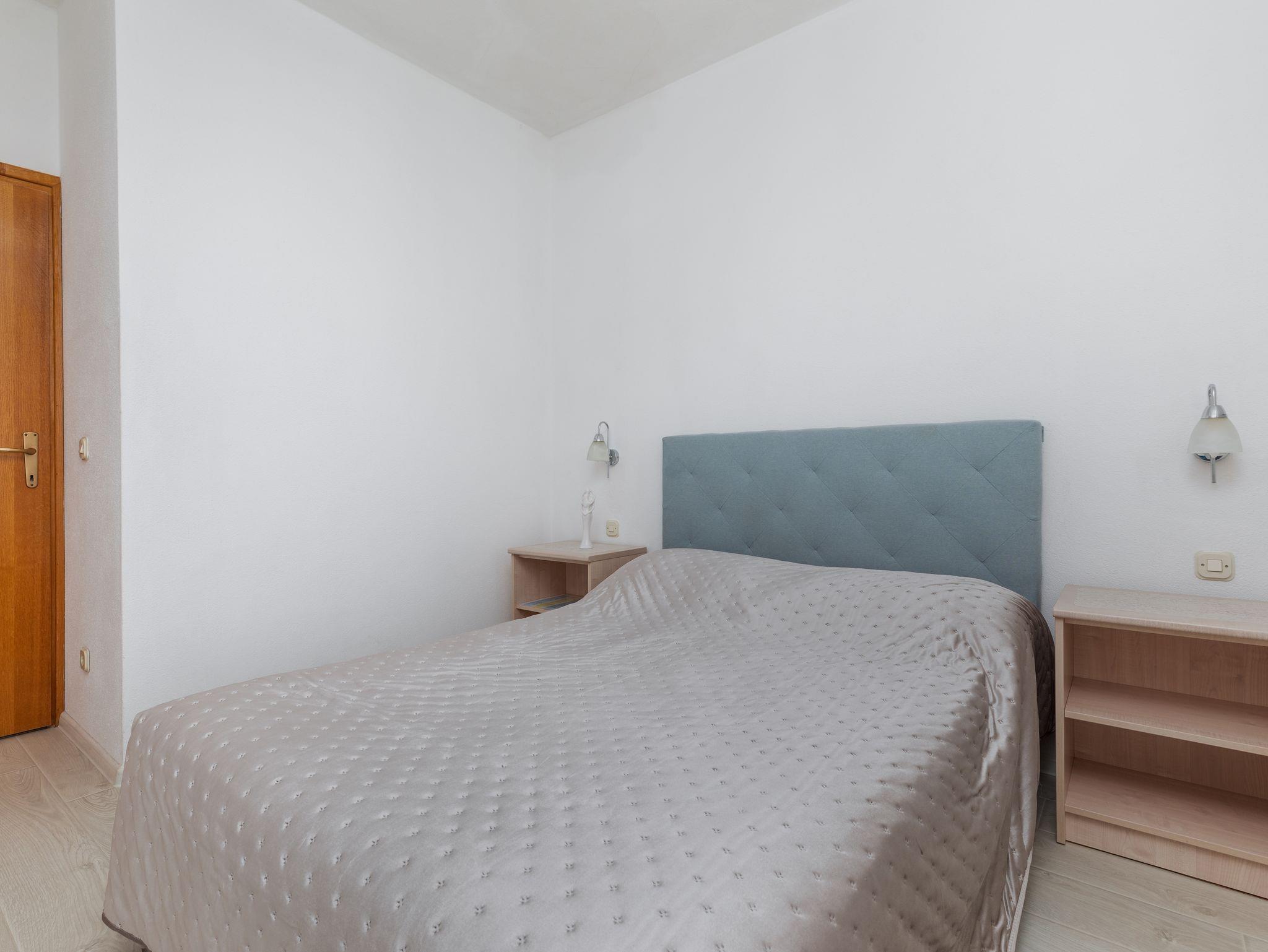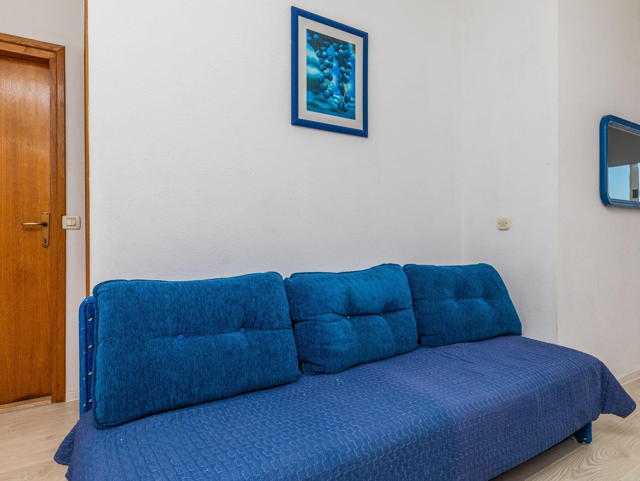 Ferienwohnung bietet Platz für 3 Gäste. Die Betten sind in Schlafzimmern, die es 1 gibt, und in Wohnzimmer, innerhalb einer Gesamtfläche von 29m2, angeordnet. Die Gäste haben eine eigene Terrasse zur Verfügung, auf der sie in warmen Sommernächten genießen können. Das Apartment bietet Meerblick. Es ist erlaubt, Speisen auf dem Gemeinschafts-Grill vorzubereiten. In der Unterkunftseinheit besteht die Möglichkeit des Mitbringens von Haustieren gegen Aufpreis. IM PREIS INBEGRIFFEN: Kurtaxe, Endreinigung, Internet, Kinderbett, Bügeleisen, Bügelbrett, Föhn. VERBINDLICHE ZUSÄTZLICHE KOSTEN: Aufzahlung für Kurzaufenthalte (prozentualer Zuschlag pro Nächtigungsanzahl: 30% - 1, 20% - 2, 10% - 3). UNVERBINDLICHE ZUSÄTZLICHE KOSTEN: Klimatisierung (6,00 € pro Nacht), Haustiere (6,00 € pro Nacht). Die Verfügbarkeit zusätzlicher Dienstleistungen in Ihrem reservierten Termin und die Preise derselben (falls nicht aufgeführt) müssen im Voraus überprüft werden. Zusätzliche Dienstleistungen die in der Zahlungsaufforderung nicht aufgeführt sind werden direkt beim Vermieter bezahlt, angenommen der Gast nutzt auch diese. Ermäßigung auf den Grundpreis: Gratistag 14=13 (bei einem Aufenthalt von 14 Tagen oder mehr erhalten Sie einen Gratistag für den Aufenthalt bis 31.12.26).