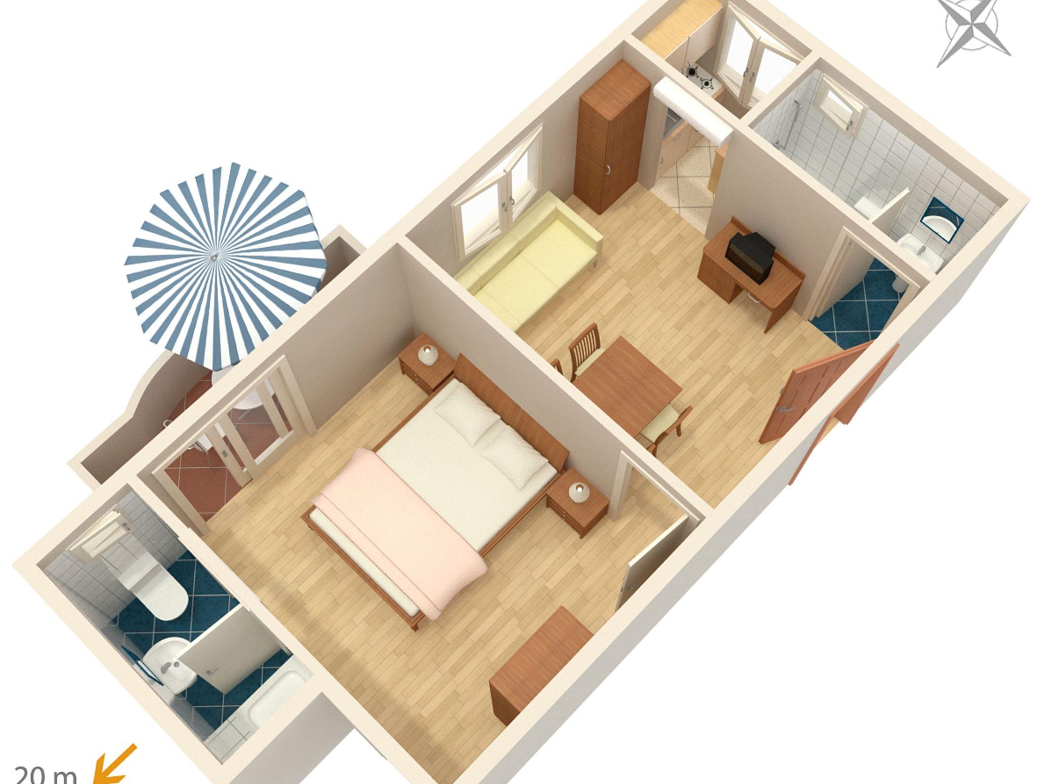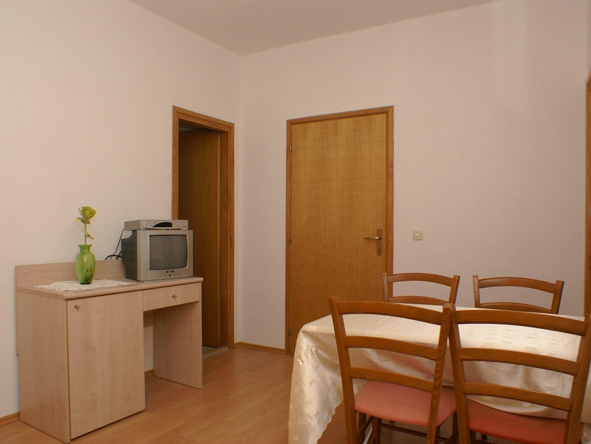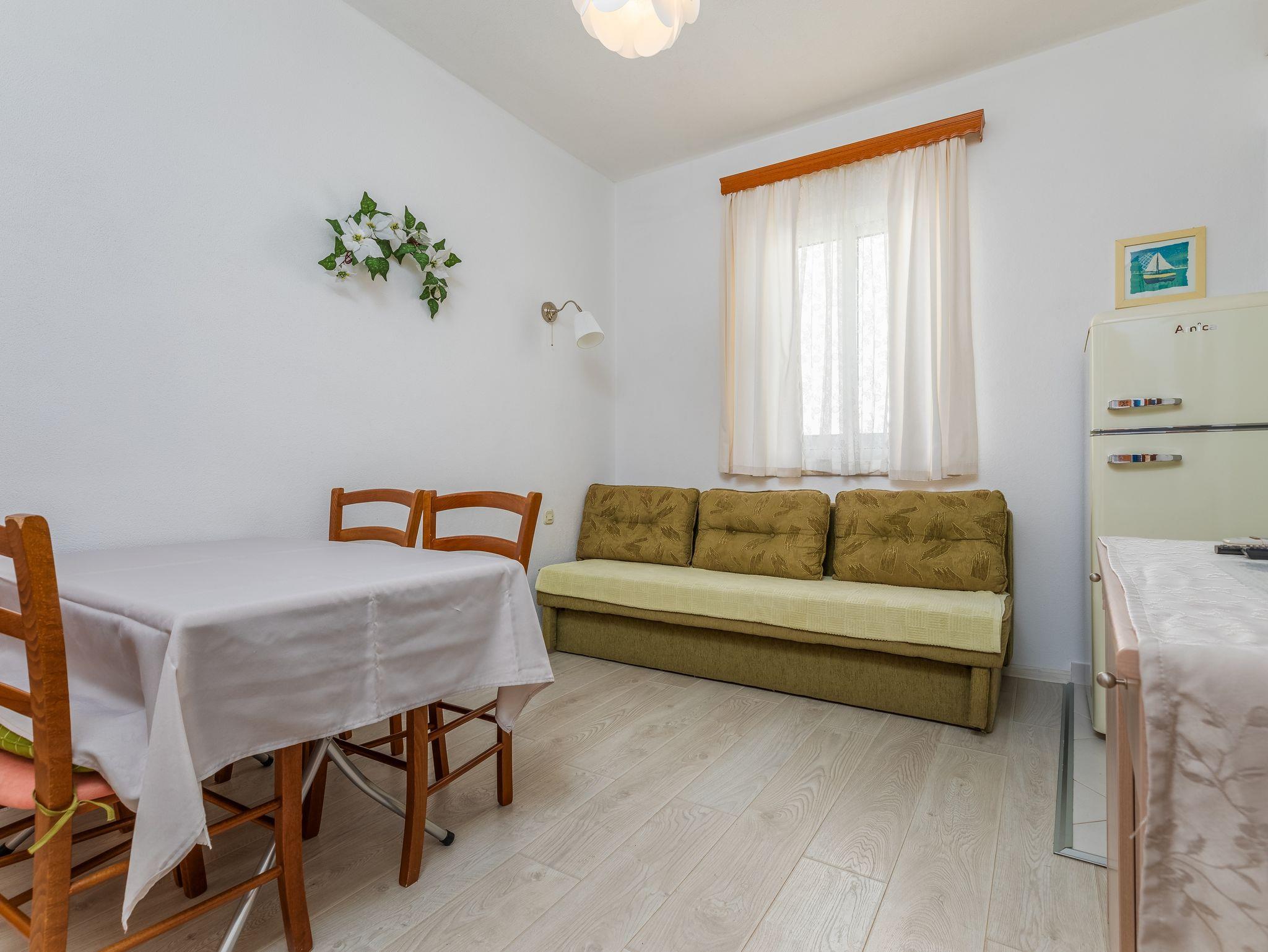 Ferienwohnung bietet Platz für 3 Gäste. Die Betten sind in Schlafzimmern, die es 1 gibt, und in Wohnzimmer, innerhalb einer Gesamtfläche von 32m2, angeordnet. Die Gäste haben einen eigenen Balkon zur Verfügung, auf der sie in warmen Sommernächten genießen können. Das Apartment bietet Meerblick. Es ist erlaubt, Speisen auf dem Gemeinschafts-Grill vorzubereiten. In der Unterkunftseinheit besteht die Möglichkeit des Mitbringens von Haustieren gegen Aufpreis. IM PREIS INBEGRIFFEN: Kurtaxe, Endreinigung, Internet, Kinderbett, Bügeleisen, Bügelbrett, Föhn. VERBINDLICHE ZUSÄTZLICHE KOSTEN: Aufzahlung für Kurzaufenthalte (prozentualer Zuschlag pro Nächtigungsanzahl: 30% - 1, 20% - 2, 10% - 3). UNVERBINDLICHE ZUSÄTZLICHE KOSTEN: Klimatisierung (6,00 € pro Nacht), Haustiere (6,00 € pro Nacht). Die Verfügbarkeit zusätzlicher Dienstleistungen in Ihrem reservierten Termin und die Preise derselben (falls nicht aufgeführt) müssen im Voraus überprüft werden. Zusätzliche Dienstleistungen die in der Zahlungsaufforderung nicht aufgeführt sind werden direkt beim Vermieter bezahlt, angenommen der Gast nutzt auch diese. Ermäßigung auf den Grundpreis: Gratistag 14=13 (bei einem Aufenthalt von 14 Tagen oder mehr erhalten Sie einen Gratistag für den Aufenthalt bis 31.12.26).