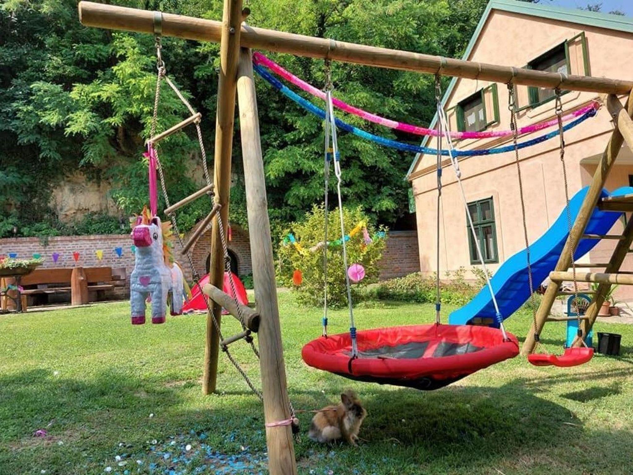 Hof (16000m2, Kinderbereich, Sitzbereich), Parkplatz (Anzahl der Parkplätze: 4, Entfernung vom Objekt: im Hof), WiFi Internet, Fahrrad (Anzahl: 3), Föhn, Bügeleisen, Bügelbrett, Kinderbett