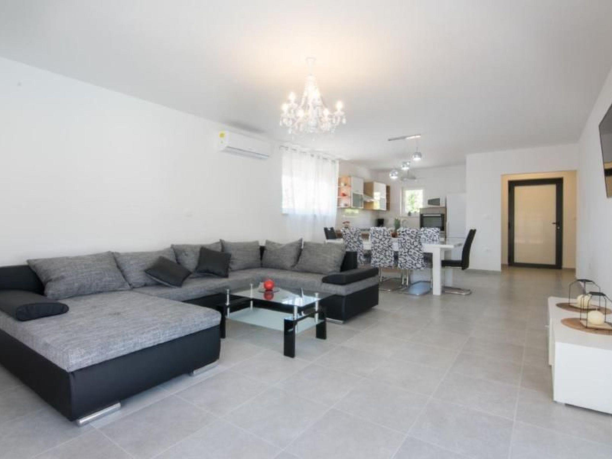 The living room is open, big and nice. Due to the many windows, it is well flooded with light and is very bright for a friendly inside environment and joyful stay with your relatives. The living room is connected with the kitchen, which brings cooking together on a new level. Needless to mention that the living room is equipped with an air conditioning too and will provide a wonderful room temperature in any season. The kitchen is well equipped with everything you may know from home. Plates, glasses, pots, dishwasher, toaster, freezer, oven and microwave. This makes the 150 m2 common size of the one floored Villa Stella your best choice for a stay.