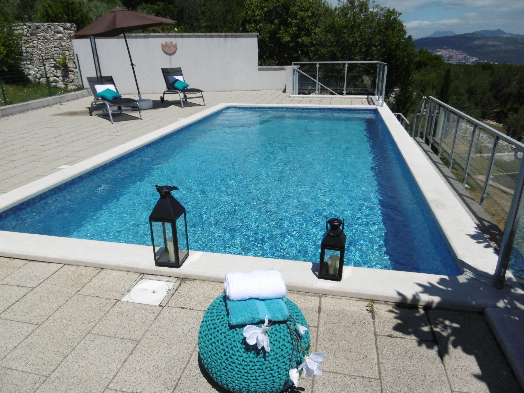 A large swimming pool offers space for everyone and allows a great view over the sea while swimming.
