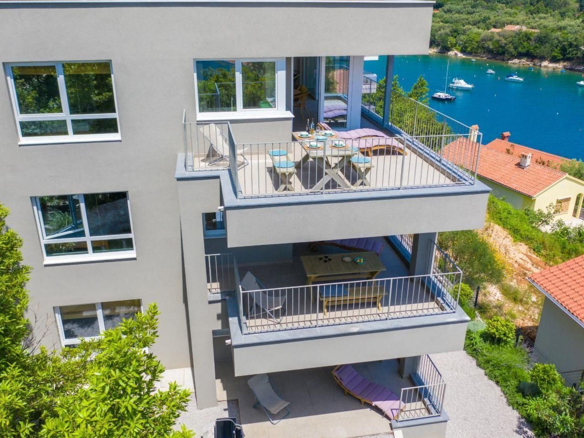 Beautiful, spacious luxury first-floor apartment of a house newly built in 2017 in the middle of the small, Mediterranean fishing village "Sveta Marina". The region is known for its extremely clean sea water and naturalness. You will find the first swimming opportunity only 2 minutes away on foot. The apartment is very comfortable, equipped with modern, high quality interior and kitchen and offers a breathtaking view of the open sea and the quiet bay. It has a large living / dining area and 2 separate bedrooms, each with its own spacious bathroom. Private parking spaces available, a buoy for mooring boats can be provided depending on availability and prior agreement. The equipment and the location of this apartment certainly make it one of the top offers in this region. SmartTV, WiFi, Satellite TV are available.