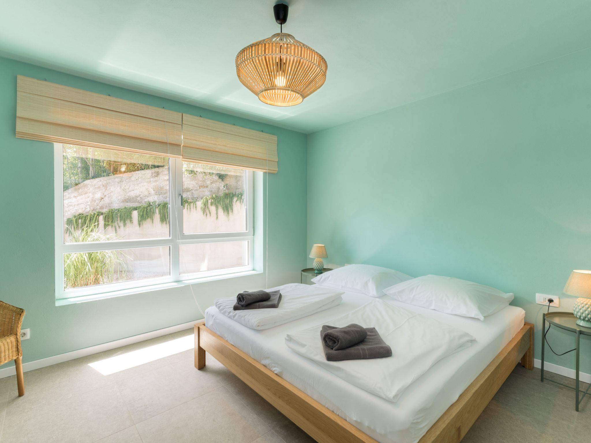 Beautiful, spacious luxury ground-floor apartment of a house newly built in 2017 in the middle of the small, Mediterranean fishing village "Sveta Marina". The region is known for its extremely clean sea water and naturalness. You will find the first swimming opportunity only 2 minutes away on foot. The apartment is very comfortable, equipped with modern, high quality interior and kitchen and offers a breathtaking view of the open sea and the quiet bay. It has a large living / dining area and 2 separate bedrooms, each with its own spacious bathroom. Private parking spaces available, a buoy for mooring boats can be provided depending on availability and prior agreement. The equipment and the location of this apartment certainly make it one of the top offers in this region. SmartTV, WiFi, SAT