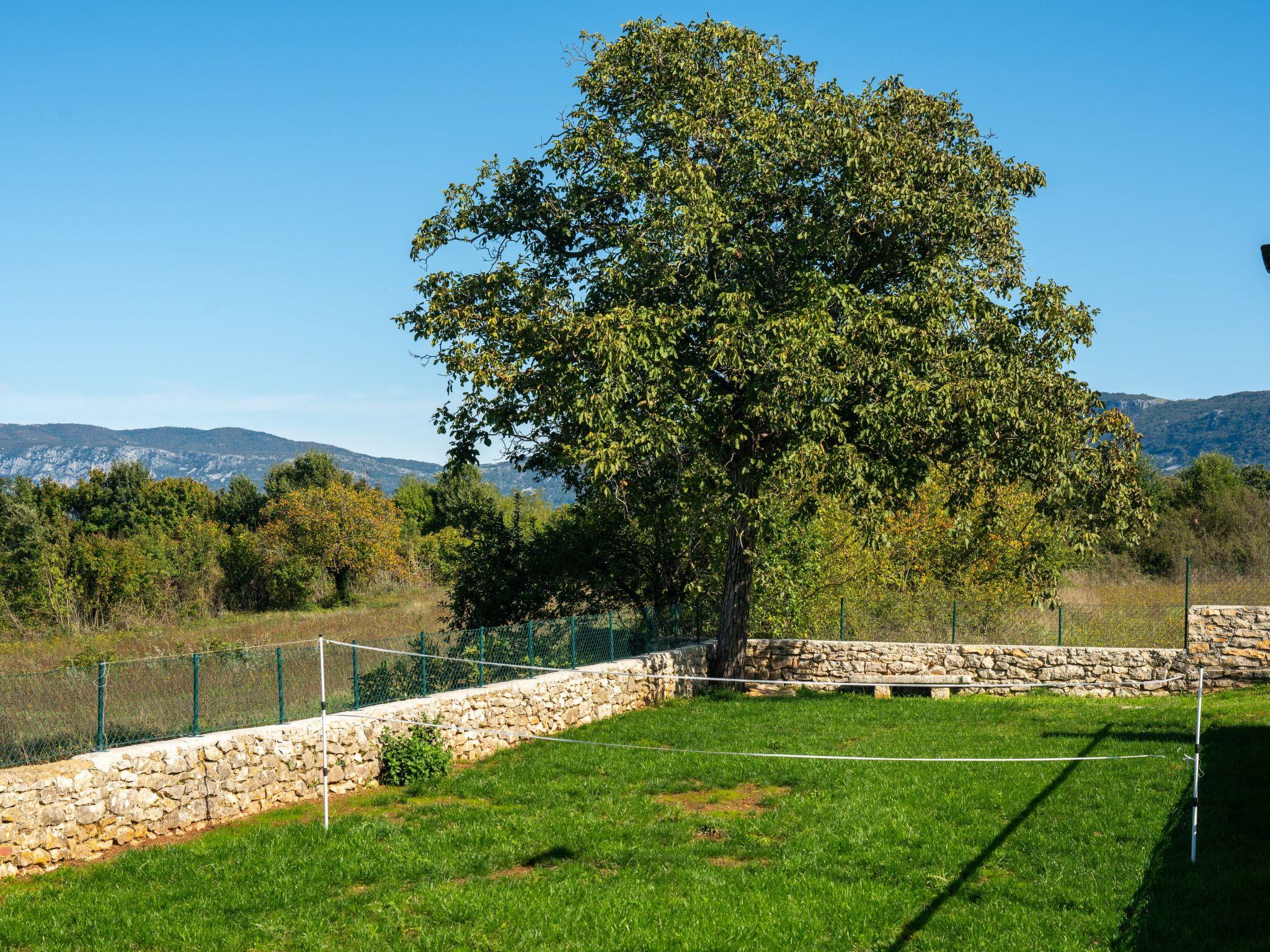 The property offers picturesque views of the mountain Ucka and surrounding countryside, enhancing the relaxing ambiance.