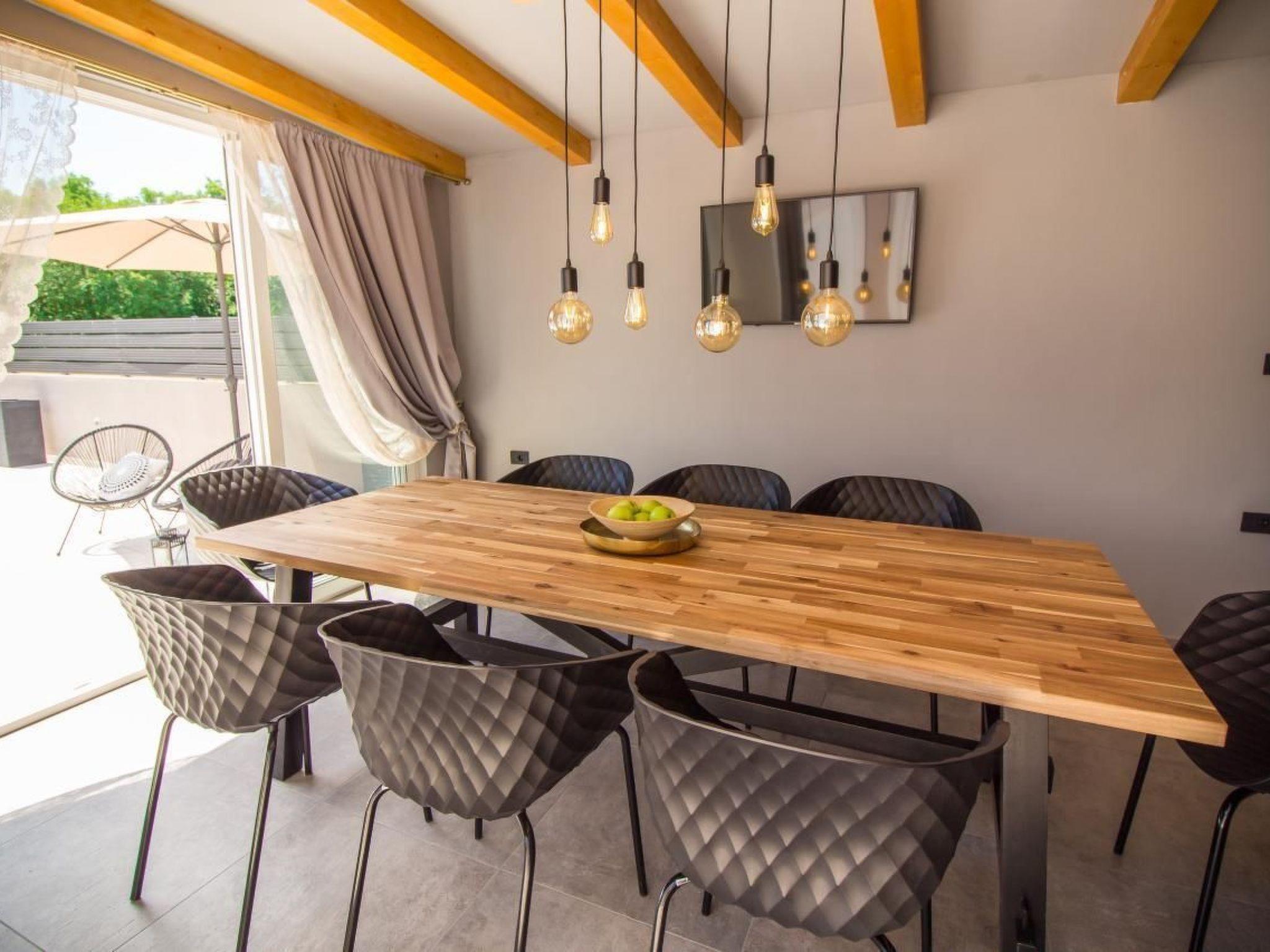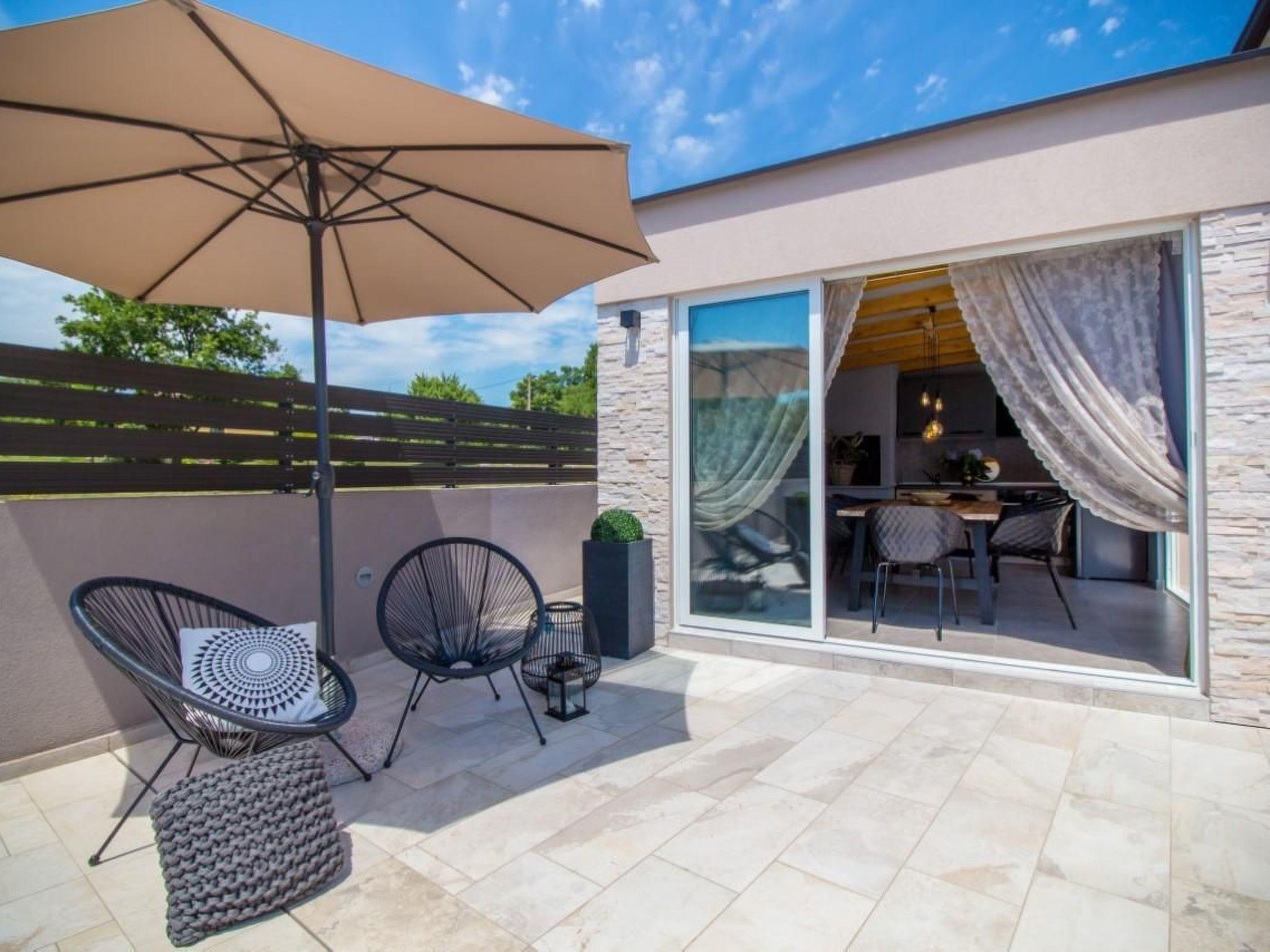 Very beautiful villa surrounded by beautiful nature on the beautiful east side of the peninsula of Istria. Here you will find all the necessary equipment. Villa with pool for 8 people with a floor space of 250 sqm on two fully air-conditioned floors. On the ground floor there is a living area with exit to the pool, a fully equipped kitchen with exit to the terrace, a dining table, 2 double bedrooms and 2 bathrooms. On the first floor there are also living room, equipped kitchen, 2 bedrooms, 2 bathrooms and balcony. All bedrooms have their own bathroom, 1 with bath and 3 with shower. In addition, all rooms are fully air-conditioned and equipped with SAT-TV and Wi-Fi. Outdoor kitchen, barbecue and private parking for 4 cars in the yard is also available. This summer house will give you everything you need for a perfect holiday.We not accept group of young people.Short descriptionOther : Non-smoking houseShort description 1Number of kitchens : 2SurroundingNearby sports facilities : Basketball, Bike tours, Diving, Mountain climbing, Sport center, Tennis, Water skiingRental Facilities : Bicycle rental service, car rentalGarden and outdoorGarden facilities : Garden furniture provided, Grill, PavilionOn-site leisure facilities : Outdoor swimming pool exclusive use, Swimming pool