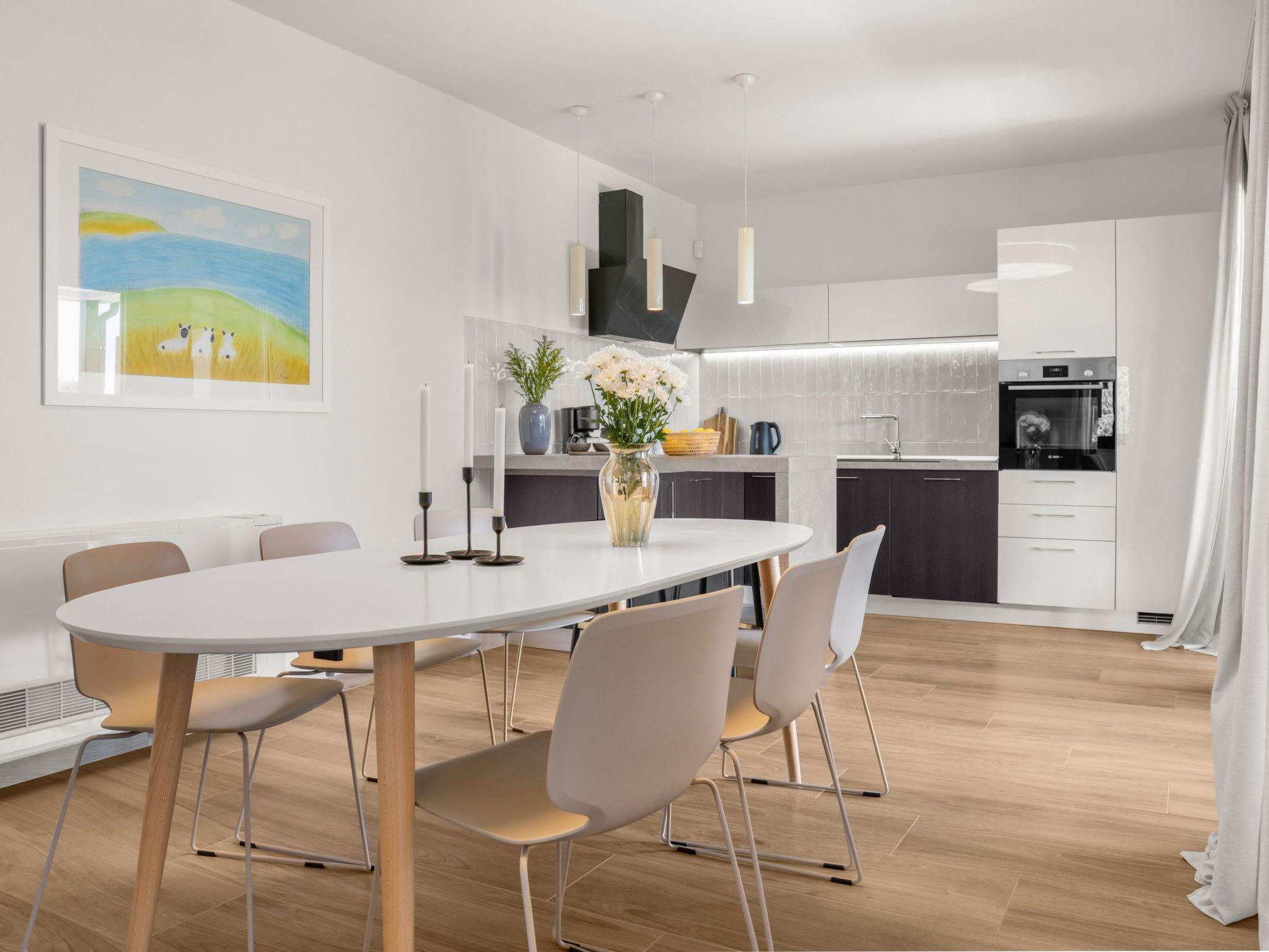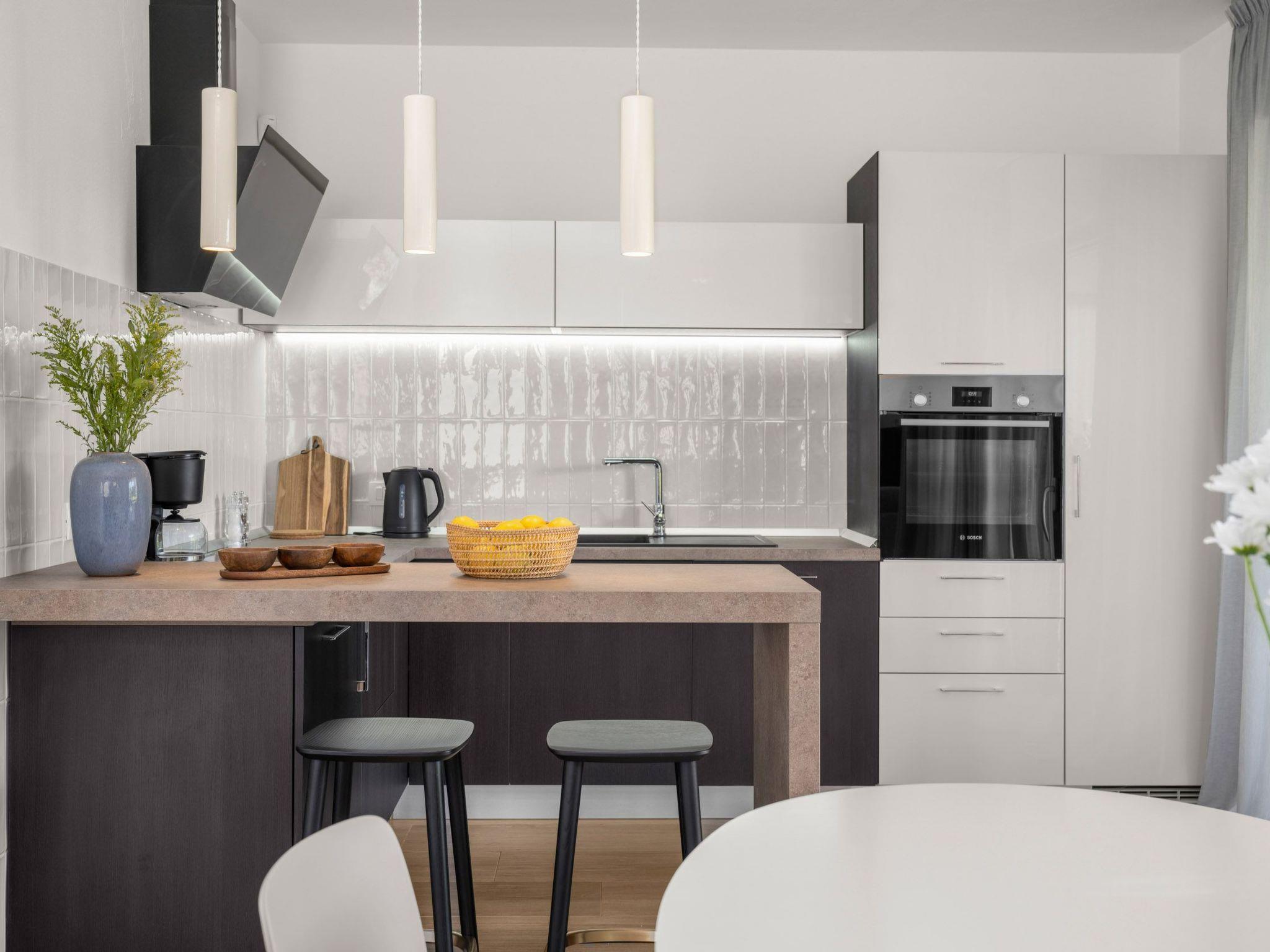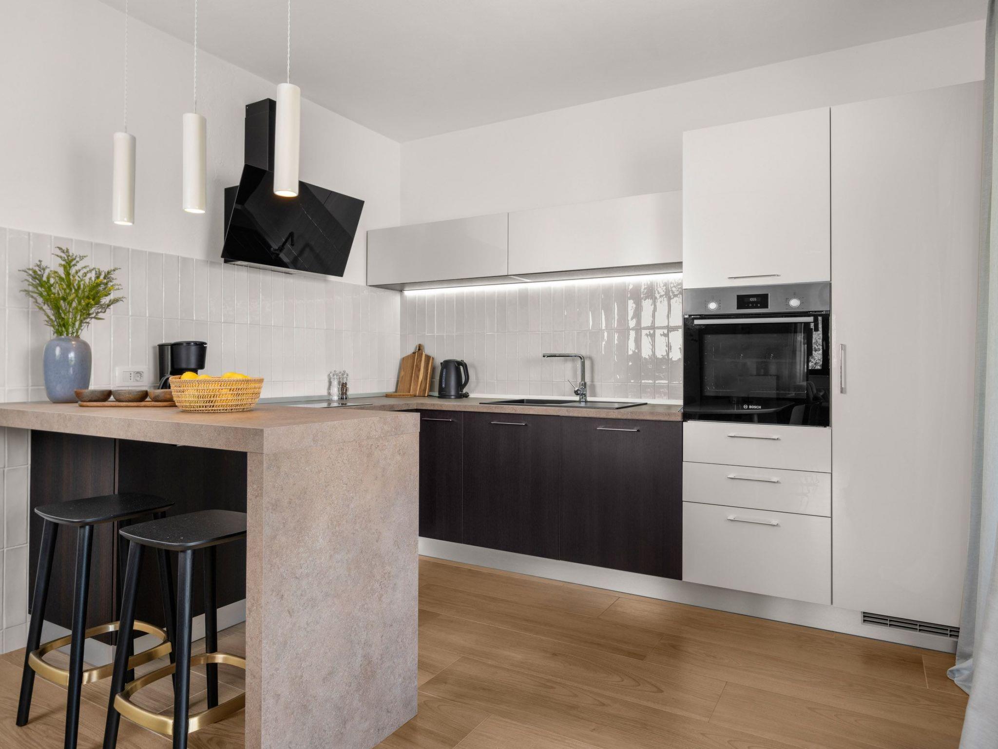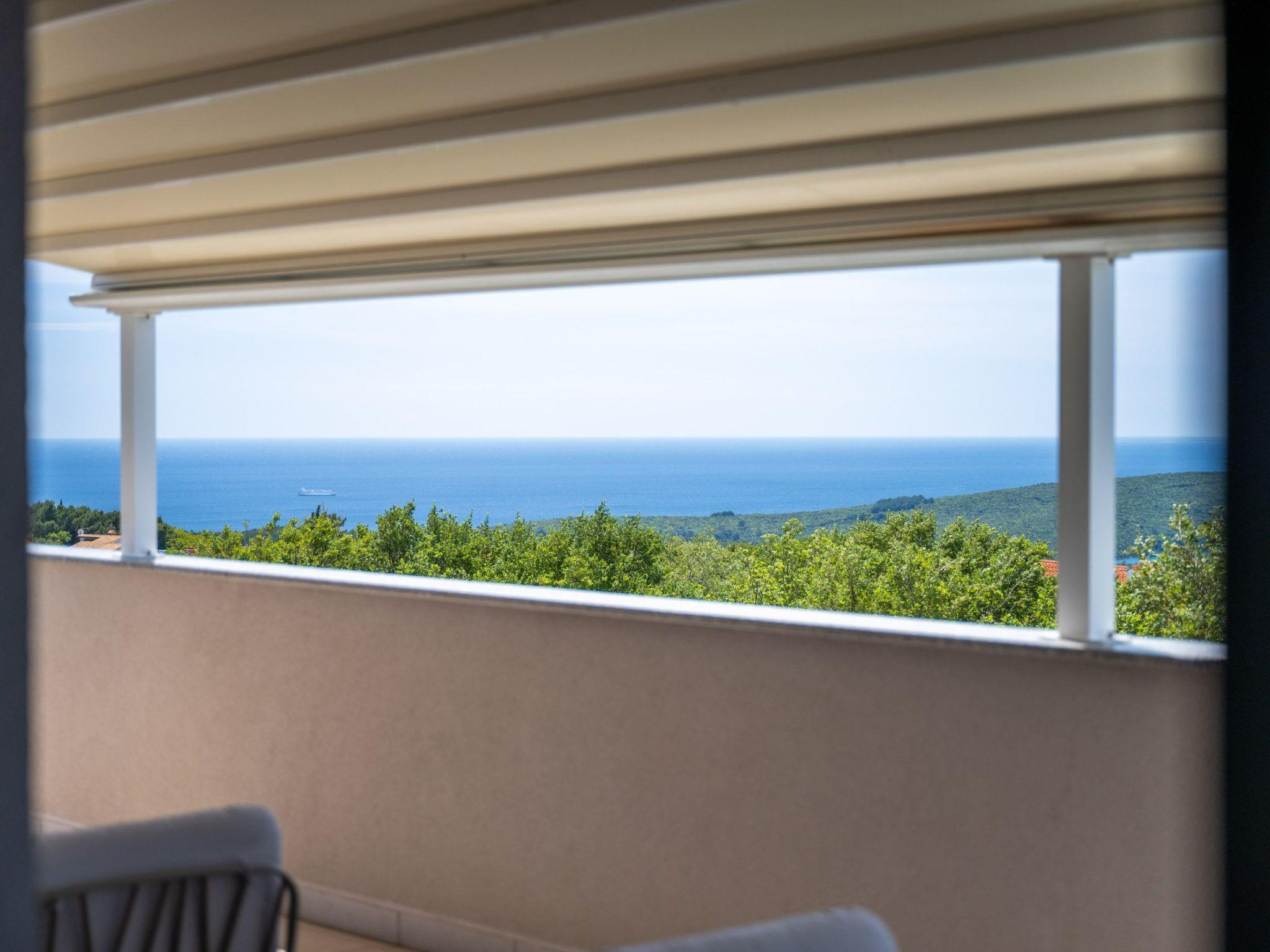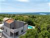Inside Villa Alba, guests are greeted by a spacious and elegantly decorated interior. On the lower floor of the villa there is a modern kitchen equipped with everything necessary for preparing meals, including a ceramic hob, filter coffee machine, capsule coffee machine, dishwasher and kettle. There is also a spacious dining room and living room, along with one bedroom. Two additional bedrooms are located on the upper floor, each with its own bathroom and terrace overlooking the Kvarner Bay, and each bedroom can be darkened for maximum privacy and comfort.