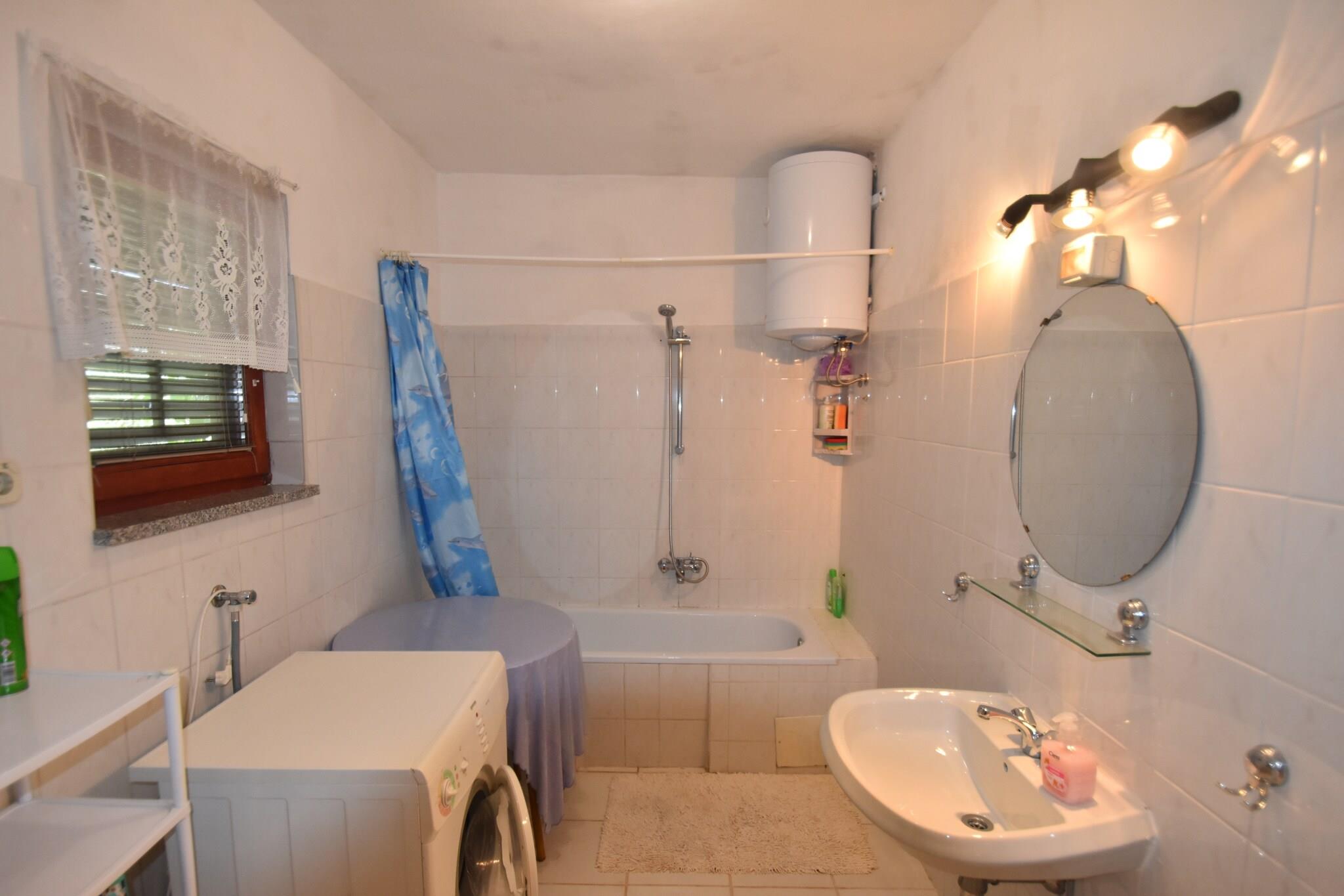 Du vil gerne leve her! Hver morgen vil du nyde din morgenmad på den overdækkede terrasse med havemøbler og så kan du dykke ind i swimmingpoolen lidt længere væk (som du vil dele med en anden lejlighed). Mens børnene stadig springer rundt, kan du planlægge resten af dagen. Der er så mange muligheder! Er det Istrien med sin smukke kystlinje og det smukke landskab fyldt med vinmarker og oliventræer? Og de historiske seværdigheder i byer som Porec (72 km), Pula (54 km), Rovinj (65 km), Motovun (60 km) og Groznjan (75 km)? Eller vil det være Kvarner, hvor du kan tage et smukt hjem i Nationalpark Ucka og besøge øerne i Kvarner Bay? Selvfølgelig kan du også tage det nemt og planlægge en god frokost i det historiske centrum af Labin (10 km) eller en dag på Rabacs strand (15 km) med vandsportsfaciliteter. Du vil også finde en smuk stenstrand i Santa Marina (4 km).