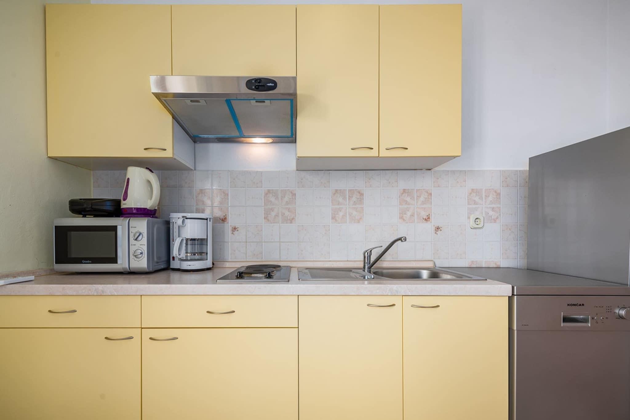 Denne ejendom tilbyder et behageligt og afslappende ophold med plads til op til 5 personer. Det har to soveværelser, det ene med en king-size seng og det andet med en queen-size seng, plus en sovesofa i stuen til den femte gæst. Lejligheden er veludstyret med moderne bekvemmeligheder, herunder eget badeværelse med hydromassagebadekar, aircondition, gratis trådløs internetadgang og parkering. Gæsterne kan nyde fælles faciliteter, såsom en opvarmet swimmingpool, sauna, tyrkisk bad, infrarødt bad, spabad og en terrasse med grillfaciliteter, hvilket gør det til et ideelt valg for dem, der søger afslapning og wellness. Denne ejendom ligger i den fredelige landsby Drenje og tilbyder en rolig flugt omgivet af natur. De nærliggende strande, Jadrena (700 meter) og Ravni (1,7 kilometer), giver gæsterne mulighed for at nyde solen og havet. Den charmerende by Labin ligger kun 12 kilometer væk, hvor besøgende kan udforske lokal kultur og historie. Derudover kan gæster leje cykler, kajakker eller endda tage på en guidet quad-tur for at udforske de smukke omgivelser. En købmand og restaurant ligger inden for 1,5 km rækkevidde, hvilket sikrer bekvemmelighed under dit ophold. Lejligheden har et fuldt udstyret køkken med elektrisk komfur, køleskab, mikroovn, fryser, opvaskemaskine og væsentlige køkkenredskaber. Til underholdning er der satellit-tv, og gæsterne kan spise på terrassen, mens de nyder en fantastisk havudsigt. Ejendommen tilbyder også et grillområde og havemøbler til udendørs afslapning. For familier med små børn er en barneseng og højstol til rådighed efter anmodning.