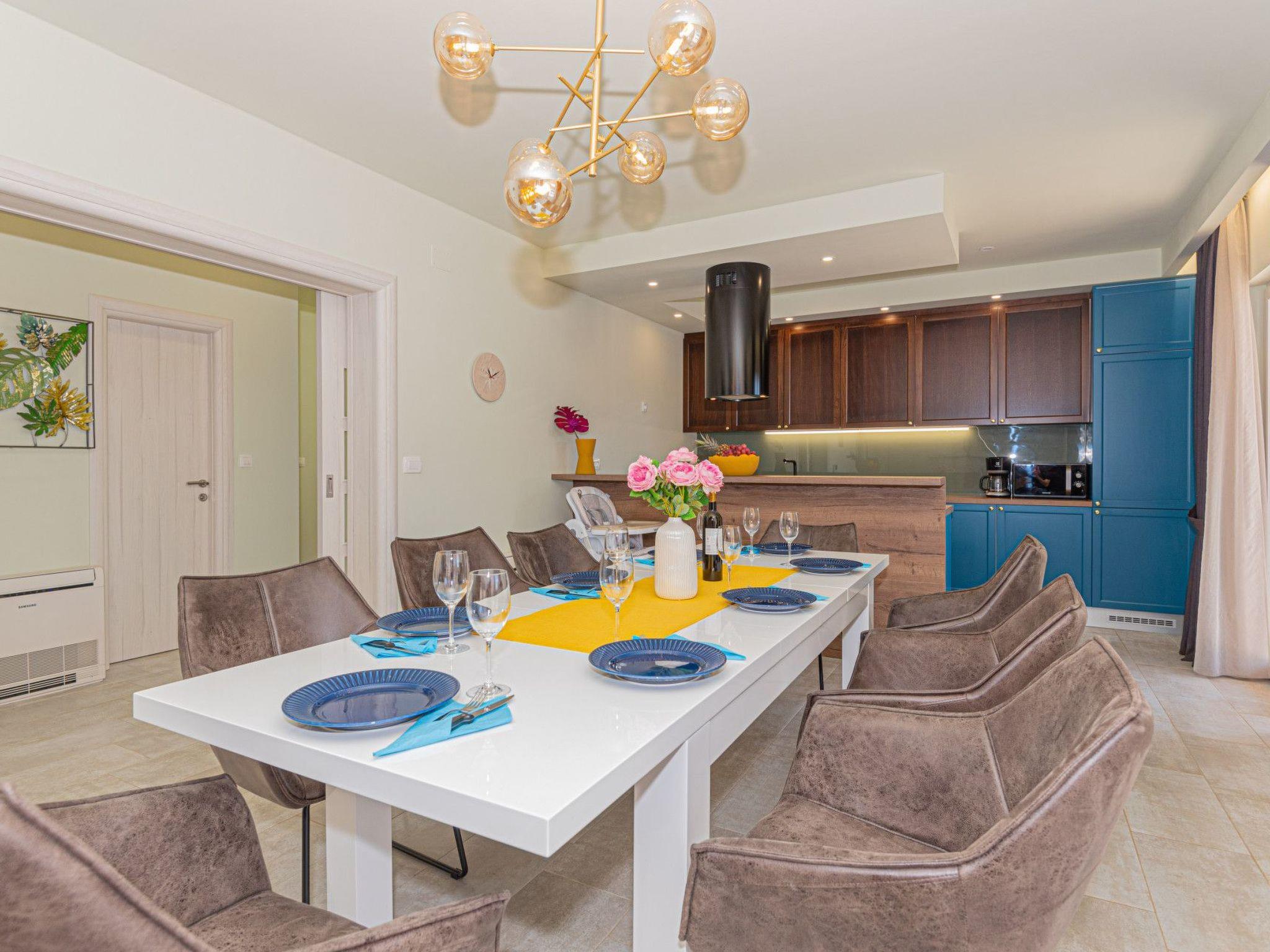 Villa Romansa can accommodate up to 9 guests, there are 5 bedrooms, 3 of them with double beds, and 2 bedrooms with single beds. On the ground floor of the villa, there is a spacious fully equipped kitchen, which is connected to a dining area. The cozy living room will offer you perfect relaxation by the fireplace.