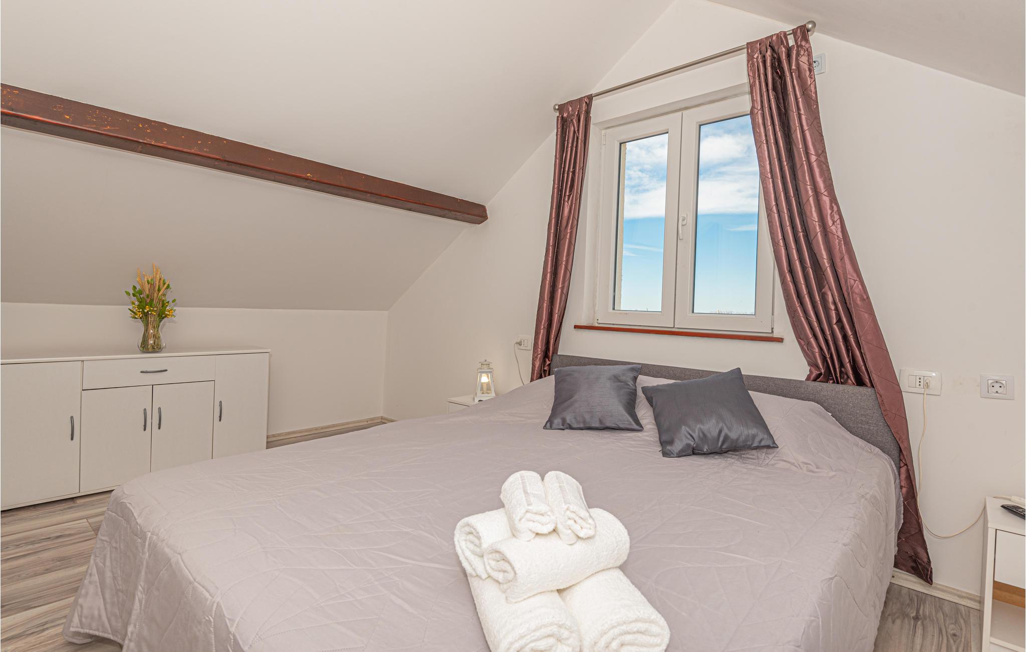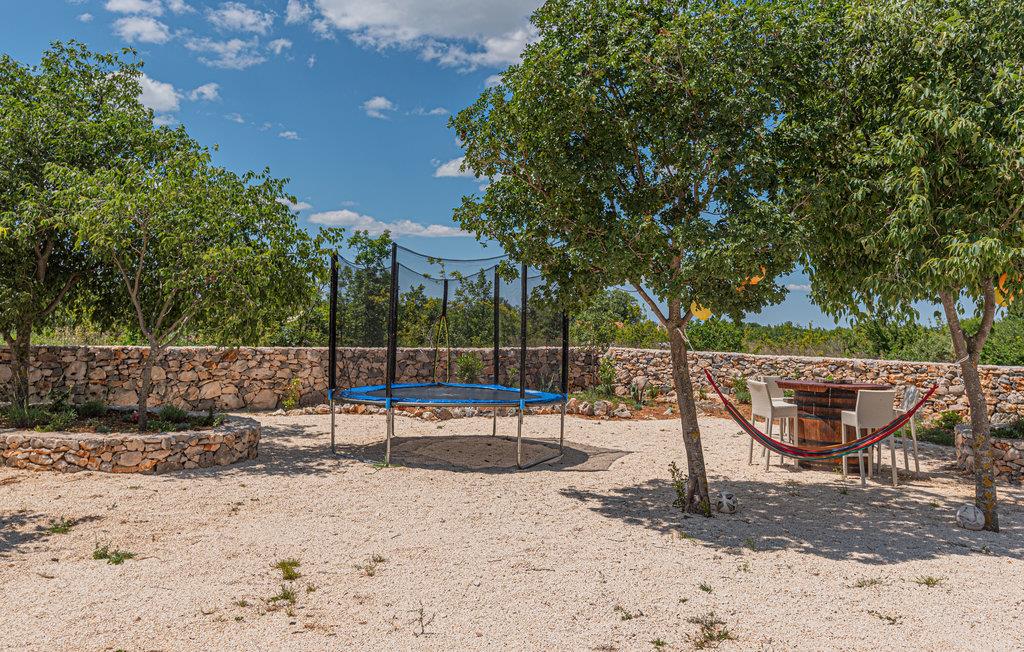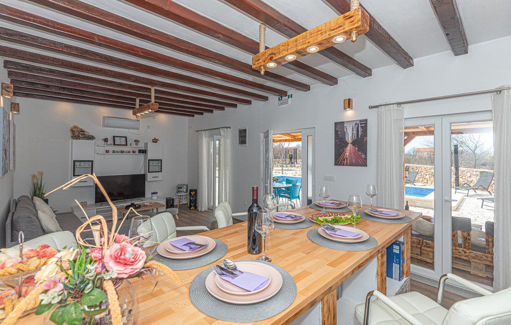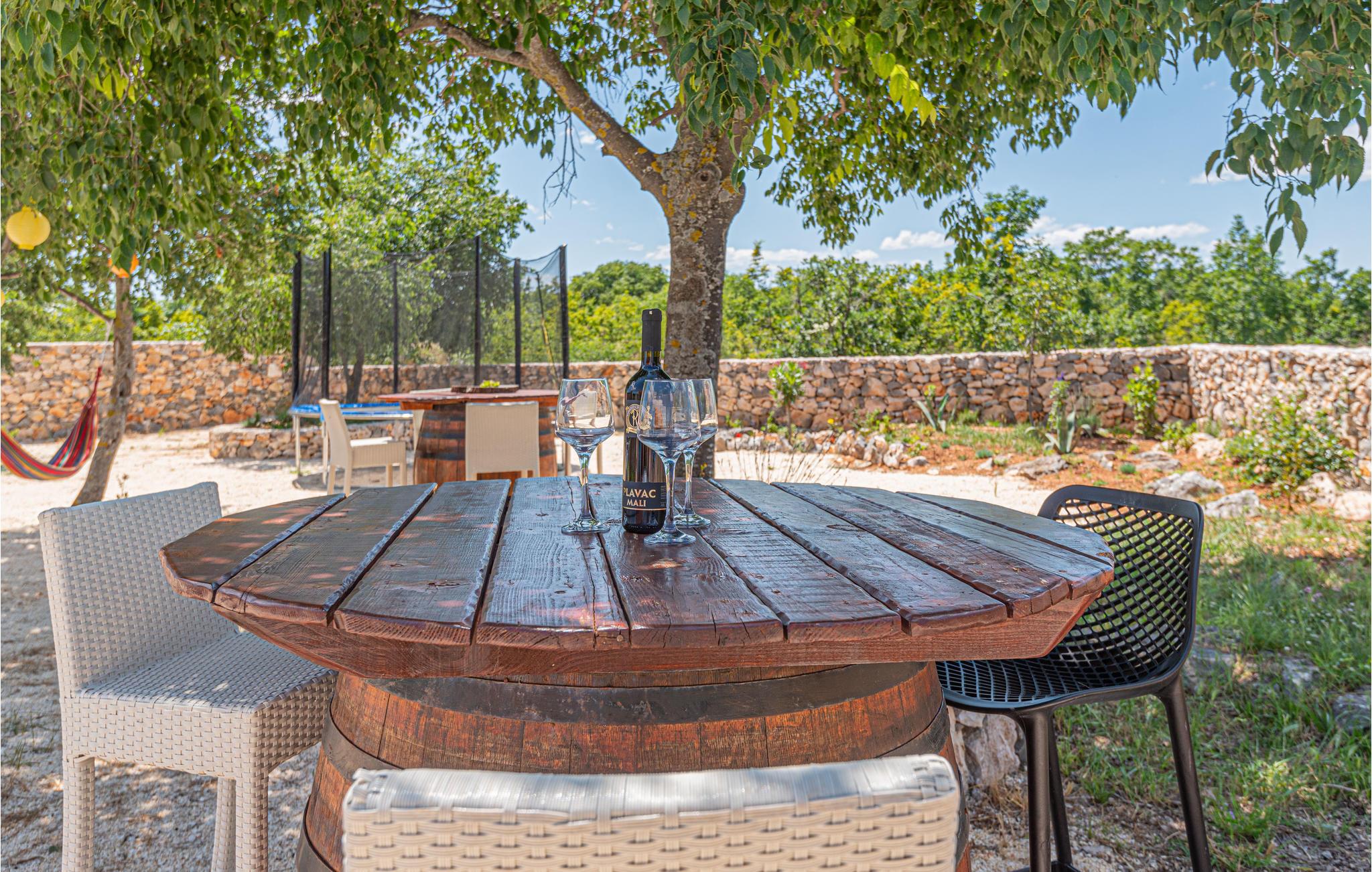 Tilbring en afslappende ferie i Drnis-Miljevci med jeres familie. Det smukke og moderne hus strækker sig over to etager og tilbyder jer og familien plads nok til at slappe af og tilbringe tid sammen. Stuen i stueetagen bliver jeres naturlige samlingspunkt og lægger op til at lave mad, lege og se en film. Herfra går I ud på den overdækkede terrasse, som er det ideelle sted for fælles måltider. Her kan I også grille om aftenen og hygge jer med at bade i poolen dagen lang.