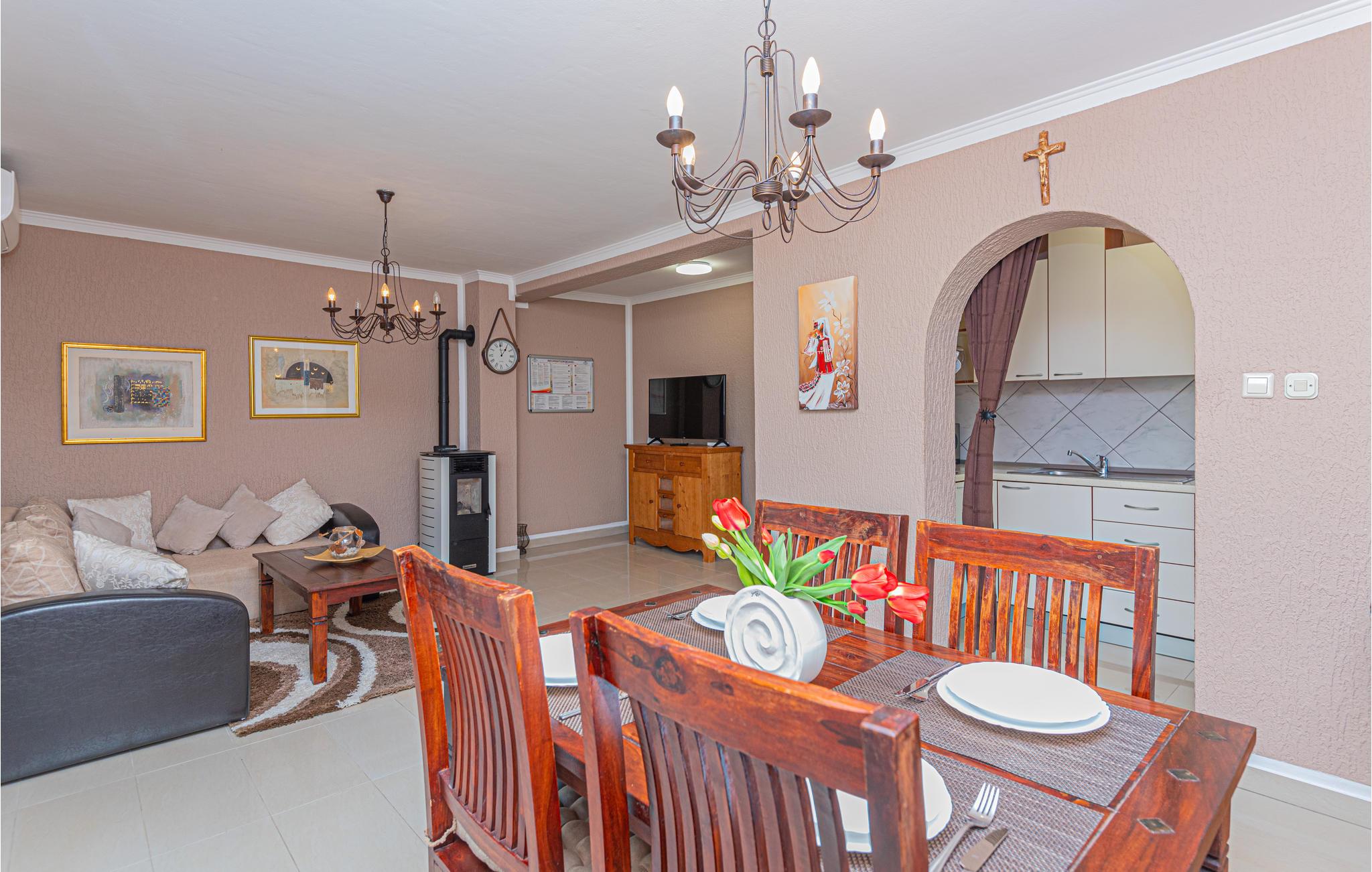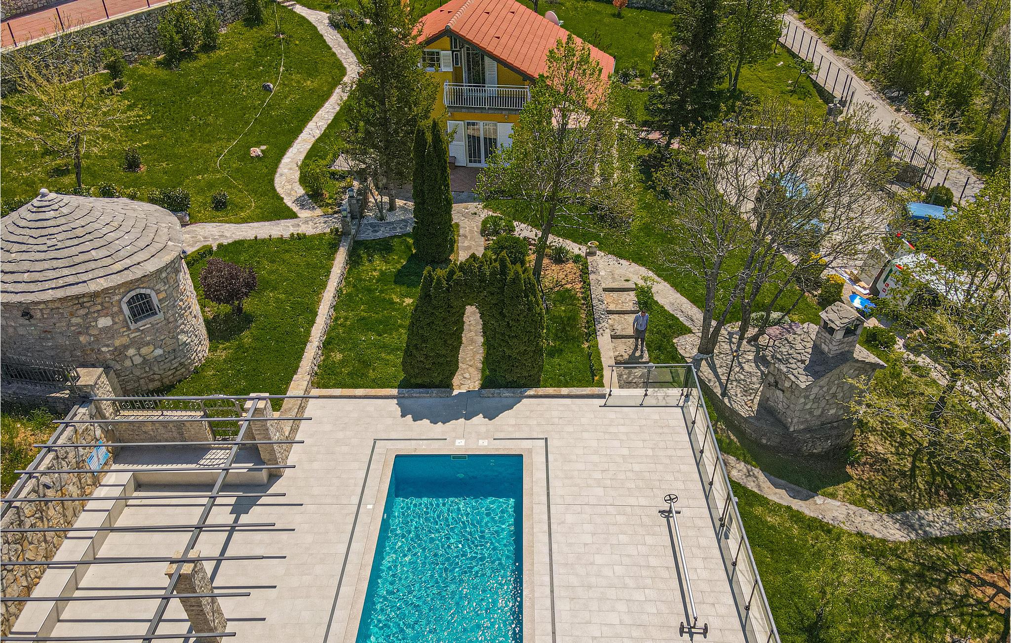 Dette smukt indrettede feriehus ligger i nærheden af byen Drniš, i den lille landsby Kijevo. På grunden er der en pool, hvor I finder forfriskning på varme sommerdage. I har også en grill til rådighed på grunden. Gå på opdagelse i området rundt om Kiew og nyd den skønne natur i det dalmatinske bagland. Besøg også byen Vrlika, som byder mange attraktioner: Fort Prozor, Lelas vindmøller, Balecki-broen og kilden af floden Cetina, der ligger i Civljane, kun få kilometer fra byen Vrlika.