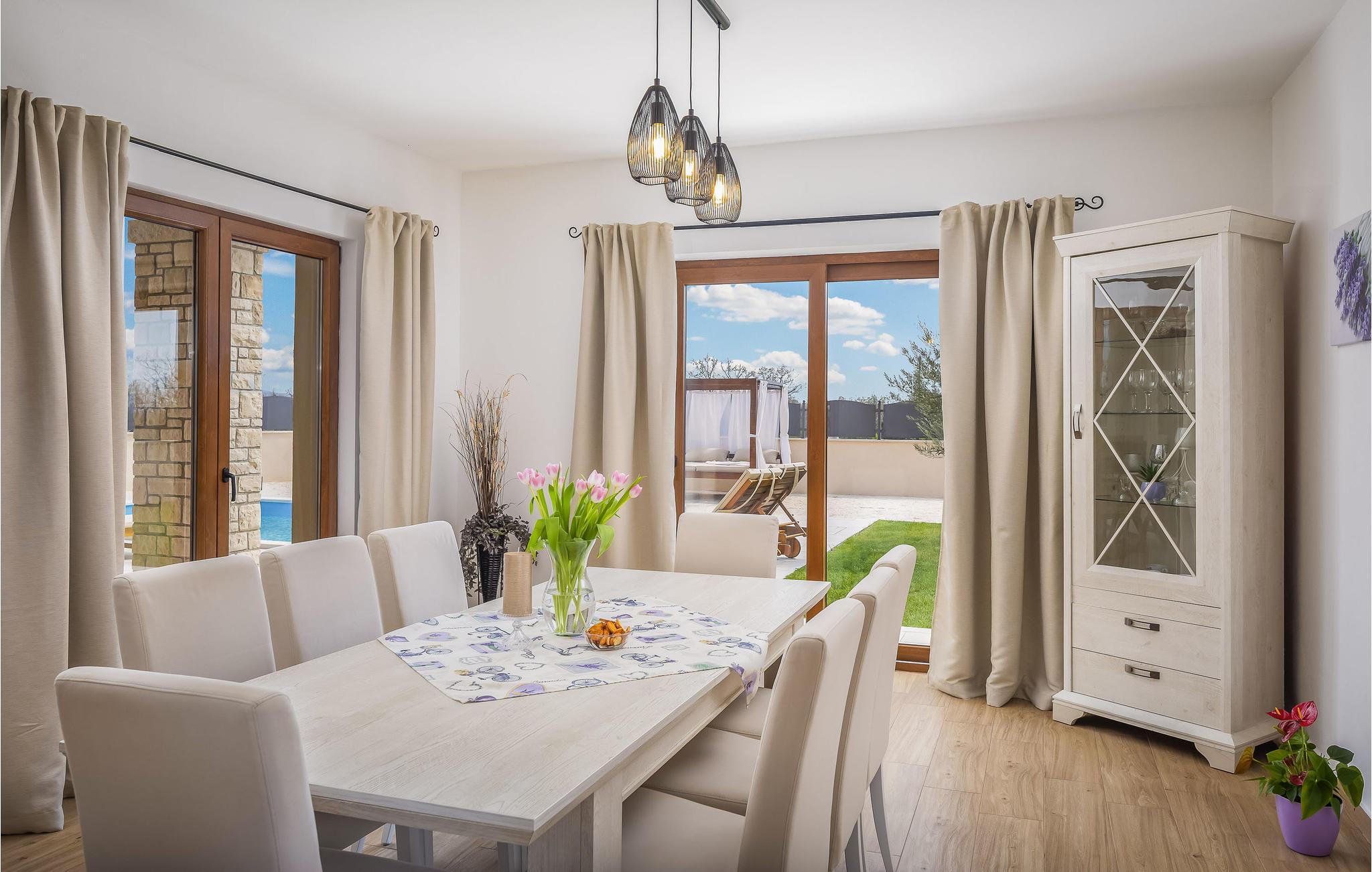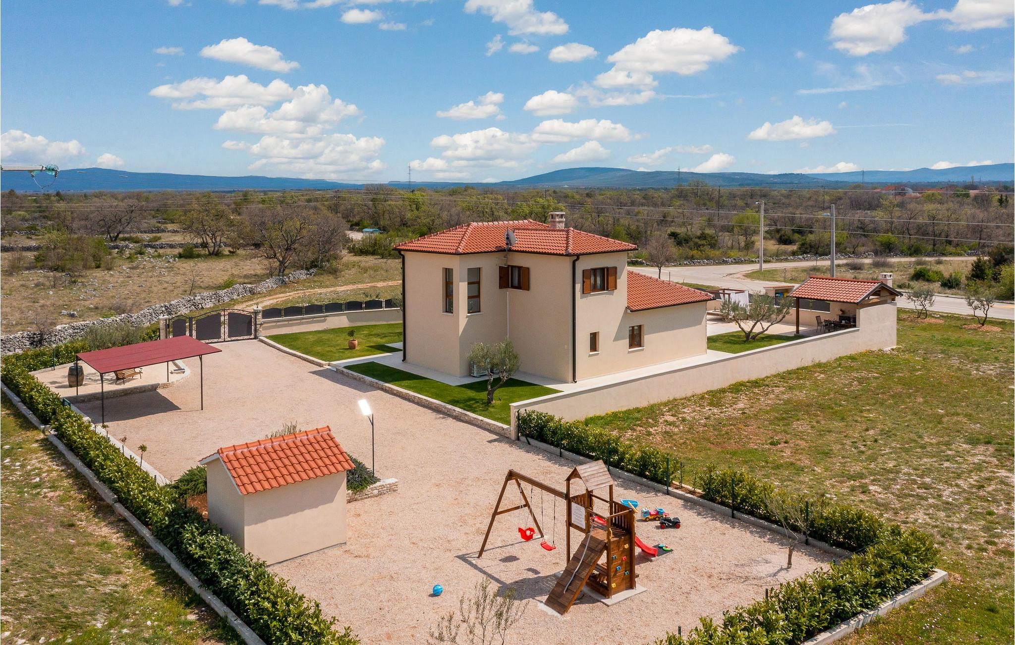 Nyd den smukke have og gårdspladsen, hvor I finder en rummelig pool, der er perfekt til den nødvendige forfriskning i sommervarmen, og tilbring hyggelige øjeblikke med jeres kære over et glas god vin. I umiddelbar nærhed er Krka National Park, en unik perle af naturlig skønhed, der pryder området. Oplev den frodige fauna og flora og lad jer forkæle med charmen ved syv utroligt smukke travertinfald.