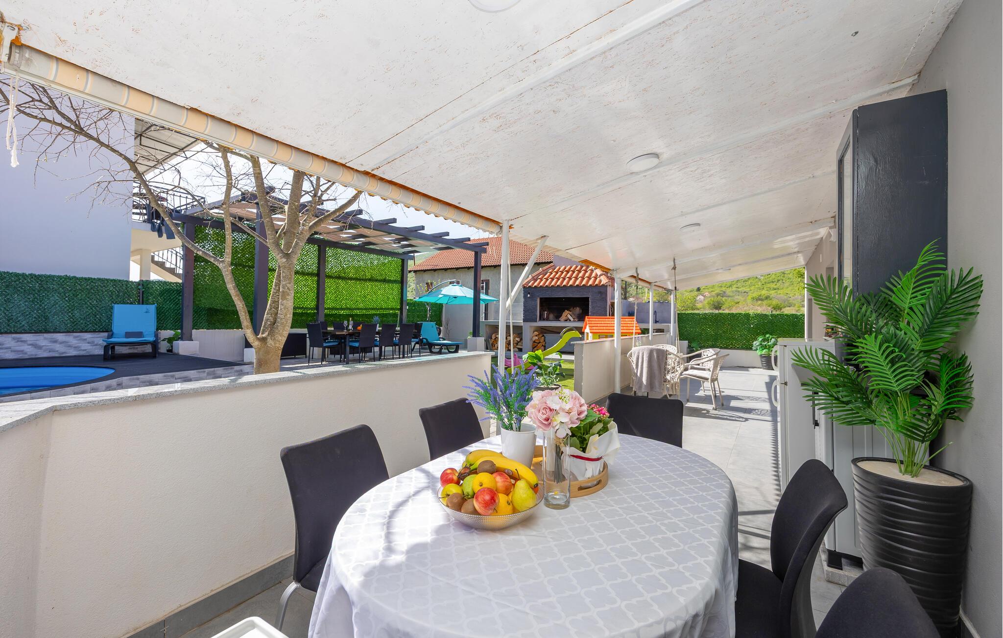 Nyd ferien i dette komfortable feriehus med pool.