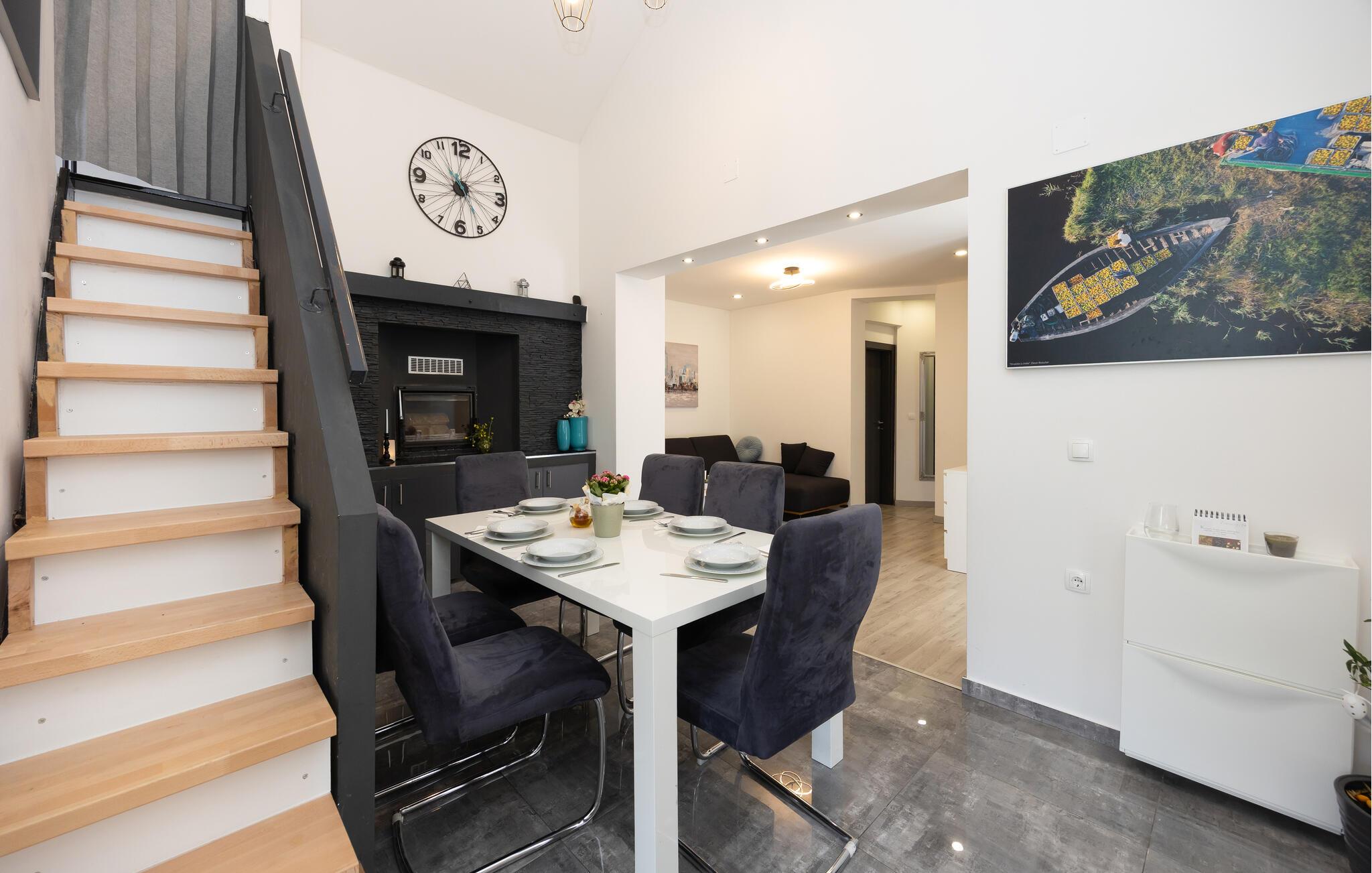 Dette moderne hus byder jer velkommen i en smuk beliggenhed i kystens bagland og danner den perfekte ramme om en uforglemmelig pause sammen med jeres kære. I de minimalistisk-elegante rum kan I virkelig nyde tiden sammen. Slap af i stilfulde omgivelser, og glæd jer til hyggelige aftener med fælles måltider.