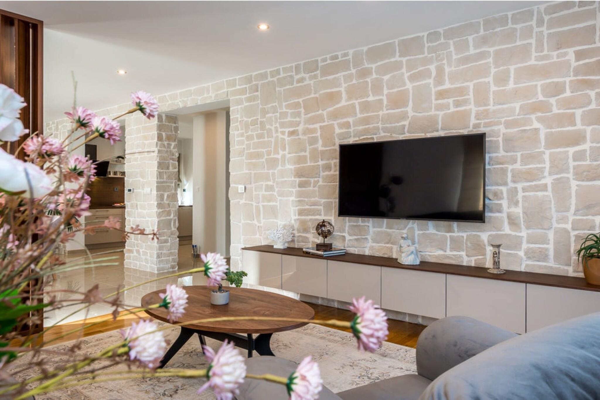 ?Villa Branka in Drniš, Šibenik-Knin County, Croatia, is a serene countryside retreat offering modern amenities amidst natural beauty. Guests have praised Villa Branka for its cleanliness, comfort, and tranquil setting. The property's proximity to natural attractions and the hospitality of the hosts are frequently highlighted. Note: Private parking is available, and a reservation is not required. A baby cot is available on request. Wi-Fi is available throughout the property. Pets are allowed. This five-bedroom can accommodate up to ten guests. It features a satellite TV and is combined with a sofa. The private bathroom is equipped with a shower and toilet. Thanks to its excellent location, everything you'll need for your vacation is just a short walk from the property. Grocery stores, cafes, restaurants—everything is within a 1.00 km radius. The airport is 60 km away from the property.