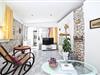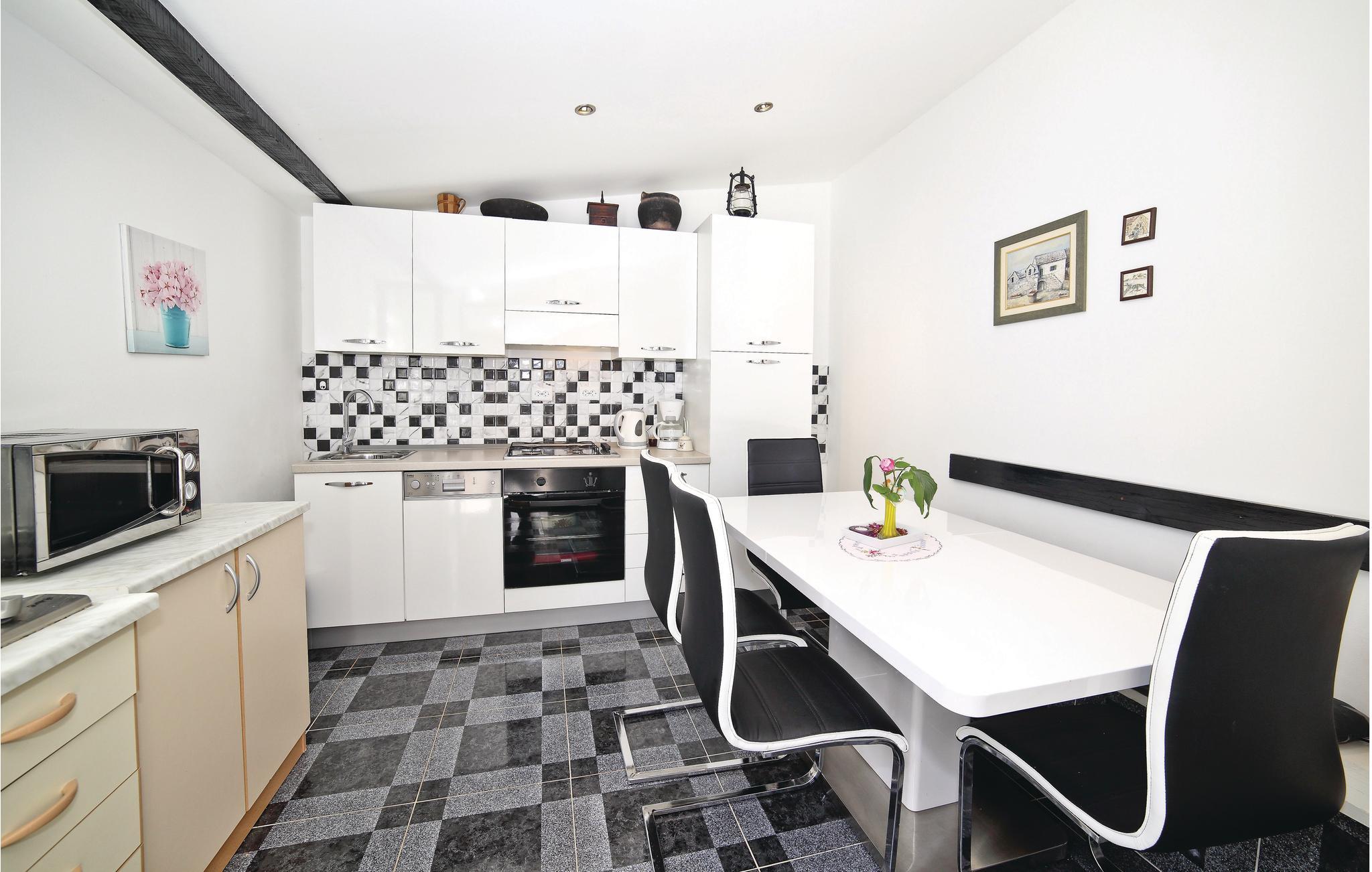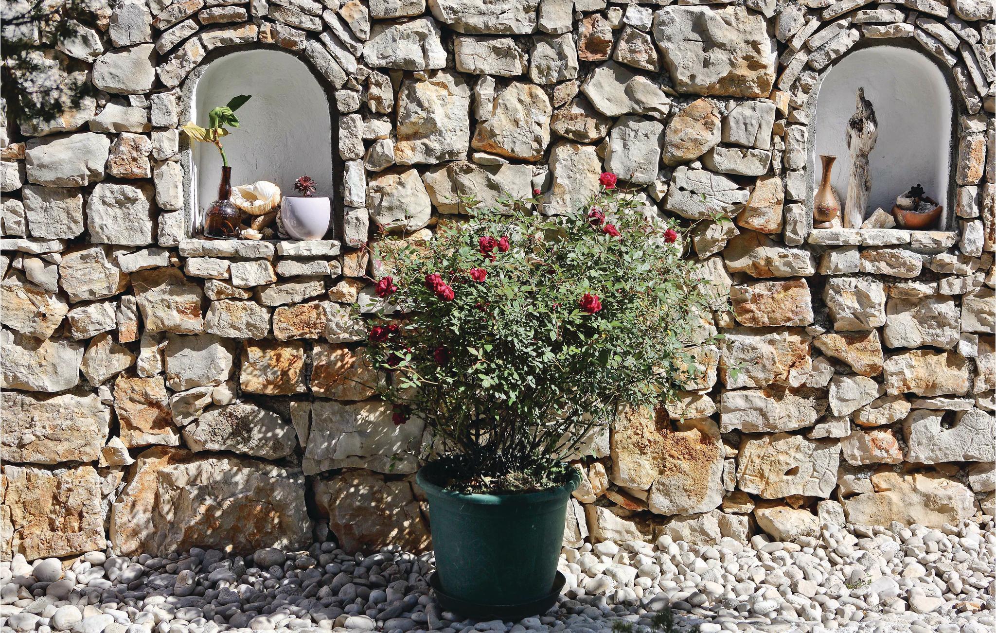 På den skønne ø Drvenik Mali ligger dette charmerende feriehus, personligt og kærligt indrettet, helt nedi de små detaljer. Det ligger i Kuknara-bugten, omgivet af hav og strand. I huset er der tre enheder. I én af dem er der et stort centralt køkken med spisestue, ved siden af enheden med stue og den tredje indeholder sove- og badeværelse. Den grønne have indbyder til solbad og afslapning. En færge forbinder øen med Trogir, med mange seværdigheder, fx katedralen, fæstningen Kamerlengo og strandpromenaden. Gå ture på den lille ø og nyde udsigten over det blå, blinkende Adriaterhav og det smukke olvivenlunde hvis træer snor sig i interessante former.