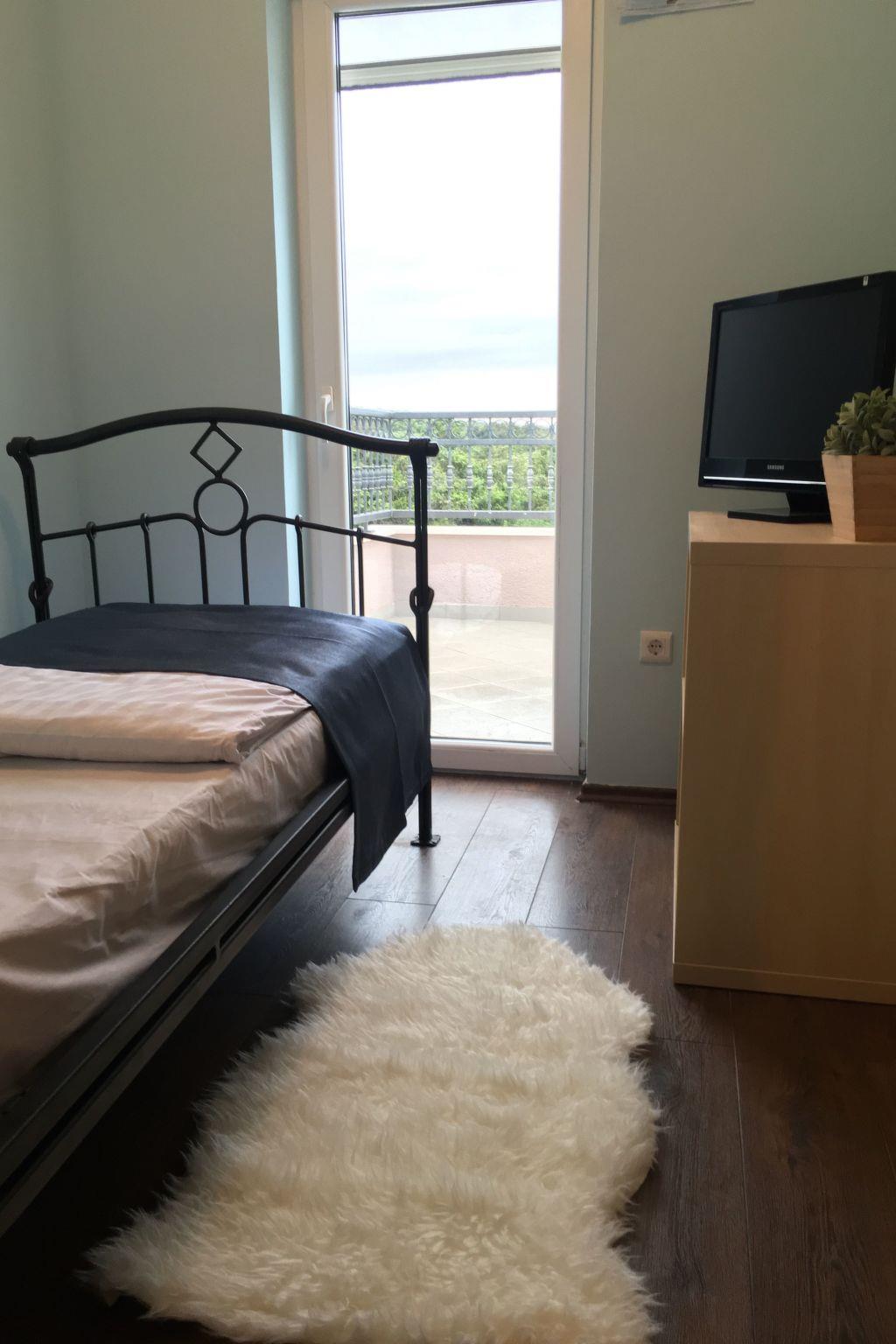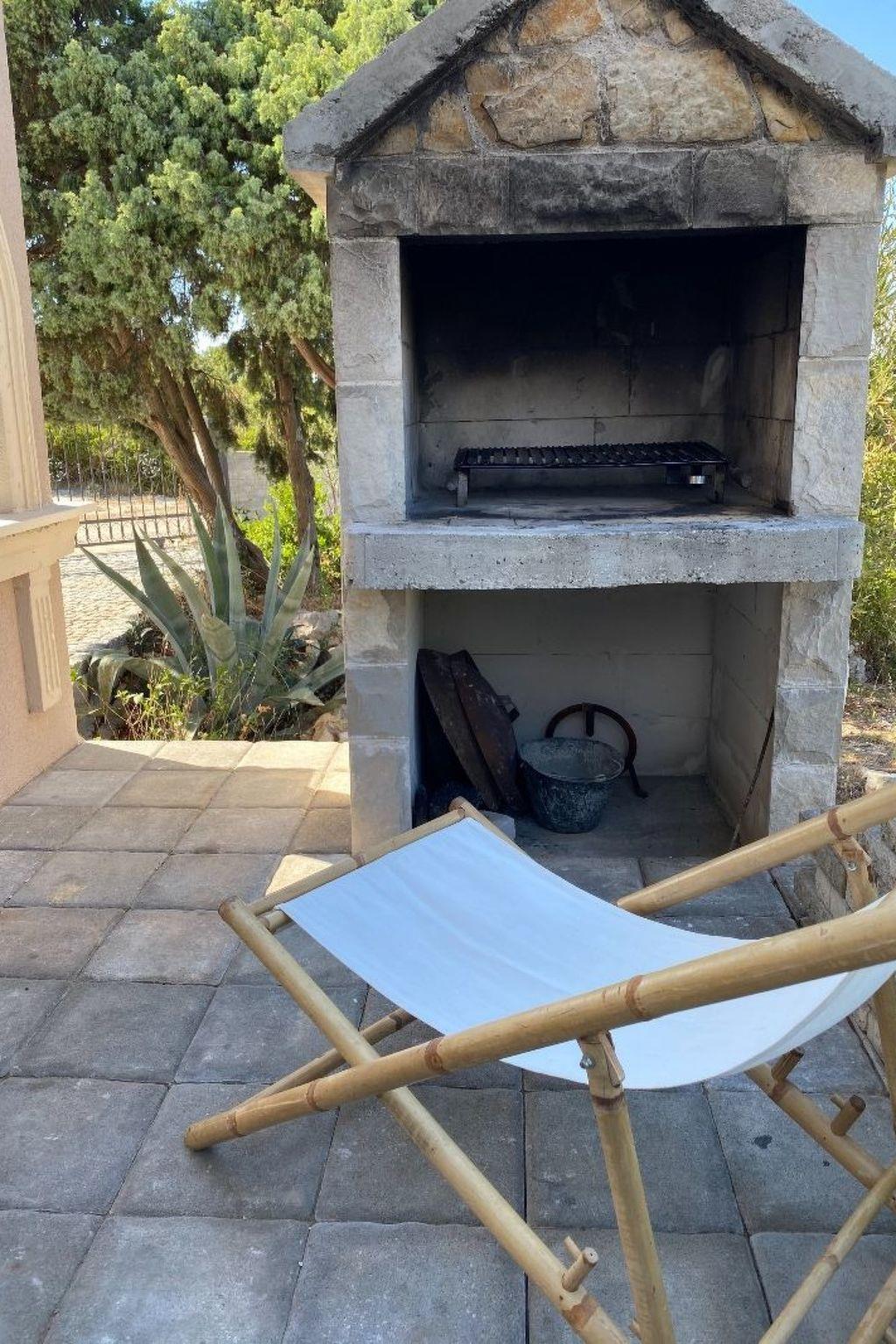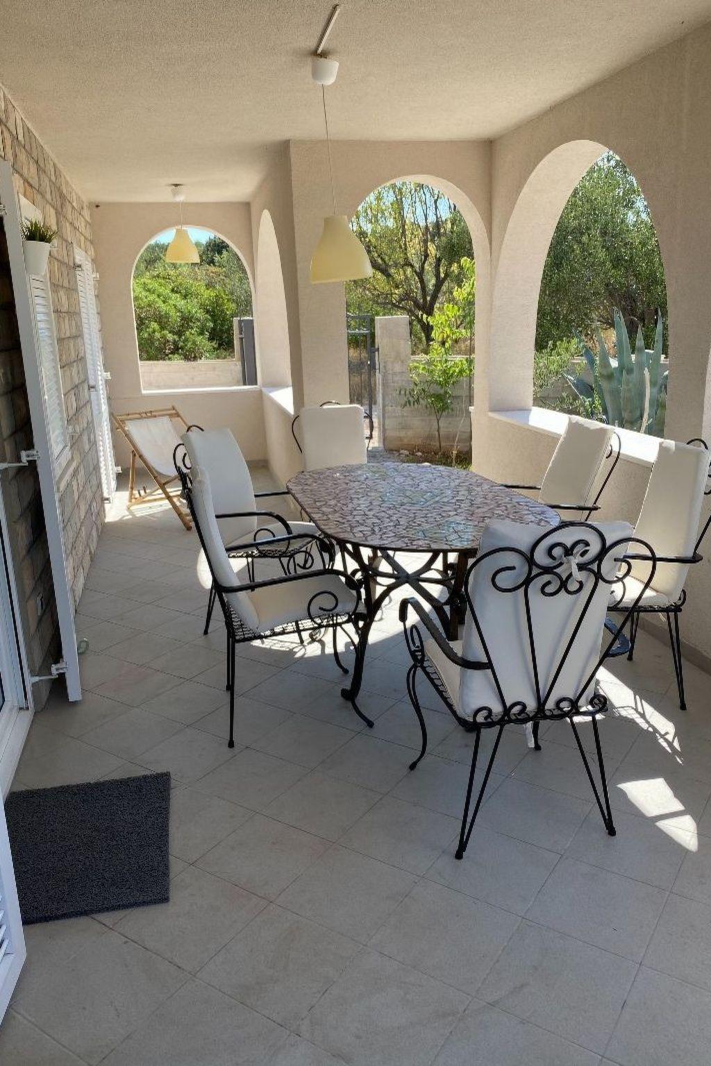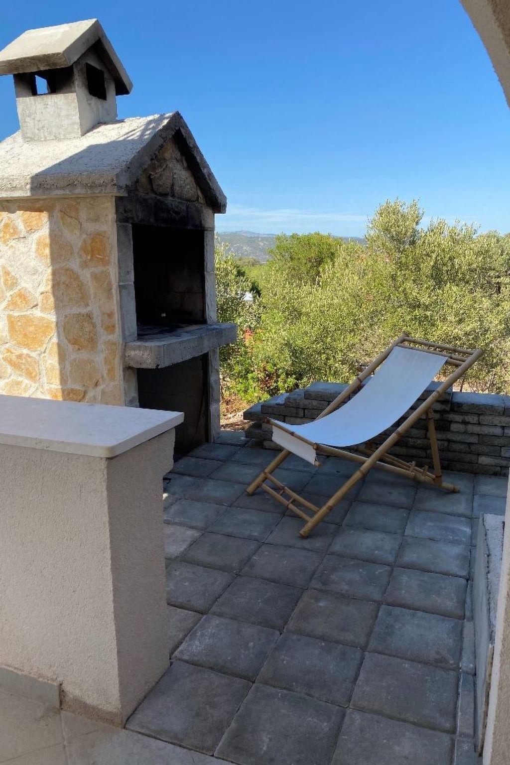 The covered, extensive terrace affords a sea view and provides garden furniture, two deckchairs and a grill. Six people can sit together at the large table or grill in the evening. The bedroom balconies are furnished with deckchairs and have a beautiful view of the Adriatic. The site with two parking spaces is fenced and therefore suitable for children, as well as dogs.