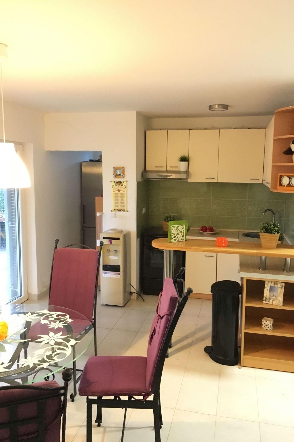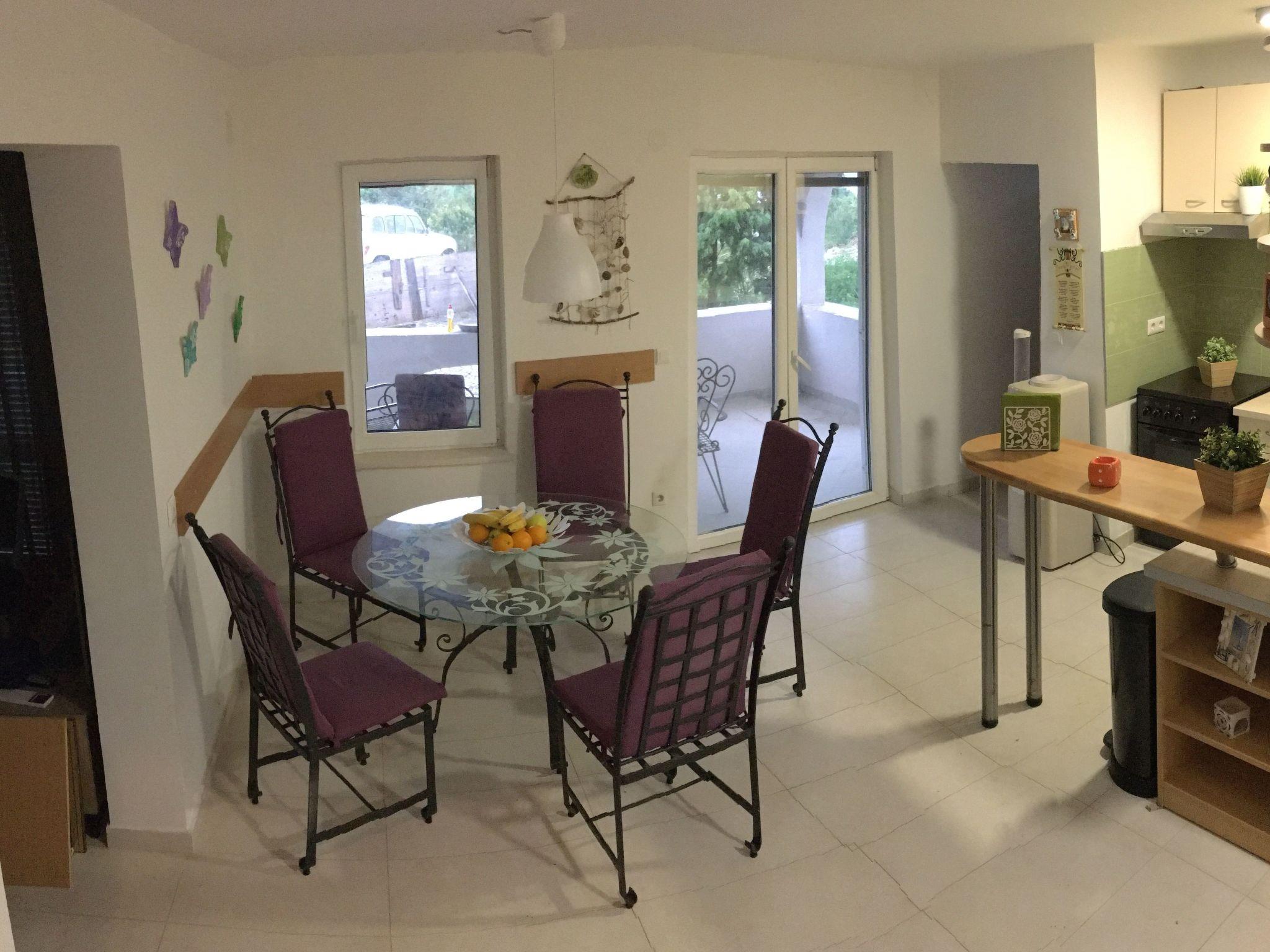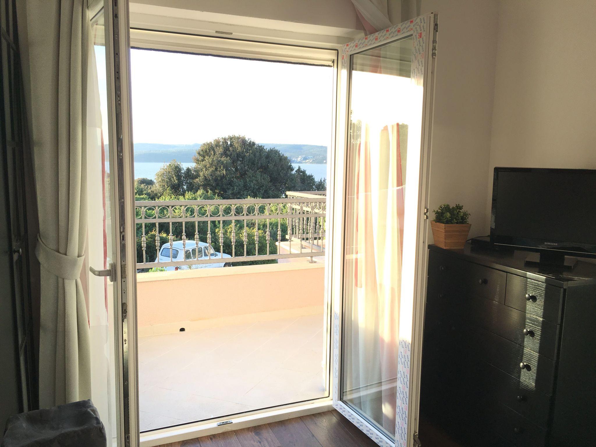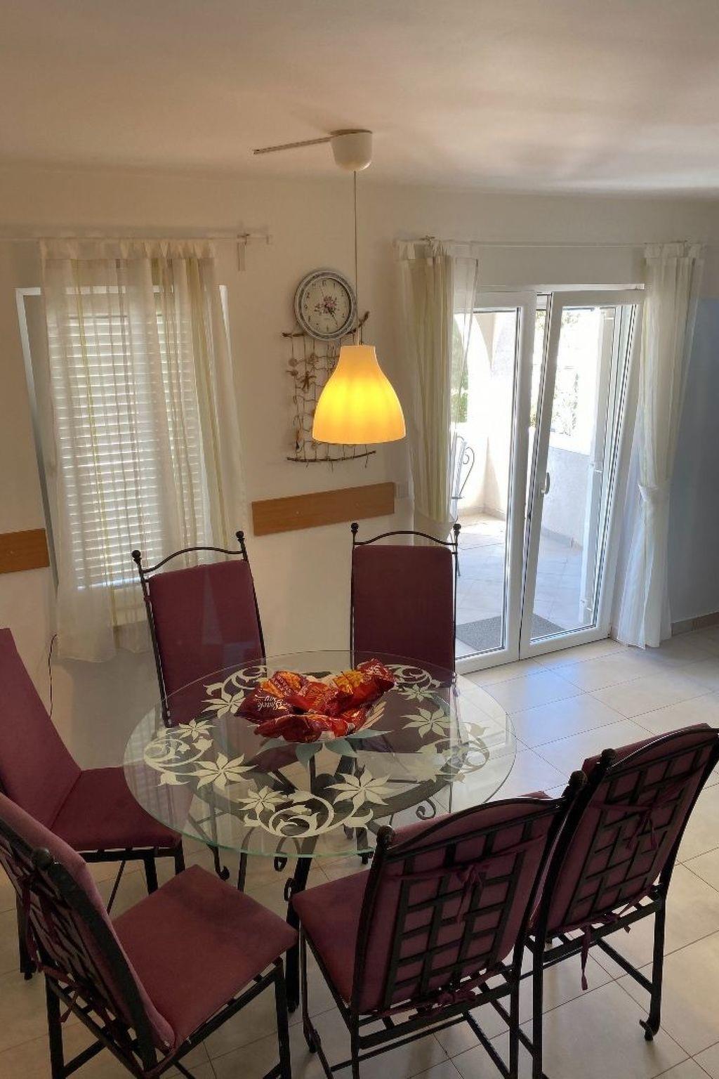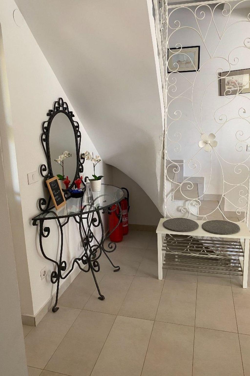The covered, extensive terrace affords a sea view and provides garden furniture, two deckchairs and a grill. Six people can sit together at the large table or grill in the evening. The bedroom balconies are furnished with deckchairs and have a beautiful view of the Adriatic. The site with two parking spaces is fenced and therefore suitable for children, as well as dogs.