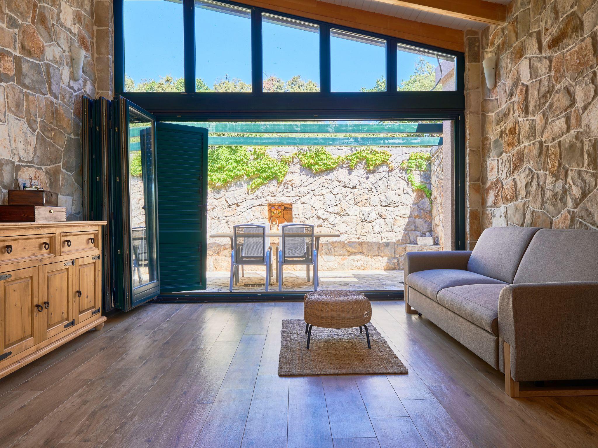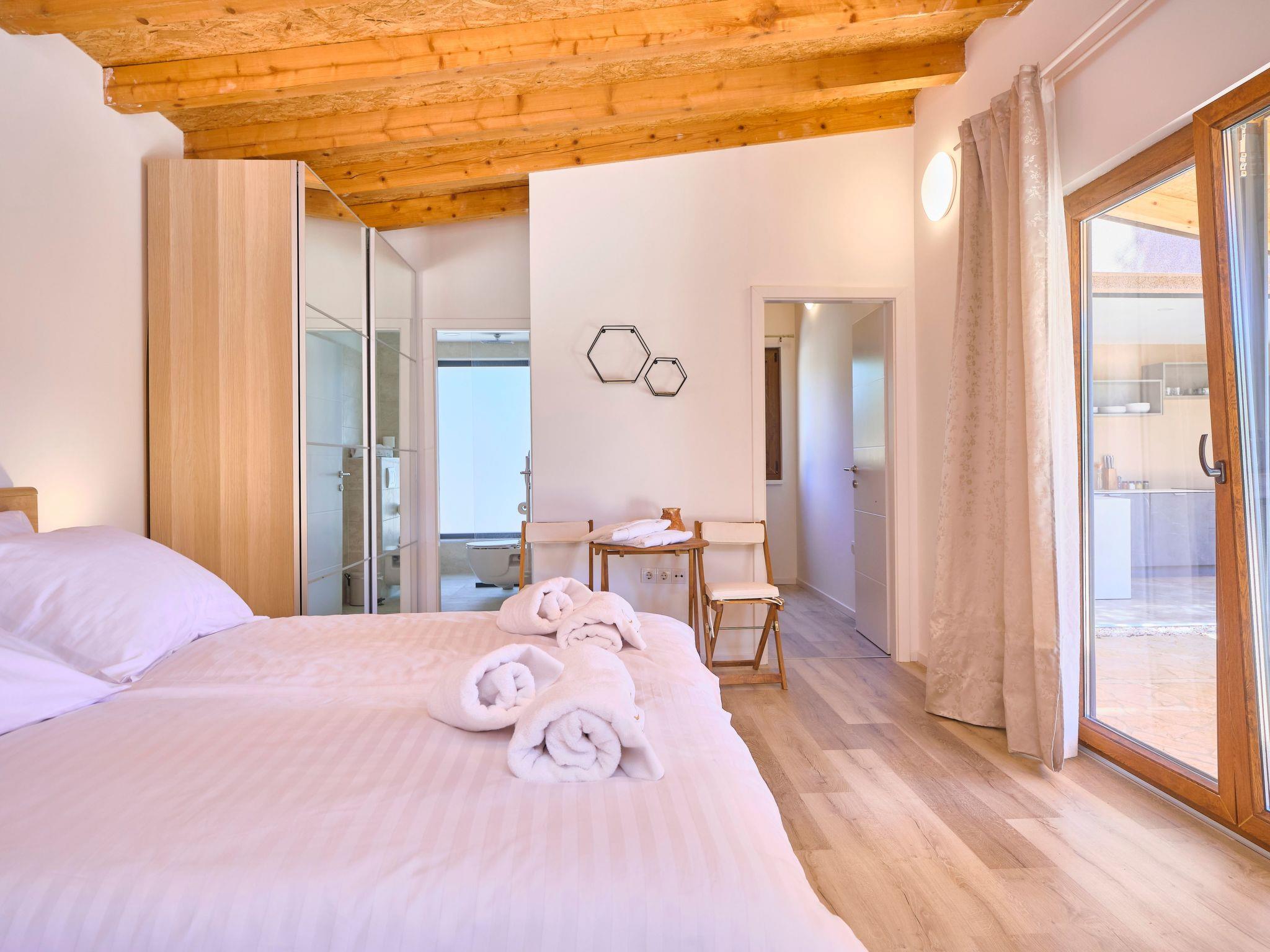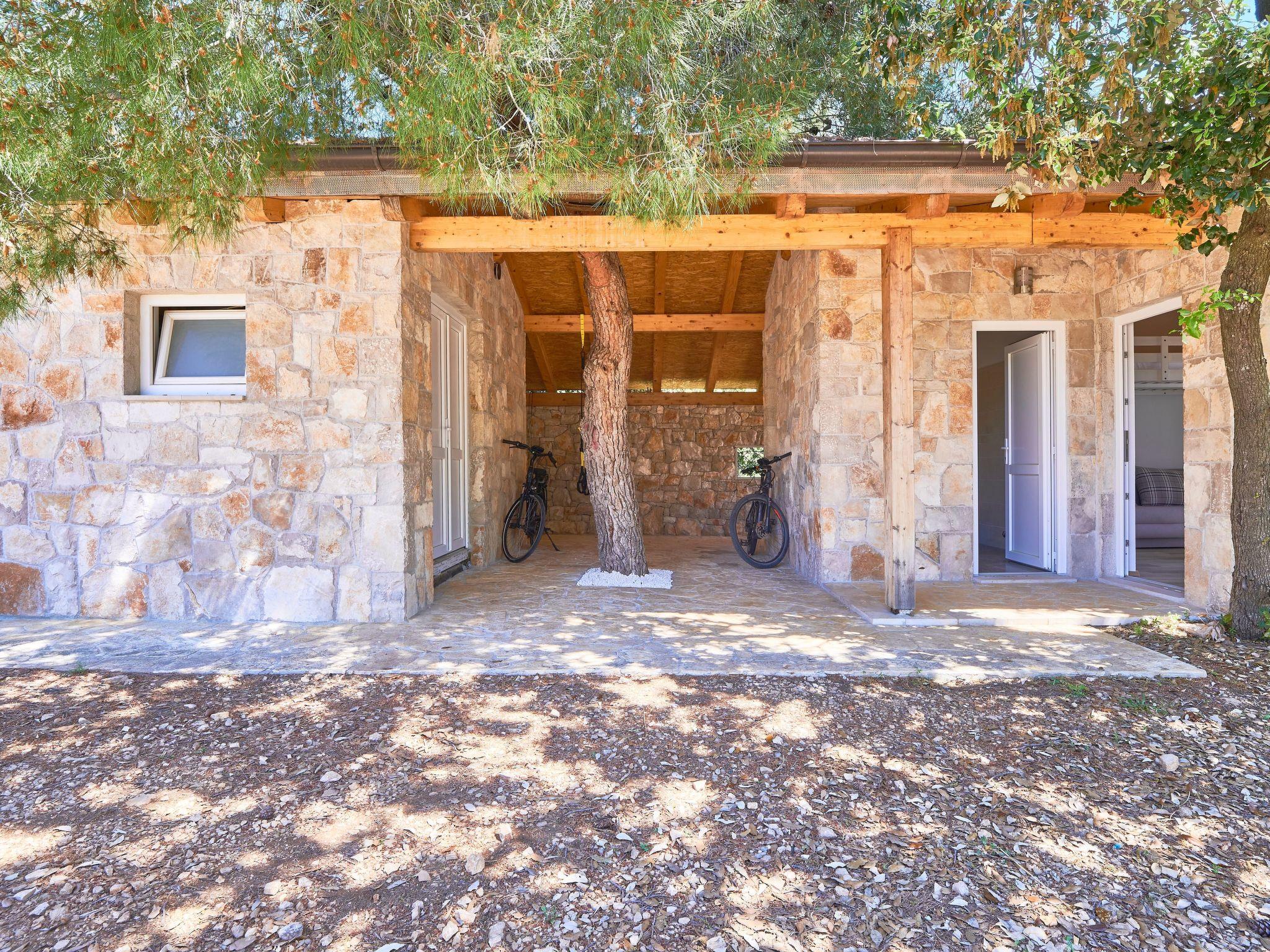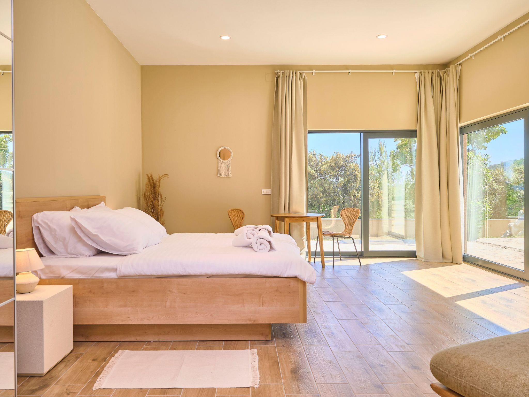 Four houses have one bedroom each and the fifth house has two bedrooms, all of which are king beds. Two of the houses come with two full bathrooms each, while the other two have one full bathroom each. Every bathroom is equipped with a hair dryer, bathrobe, towels, and slippers. Two of the houses have private, fully equipped kitchens, and the other two share a summer kitchen. Additionally, one house includes a covered outdoor gym.. All of the houses have free wifi, air conditioning, free and private parking spots, and the possibility of grocery delivery.