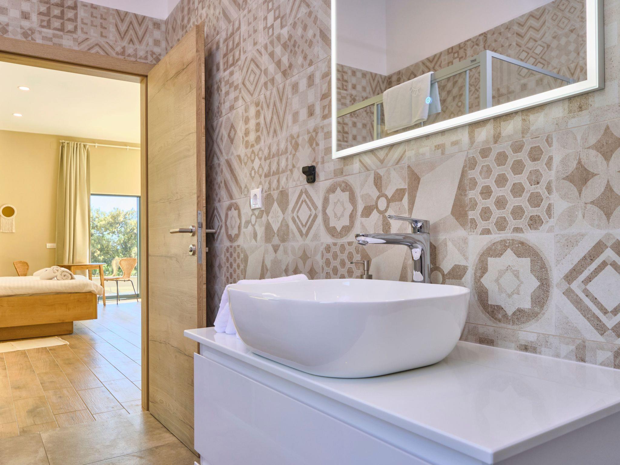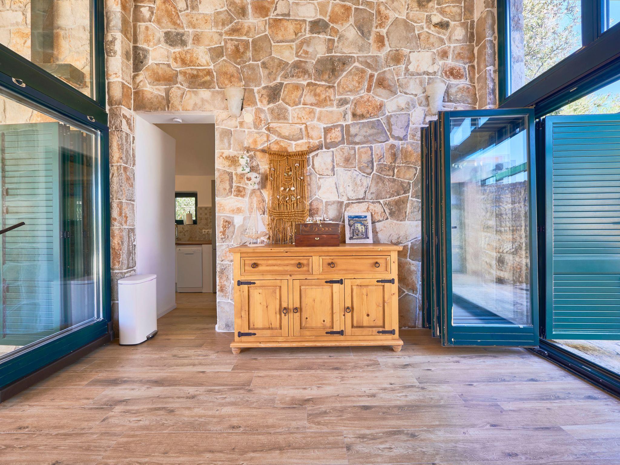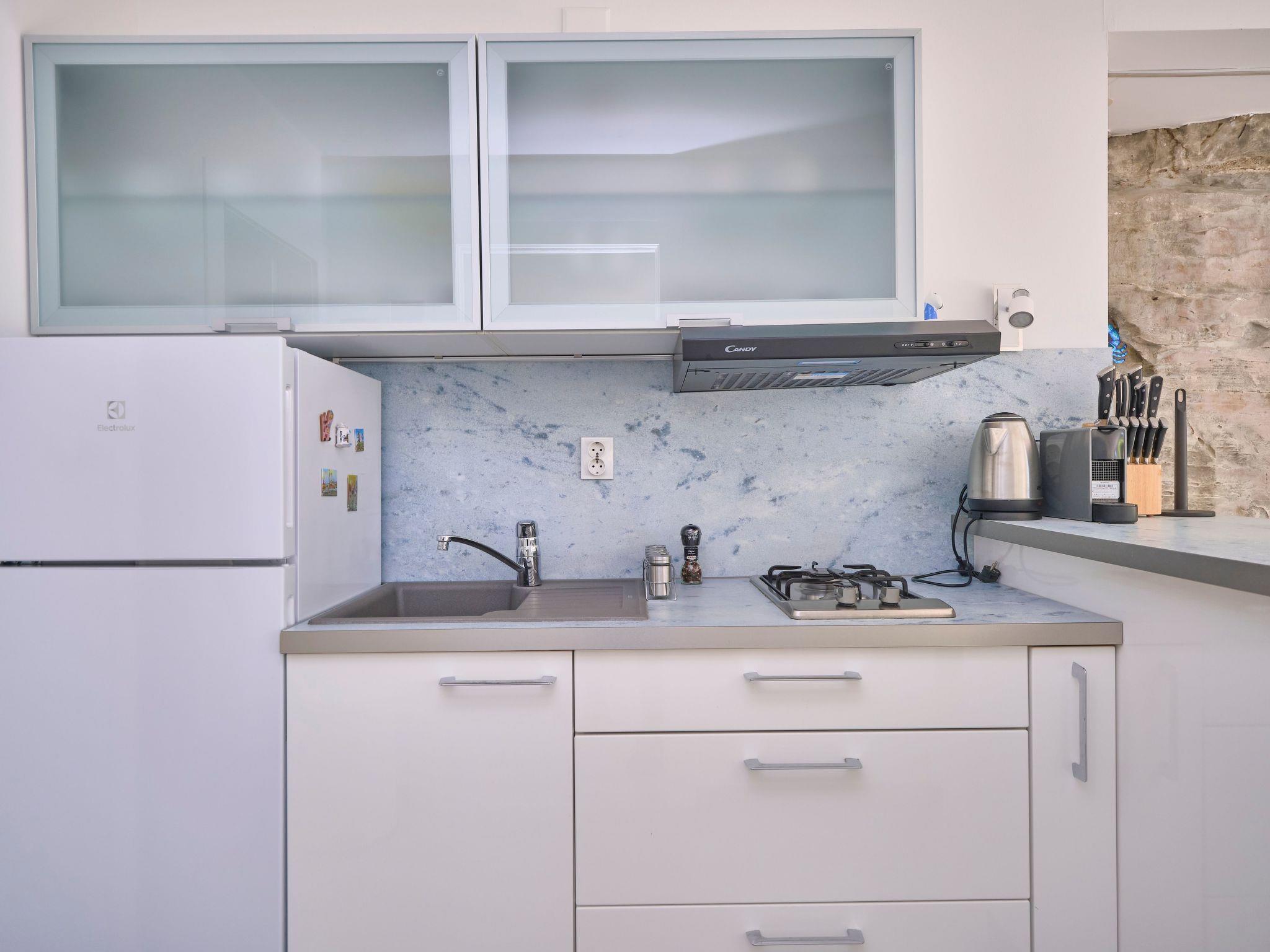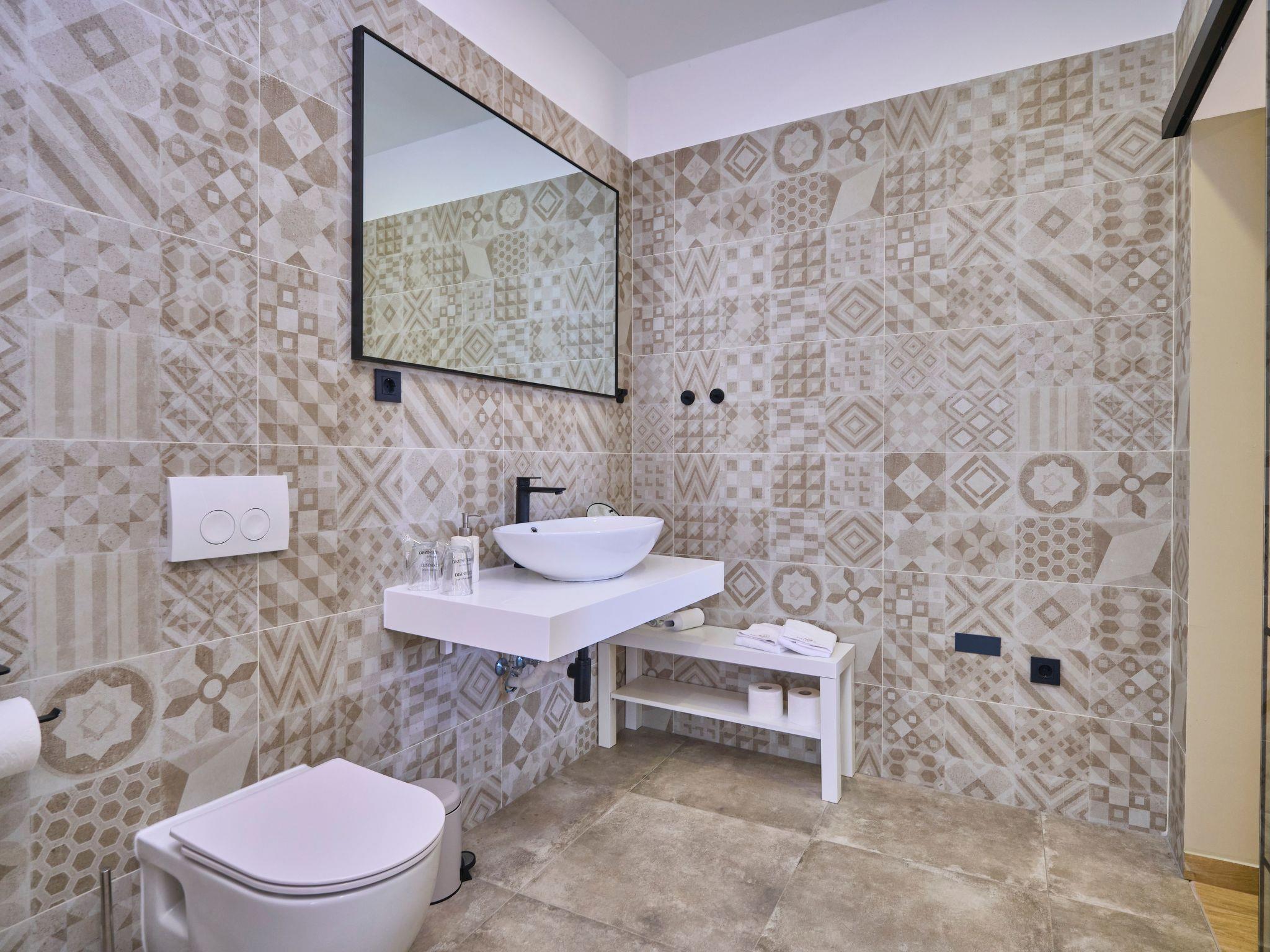 Four houses have one bedroom each and the fifth house has two bedrooms, all of which are king beds. Two of the houses come with two full bathrooms each, while the other two have one full bathroom each. Every bathroom is equipped with a hair dryer, bathrobe, towels, and slippers. Two of the houses have private, fully equipped kitchens, and the other two share a summer kitchen. Additionally, one house includes a covered outdoor gym.. All of the houses have free wifi, air conditioning, free and private parking spots, and the possibility of grocery delivery.