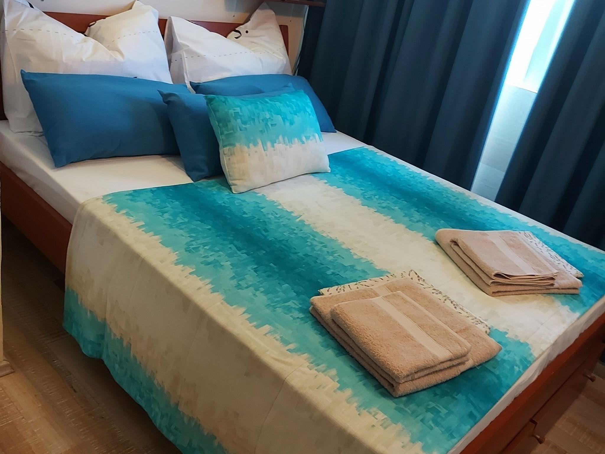 Haus bietet Platz für 5 Gäste. Die Betten sind in Schlafzimmern, die es 3 gibt, innerhalb einer Gesamtfläche von 60m2, angeordnet. Die Gäste haben eine eigene Terrasse zur Verfügung, auf der sie in warmen Sommernächten genießen können. Das Haus bietet Meerblick. Für vollen Genuss und Entspannung gibt es einen privaten Grill für Gäste dieser Unterkunft. In der Unterkunftseinheit besteht die Möglichkeit des Mitbringens von Haustieren, und die Dienstleistung ist im Preis der Unterkunft enthalten. IM PREIS INBEGRIFFEN: Kurtaxe, Endreinigung, Klimatisierung, Parkplatz, Internet, Haustiere, Bügeleisen, Bügelbrett, Föhn. VERBINDLICHE ZUSÄTZLICHE KOSTEN: Aufzahlung für Kurzaufenthalte (prozentualer Zuschlag pro Nächtigungsanzahl: 30% - 1, 20% - 2, 10% - 3). Die Verfügbarkeit zusätzlicher Dienstleistungen in Ihrem reservierten Termin und die Preise derselben (falls nicht aufgeführt) müssen im Voraus überprüft werden. Zusätzliche Dienstleistungen die in der Zahlungsaufforderung nicht aufgeführt sind werden direkt beim Vermieter bezahlt, angenommen der Gast nutzt auch diese.