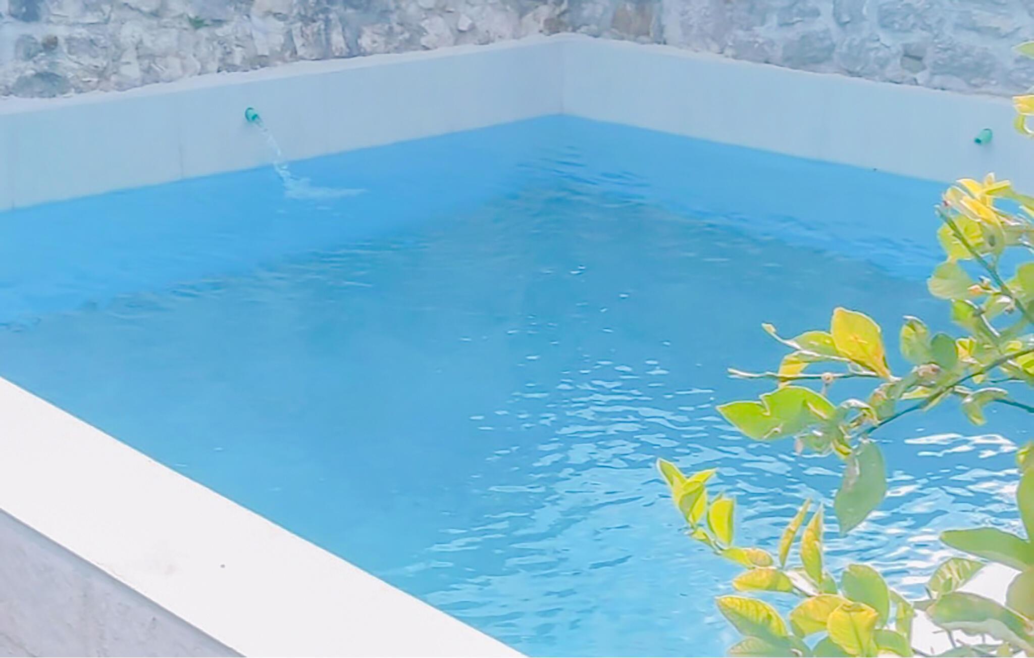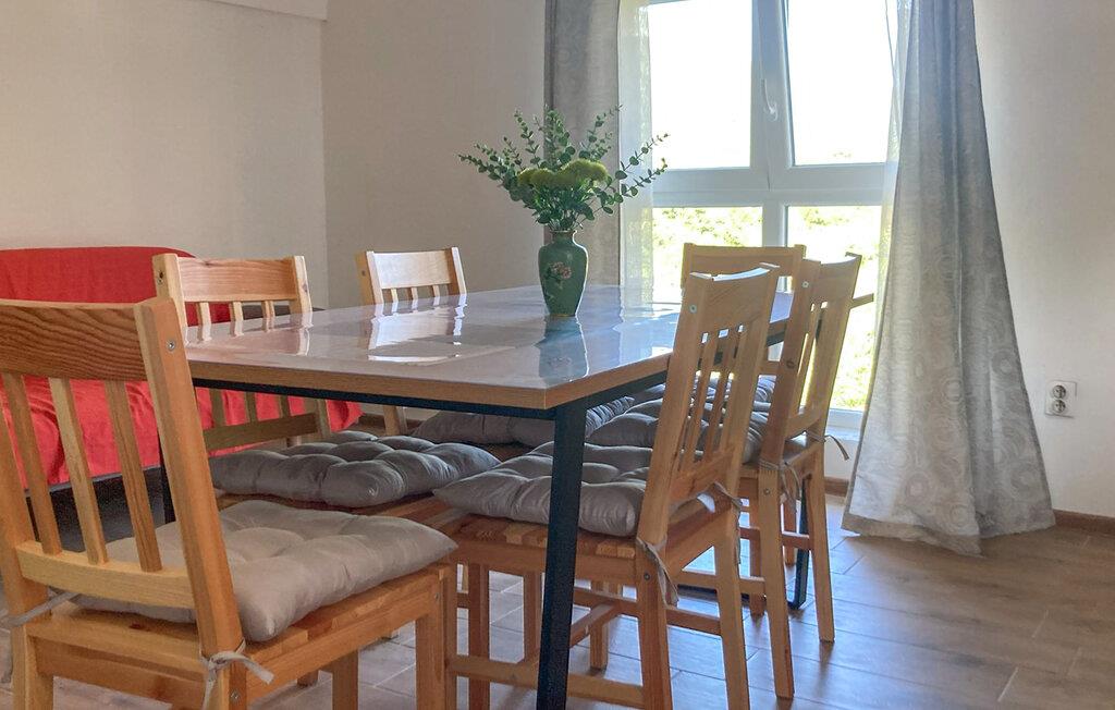 Jeres ferielejlighed i Gruda tilbyder jer ro, komfort og en perfekt base for uforglemmelige oplevelser. Her kan I nyde naturens skønhed og slappe af i jeres hyggelige feriebolig. Start dagen med et spring i den private pool, der er omgivet af en rustik stenmur, og nyd solen på de komfortable liggestole.