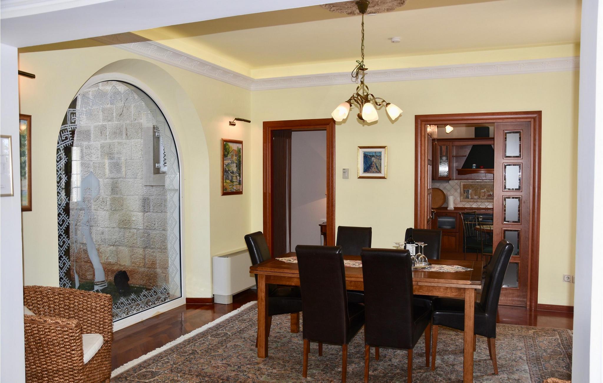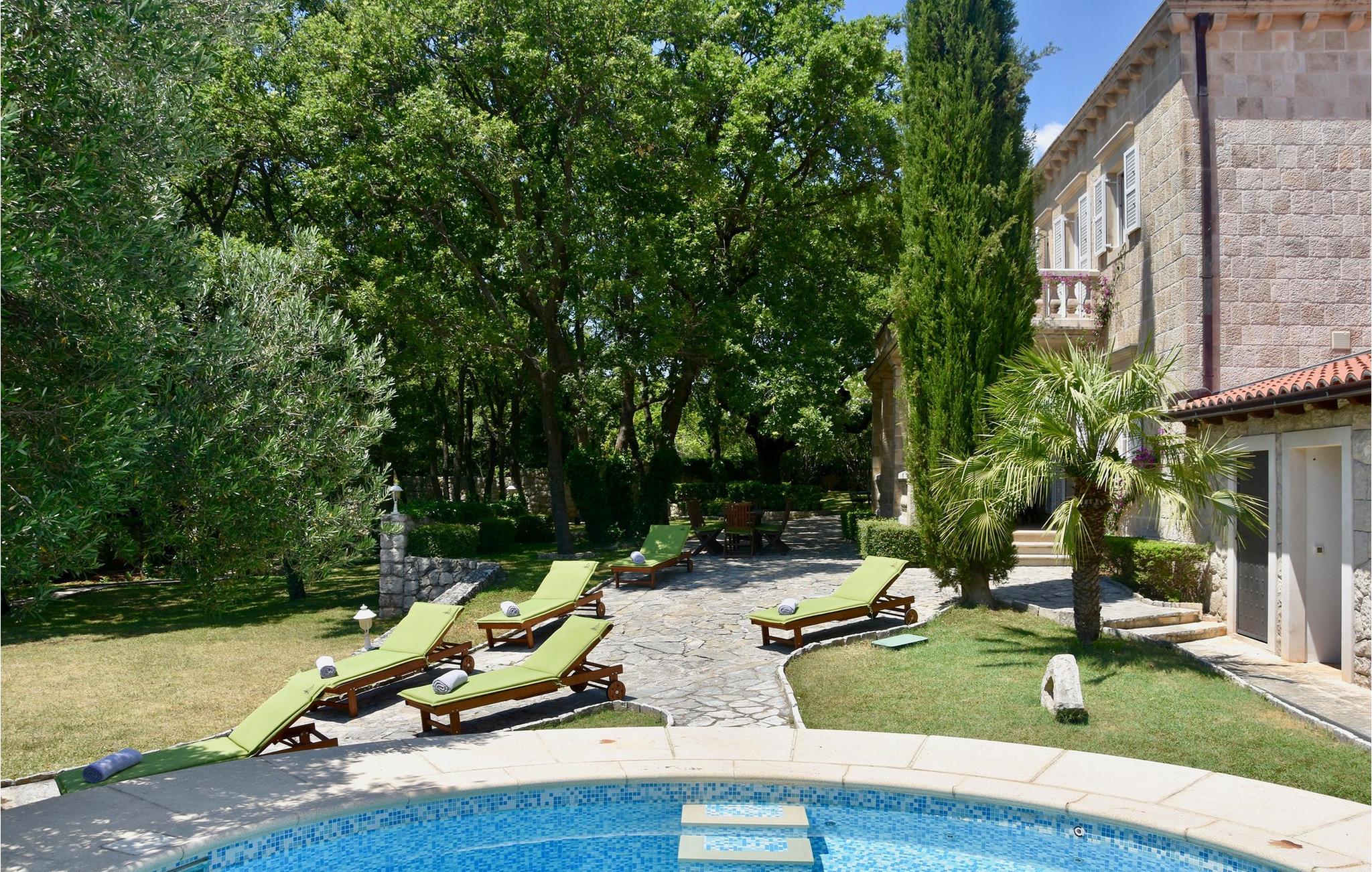 Nyd den historiske atmosfære i dette fortryllende feriehus med pool og idyllisk have. Den elegante Villa Tereza fra 1700-tallet byder jer velkommen med sit omhyggeligt møblerede og traditionelt indrettede interiør og tilbyder masser af plads til underholdning med venner eller familie. Skab kulinariske lækkerier i det charmerende, fuldt udstyrede køkken, og efter et harmonisk måltid kan I forkæle jer selv med en aperitif i den hyggelige stue eller på værtshuset. Nyd den hyggelige atmosfære til stille læsning eller hold livlige spilleaftener med vennerne. Med en rummelig gårdhave fuld af grønne områder og træer, hvis frodige krone giver behagelig skygge i de varme sommermåneder, vil denne villa helt sikkert glæde enhver gæst. Den rummelige, smukt anlagte gårdhave har en romantisk, rund pool - snup en frisk dukkert her når som helst på dagen og slap af på liggestolen. Fejr jeres tid sammen med stemningsfulde grillaftener og snak over et glas vin i de varme sommernætter. Denne storslåede ejendom, der huser et charmerende gammelt kapel, er også ideel til bryllupper eller familiefester. Besøg den charmerende by Dubrovnik, slentre langs dens historiske mure og spis på en af de mange førsteklasses restauranter. Udforsk det pulserende natteliv og de smukke, uberørte strande i området. Den charmerende by Cavtat på den skovklædte Rat-halvø er også et besøg værd.