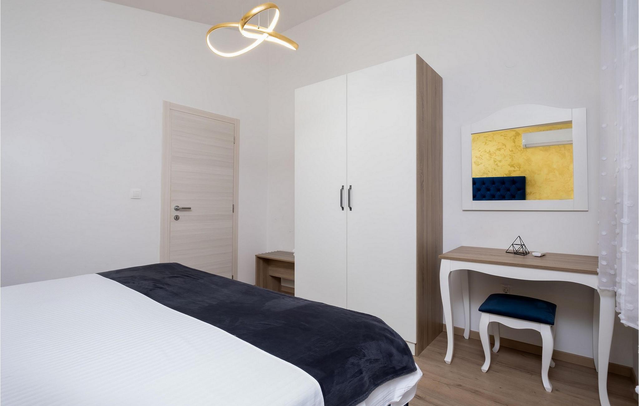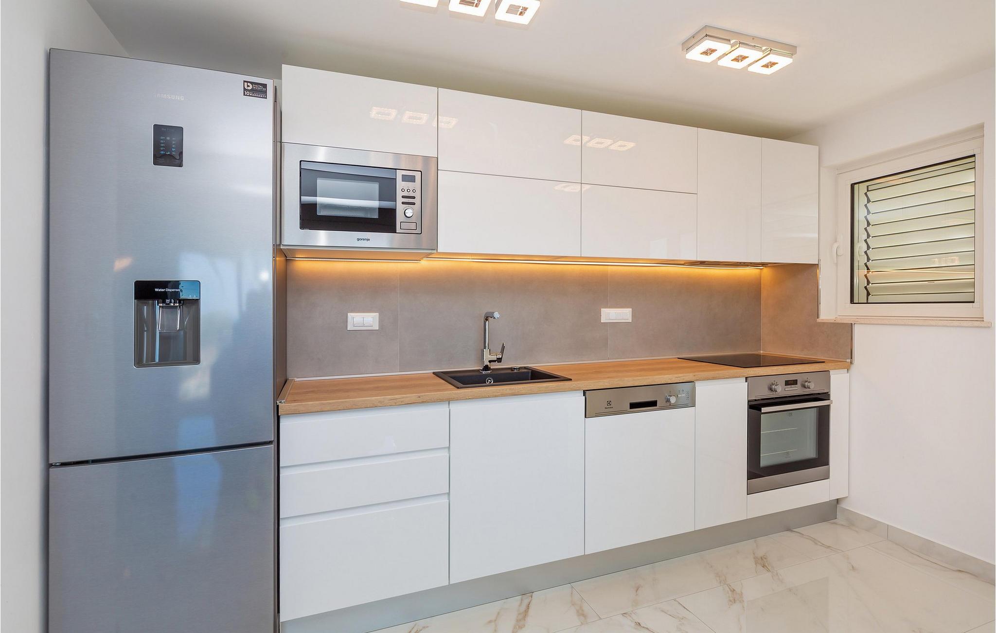 Villa Libertas ligger i Mlini, som hører til Dubrovnik-Neretva County. Det er 13 km væk fra byen Dubrovnik og i nærheden ligger byen Cavtat, som er 15 km væk. Villaen er perfekt til en fredelig og sjov ferie, som du vil tilbringe med familie og venner. Villa Libertas er bygget i 2020 i en moderne arkitektonisk stil, hvor du vil blive komfortabelt indkvarteret på 150 m2 boligareal og grundens samlede areal er 500 m2. Det nærmeste hav og den nærmeste strand ligger 450 m fra villaen. Der er også restauranter og caféer i nærheden. Fuldt airconditioneret, Villa Libertas sover maksimalt 10 personer, som har 5 soveværelser med dobbeltsenge, hvoraf det ene er i stueetagen og har et tilhørende badeværelse med brusekabine, og der er to andre almindelige soveværelser, der også har bruser aflukke funktion. To soveværelser er på øverste etage, to mere er på det højeste niveau af villaen, hvor der også er et galleri med en daybed. En af fordelene ved Villa Libertas er, at man fra sin ejendom kan nyde en smuk udsigt over Adriaterhavet og det omkringliggende område. I stueetagen er der stue med sofa, lænestol, sofabord og TV. Lige ved siden af stuen er spisestuen med et bord til 8 personer, også er der et fuldt udstyret køkken, hvor du er velkommen til at tilberede måltider til dine kære. Fra stuen har du direkte udgang til den udendørs terrasse, som er et rigtigt lille paradis med en pool på 25 m2 og en dybde på 1,5 meter. Det ekstra udstyr til poolen repræsenterer 6 hydromassagestråler, ved siden af er der også 8 liggestole til solbadning og havemøbler med udsigt over Adriaterhavet og det omkringliggende område, hvor du kan læse din yndlingsbog med en afslappende udsigt. Villaen har også en smukt anlagt have med en bænk og en udendørs grill med kul og brænde. Du kan smage de tilberedte retter ved det overdækkede udendørs spisebord. Andre faciliteter du kan bruge under dit ophold omfatter en vaskemaskine, tørretumbler og strygejern. En barneseng og en foderautomat er tilgængelige efter anmodning. Gården er indhegnet og villaen byder på 1 parkeringsplads i garagen og 1 ekstra plads udenfor gården. *Værten er fuldt tilgængelig for gæster og tilbyder indkøbsservice. Hver gæst modtager en gave fra værten. Byen Milni er perfekt for naturelskere, og tilbyder alle besøgende sjove og lokale aktiviteter såsom dykning, jetski, fiskeri, cykling eller vandski. Glem ikke at smage traditionelle retter og glæde dine smagsløg med lækre vine. I nærheden ligger byen Dubrovnik, som byder på mange kulturelle seværdigheder og også er kendt for, at serien "Game of Thrones" blev optaget der. Velkommen til Villa Libertas! Bemærk venligst, at denne ejendom ikke accepterer ungdomsgrupper eller polterabends. En ungdomsgruppe i denne ejendom består af personer under 30 år. Book ikke denne ejendom, hvis du er en ungdomsgruppe eller polterabend, da din reservation vil blive afvist efter reservationen, hvilket også kan være tilfældet ved ankomst til overnatningsstedet eller under dit ophold, og du vil ikke modtage en refusion.