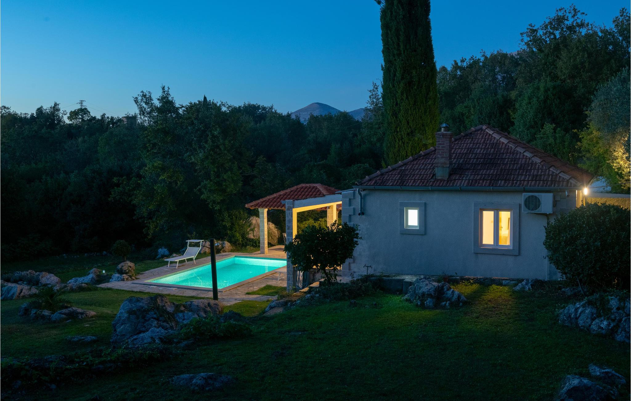 I bor i hjertet af Konavle, i et skønt feriehus, der er perfekt til at slappe af i i ro og mag. Det er vældig godt udstyret og ligger idyllisk på en lille høj. Stor gård med flere små bede og eksotiske planter giver det en særlig charme. Forkæl jer selv på terrassen i den udendørs pool eller på det overdækkede siddeområde. Her kan I svømme, tage solbad eller slappe af med en god bog. Her vil især familier føle sig godt tilpas. Radovcicis oprindelige atmosfære oplever I bl.a. i en række landkroer, der serverer kød- og fiskeretter. I nærheden er der også en familiegård, der udlejer rideheste for at I også kan udforske egnen til hest. Kun 30 minutters kørsel væk ligger Dubrovnik, en by med et rigt tilbud af kultur og underholdning. Kun halvt så langt væk venter der jer skønne strande, vandrestier og restauranter i Cavtat.