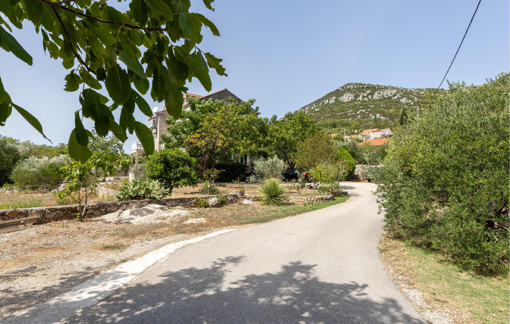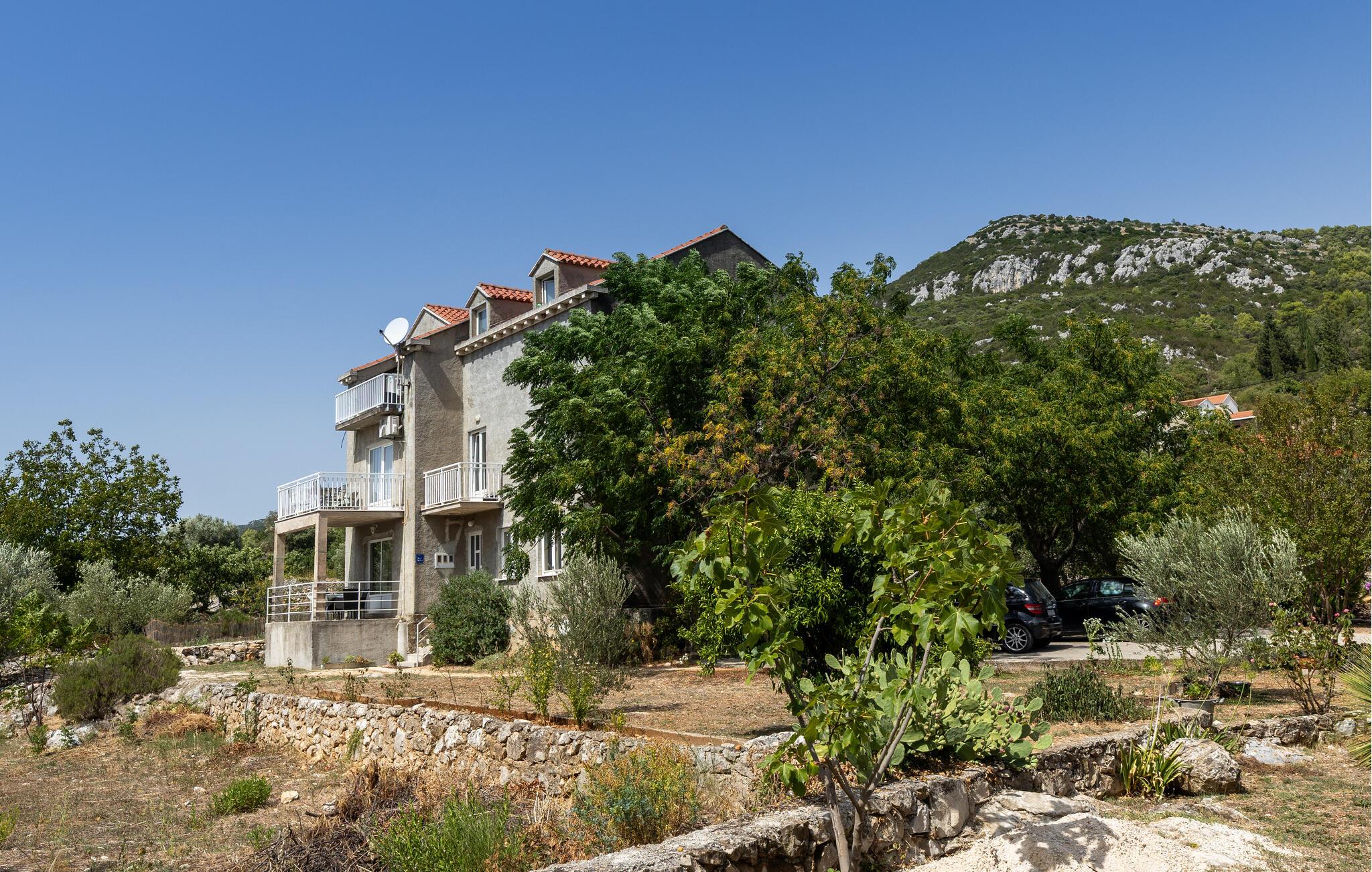 Oplev en afslappende ferie i denne lyse lejlighed med vidtstrakt udsigt. Slap af i den store sofa eller i den behagelige lænestol med en god bog. Det åbne køkken gør det til en leg at tilberede måltider. Nyd fælles stunder ved det rummelige spisebord, der er bekvemt placeret ved vinduet. Gå ud på den overdækkede terrasse, og beundr den uhindrede udsigt over det grønne landskab, der omgiver huset. Slap af ved havebordet, og tilbring lidt rolig tid udenfor. Brug den indbyggede stengrill til at nyde det åbne rum og skabe en fredelig atmosfære. Fra Zaton Doli kan I udforske regionens attraktioner og besøge den historiske gamle bydel i Ston med dens verdensberømte bymure. Udforsk Stons saltpander, og oplev den traditionelle saltproduktionsproces. Tag en vandretur til Veliki Kaštio-fæstningen, eller prøv frisk fisk og skaldyr i Mali Ston, der er kendt for sine østers. Udforsk den panoramiske vej mod Dubrovnik, eller tag en tur til Pelješac-halvøen med dens afsondrede strande og vinmarker.