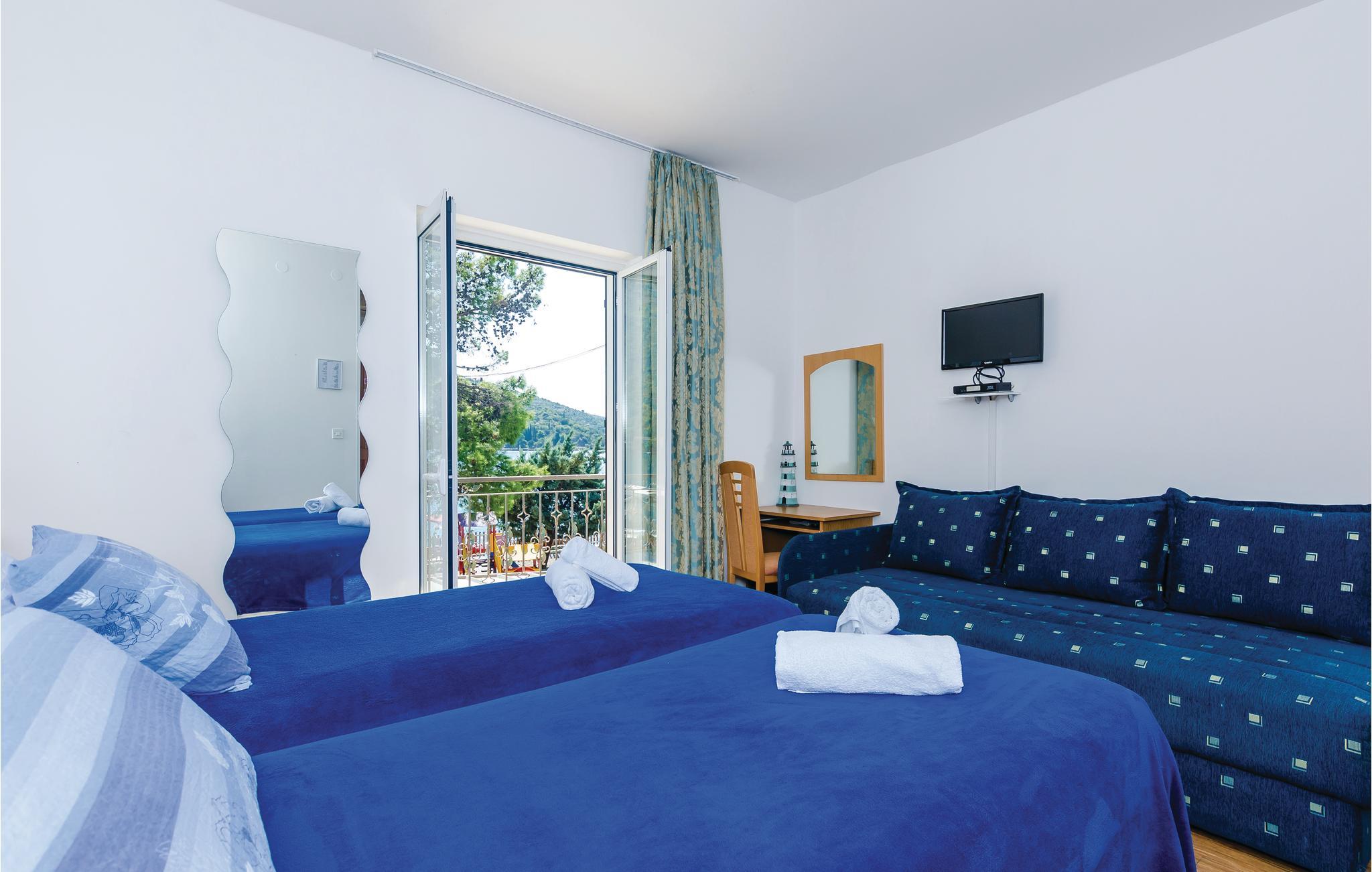 Denne rummelige og enkelt og praktisk indrettede ferielejlighed ligger i første række mod havet. Lejligheden ligger på første sal, med hele fire soveværelser og fem badeværelser og køkken – her er alt til en komfortabel ferie. Fra terrassen er der en ikke mindre end betagende udsigt over Zatonbugten. I har den luksus at kunne vælge mellem at bade I husets egen fælles pool, eller gå tyve meter ned til den nærmeste plateaustrand og svømme i havet. Der er kun ca. 350 m til nærmeste kies- og klippestrande. Zaton ligger som et godt udgangspunkt til udflugter til naturparker, til øerne og de mange historiske byer.