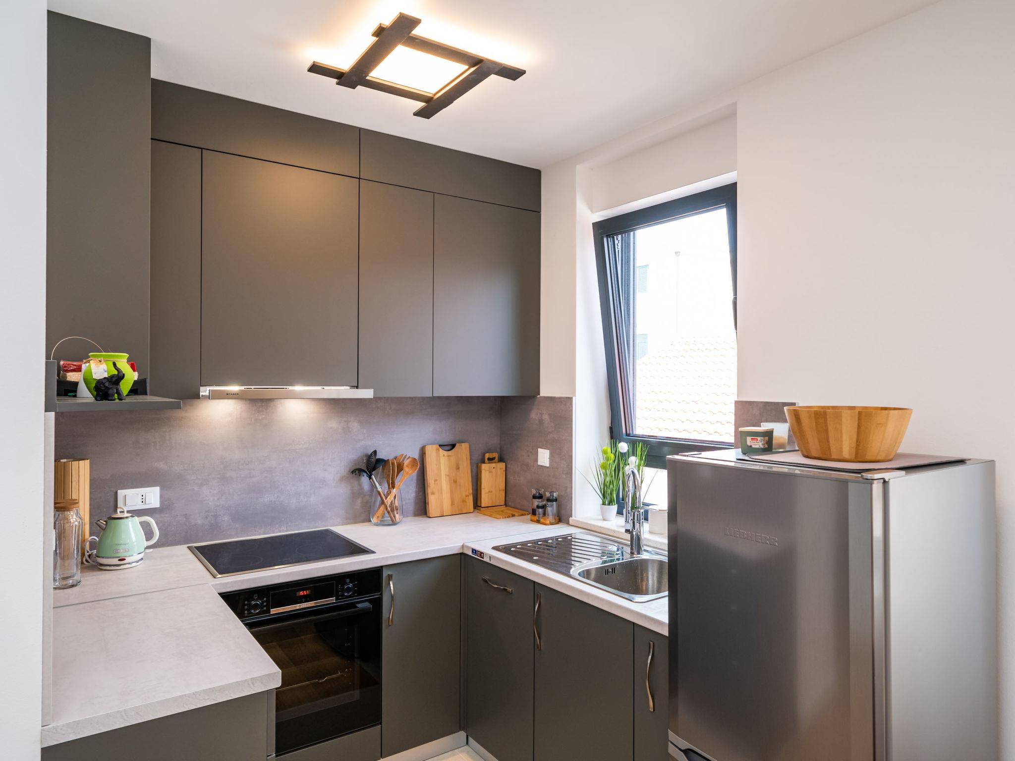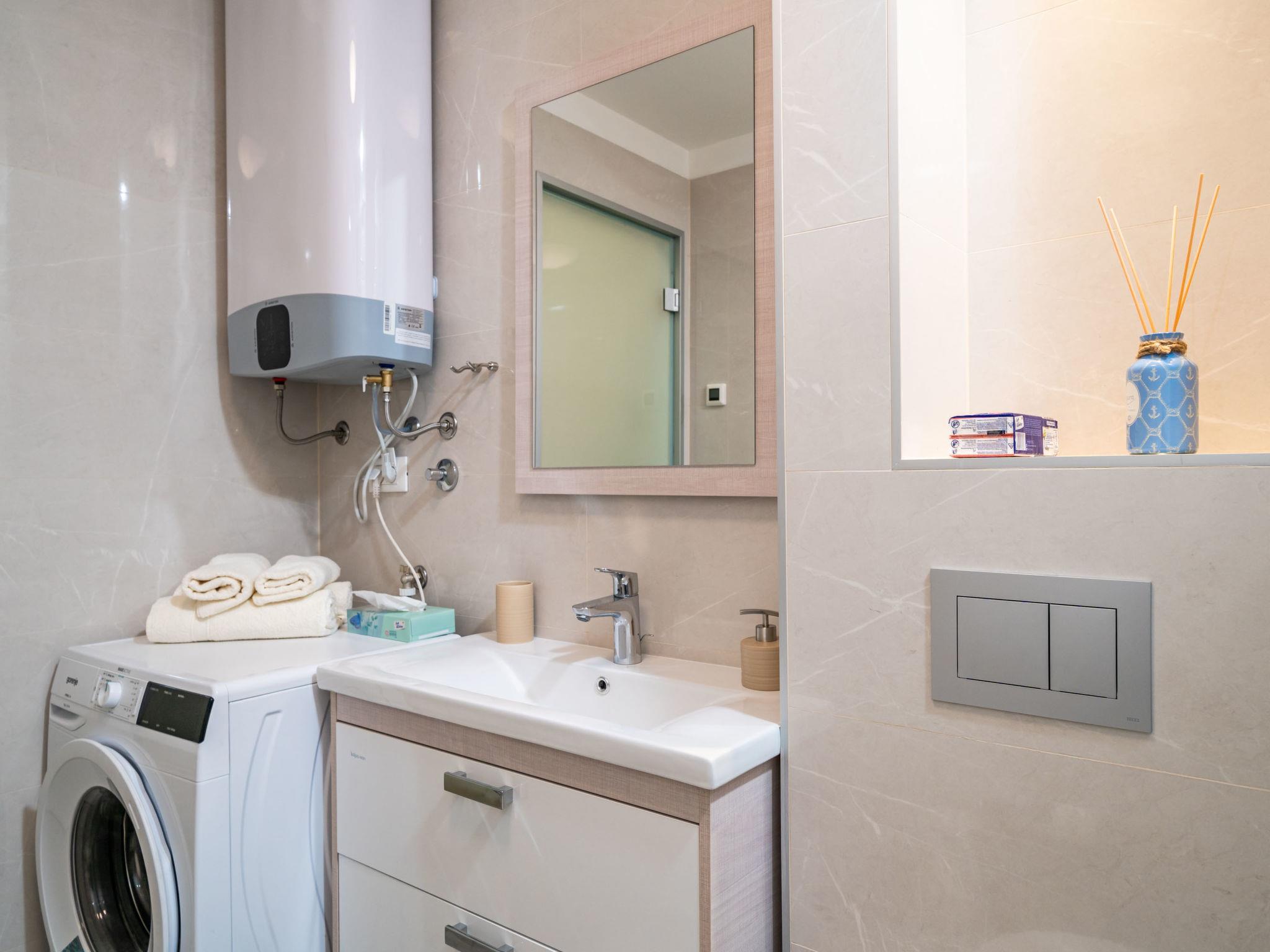 "Martina", 2-room apartment 46 m2. Living/dining room with cable TV (flat screen), air conditioning. Exit to the balcony. 1 room with 1 french bed (180 cm, length 200 cm), air conditioning. Open kitchen (oven, dishwasher, 4 ceramic glass hob hotplates, freezer). Bath/WC. Forced-air heating. Balcony 4 m2. Facilities: Internet (WiFi, free).