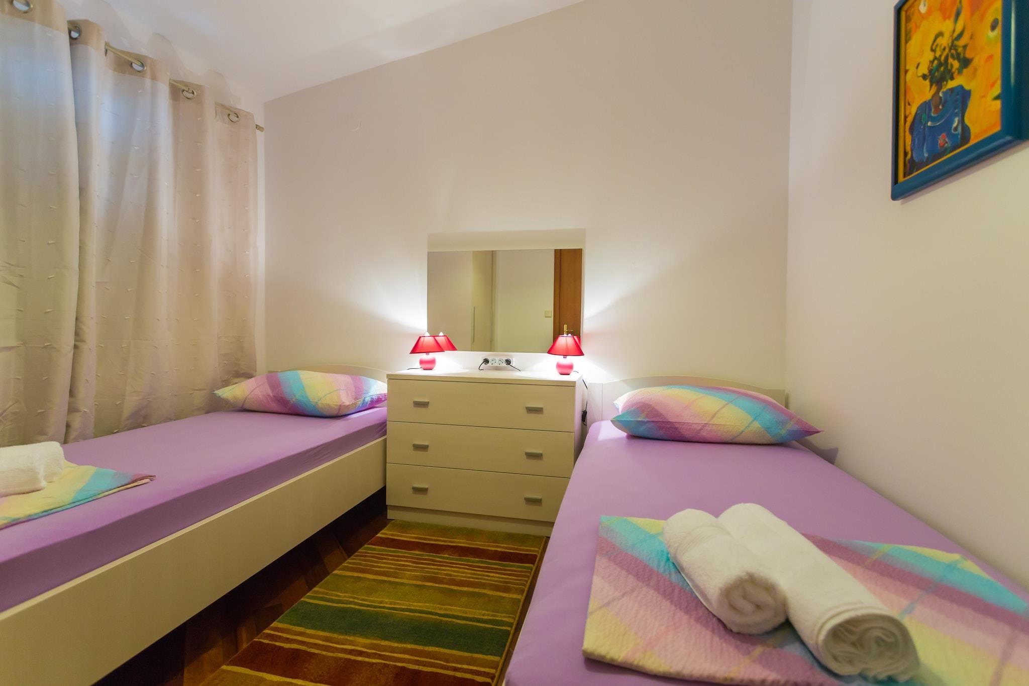 Apartment Sun & Sky er indkvartering med egen forplejning beliggende i et roligt område i Dubrovnik. Bagageopbevaring er tilgængelig før check-in og efter check-out. Der tilbydes privat parkering, men reservation er påkrævet. Denne lejlighed med 2 soveværelser har stue med sovesofa. Der er gratis WiFi, aircondition og tv. Køkkenet er veludstyret med ovn, komfur, køleskab, elkedel, mikroovn, fryser, opvaskemaskine og spiseplads. Badeværelset har badekar, spabad, toilet, hårtørrer og sæbe. Sengelinned og håndklæder leveres. Barneseng, vaskemaskine og strygefaciliteter vil være til gæsternes rådighed. Lejligheden har møbleret balkon med havemøbler og havudsigt. Der tilbydes privat parkering. Lejligheden Sun & Sky er beliggende i et roligt område af Dubrovnik, kun 1,5 km fra UNESCO-beskyttede gamle bydel. Dagligvarebutikker, cafébarer og restauranter ligger 300 meter derfra, mens butikker, supermarkeder og apoteker ligger mindre end 1 km fra ejendommen.Dubrovniks busstation og færgehavn ligger 2 km derfra, og Dubrovnik Lufthavn ligger 20 km derfra. væk fra ejendommen.