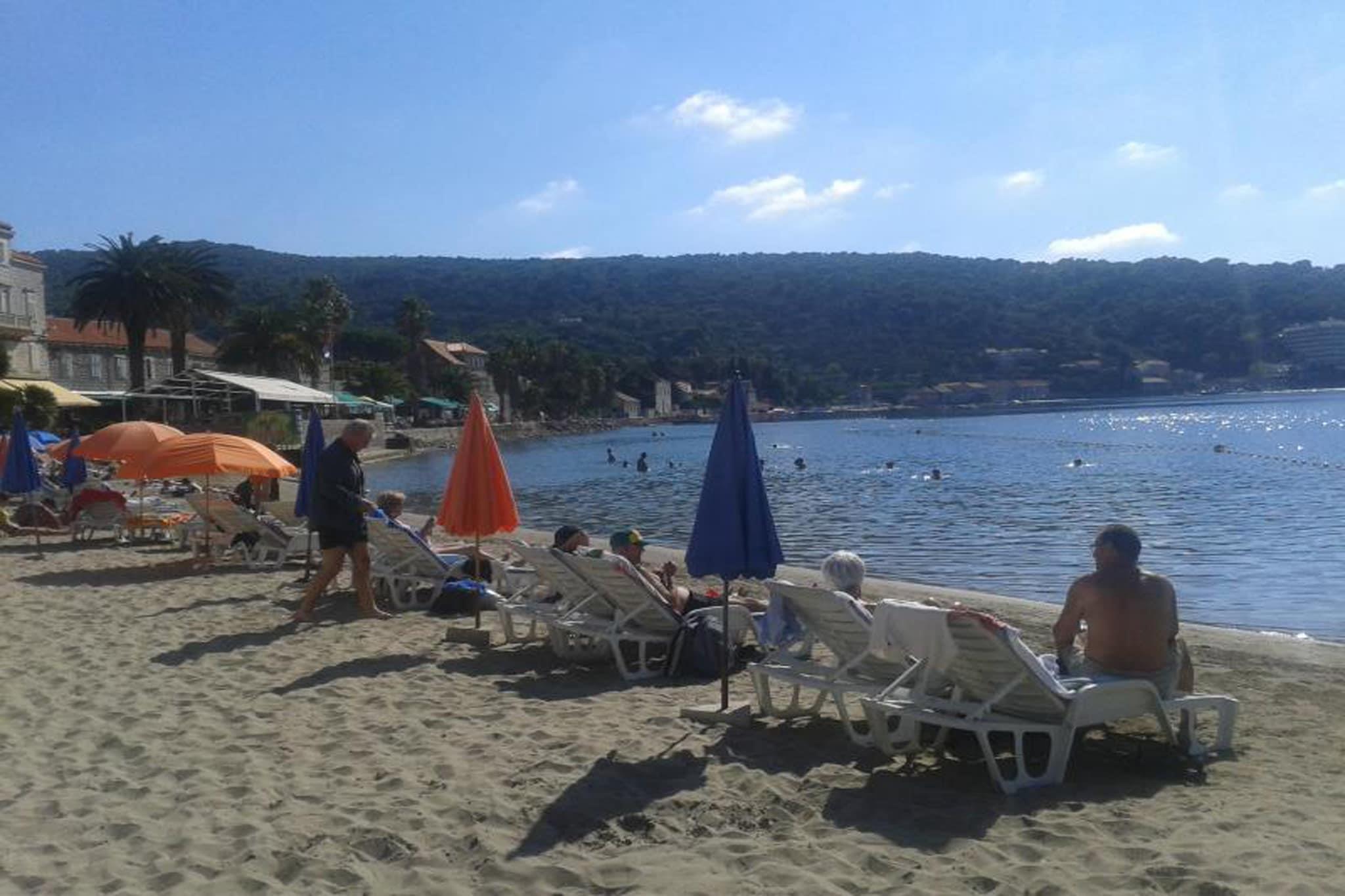 Beliggende på den rolige ø Lopud, lige ud for Dubrovniks kyst, tilbyder denne rummelige lejlighed med hyggelige soveværelser en fredfyldt flugt for familier eller venner. Lopud, der er kendt for sit krystalklare vand, historiske charme og den fantastiske Šunj-strand, er et paradis for både strandelskere og naturentusiaster. Lejligheden har et veludstyret køkken, aircondition og en stor tagterrasse med betagende havudsigt, perfekt til at slappe af efter en dag med snorkling, kajaksejlads eller udforske vandrestier og middelalderlige vartegn. Øens afslappede stemning suppleres af lokale caféer og restauranter, alle inden for rækkevidde. Dette fredelige oase, der er tilgængeligt med båd fra Dubrovnik, kombinerer komfort med øens charme, hvilket gør det til en ideel base for at opdage skønheden ved den dalmatiske kyst.