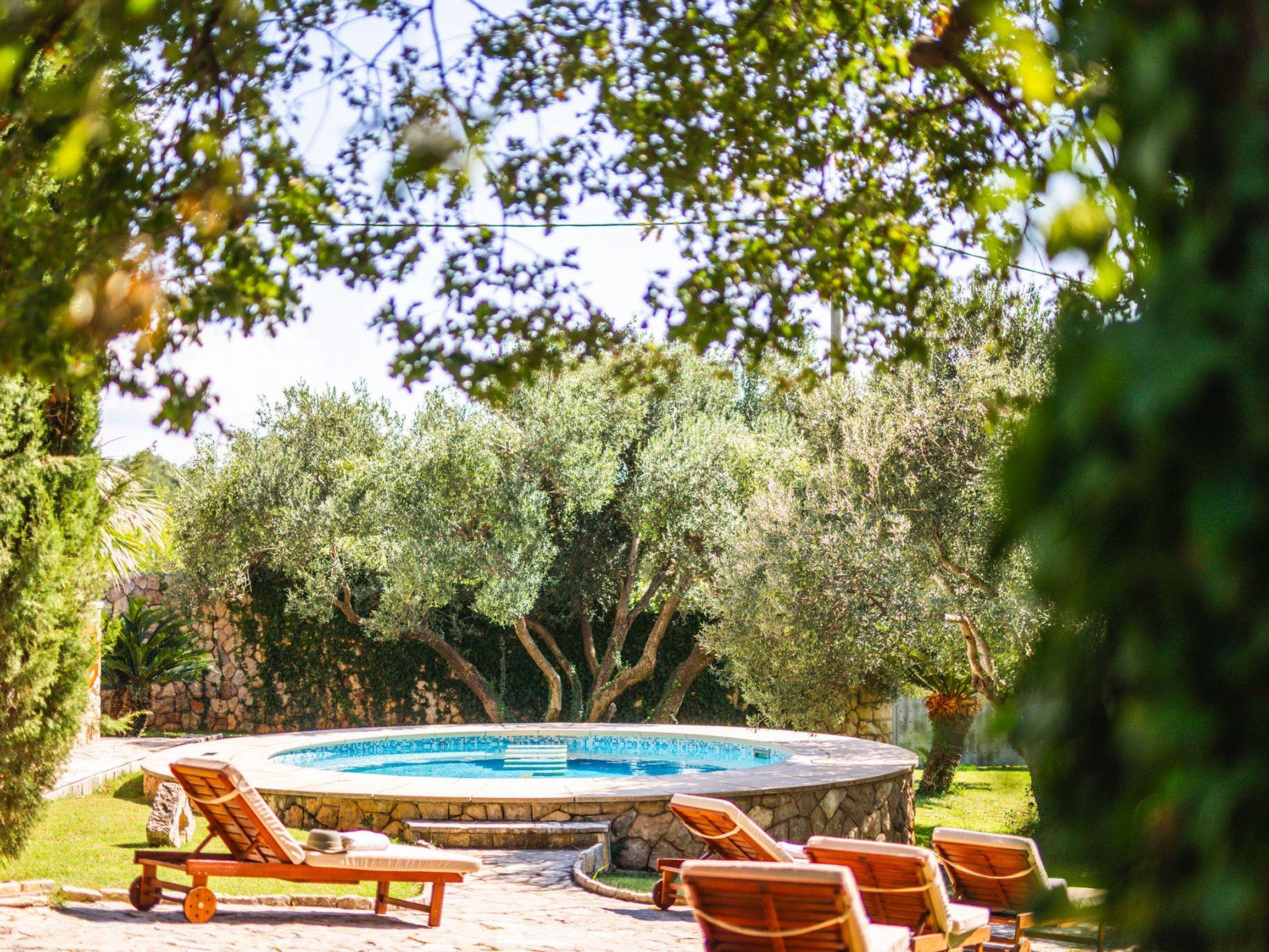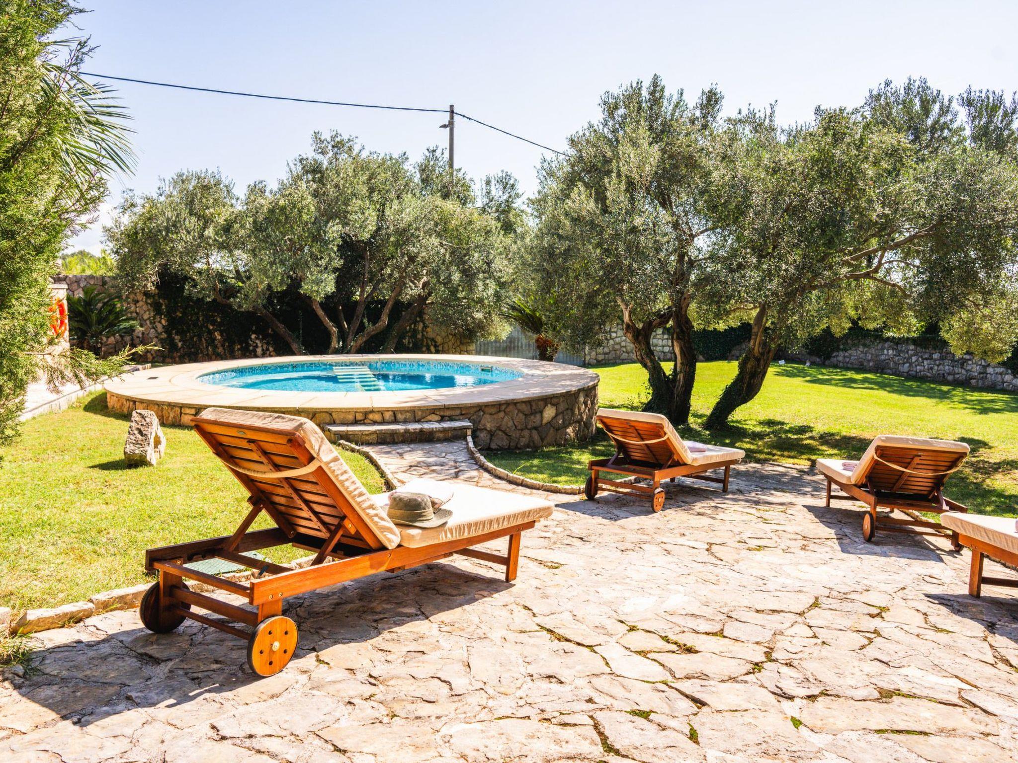 The villa’s inviting outdoor heated swimming pool with hydro massage is ideal for keeping cool during warm summer months.